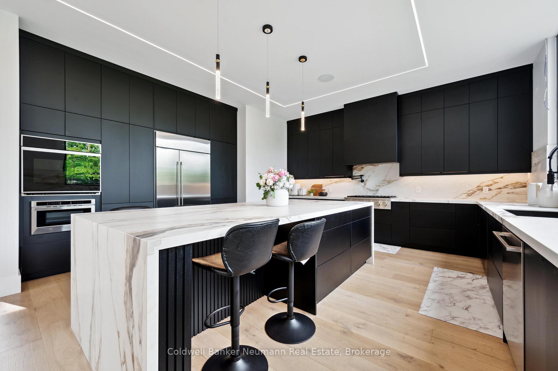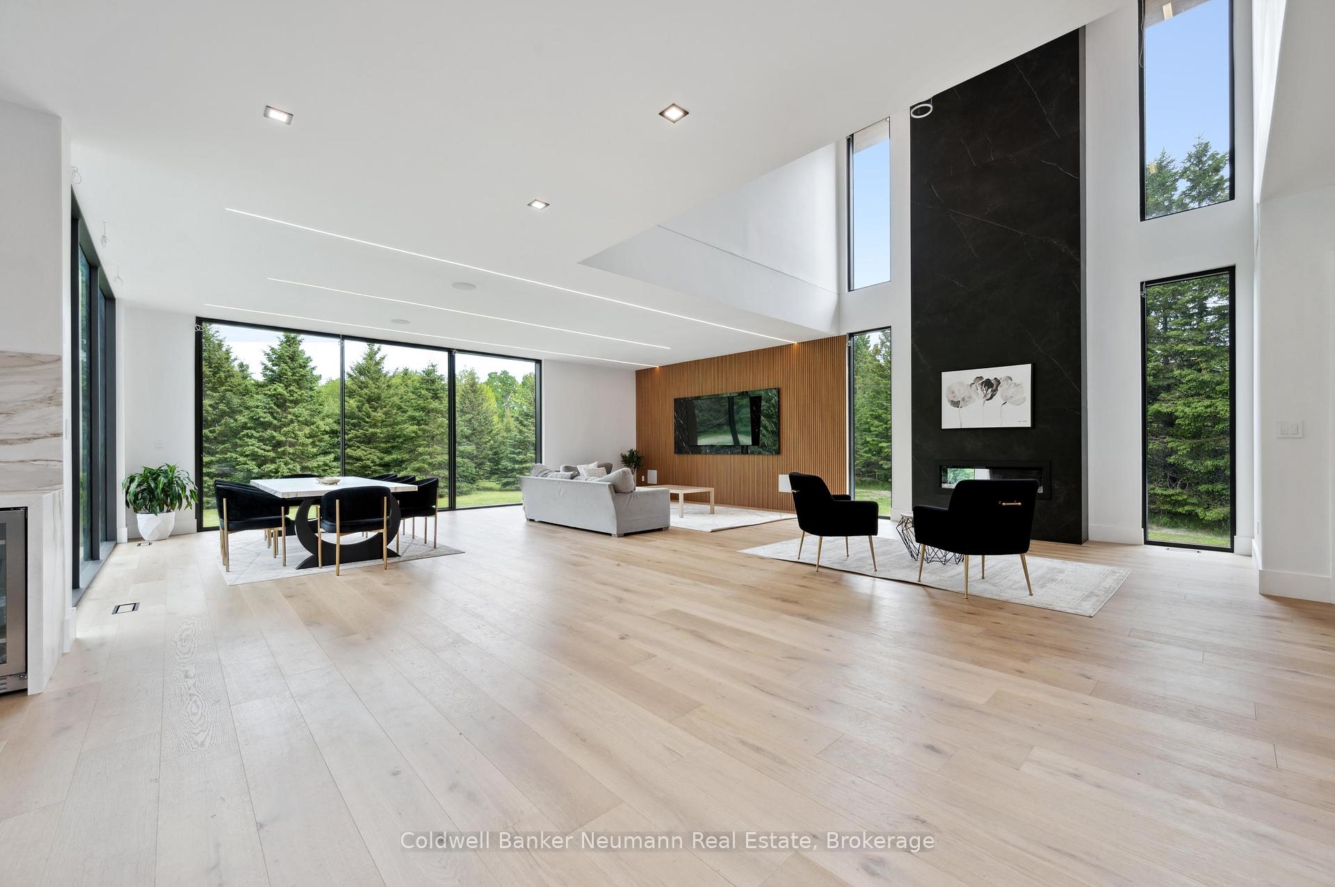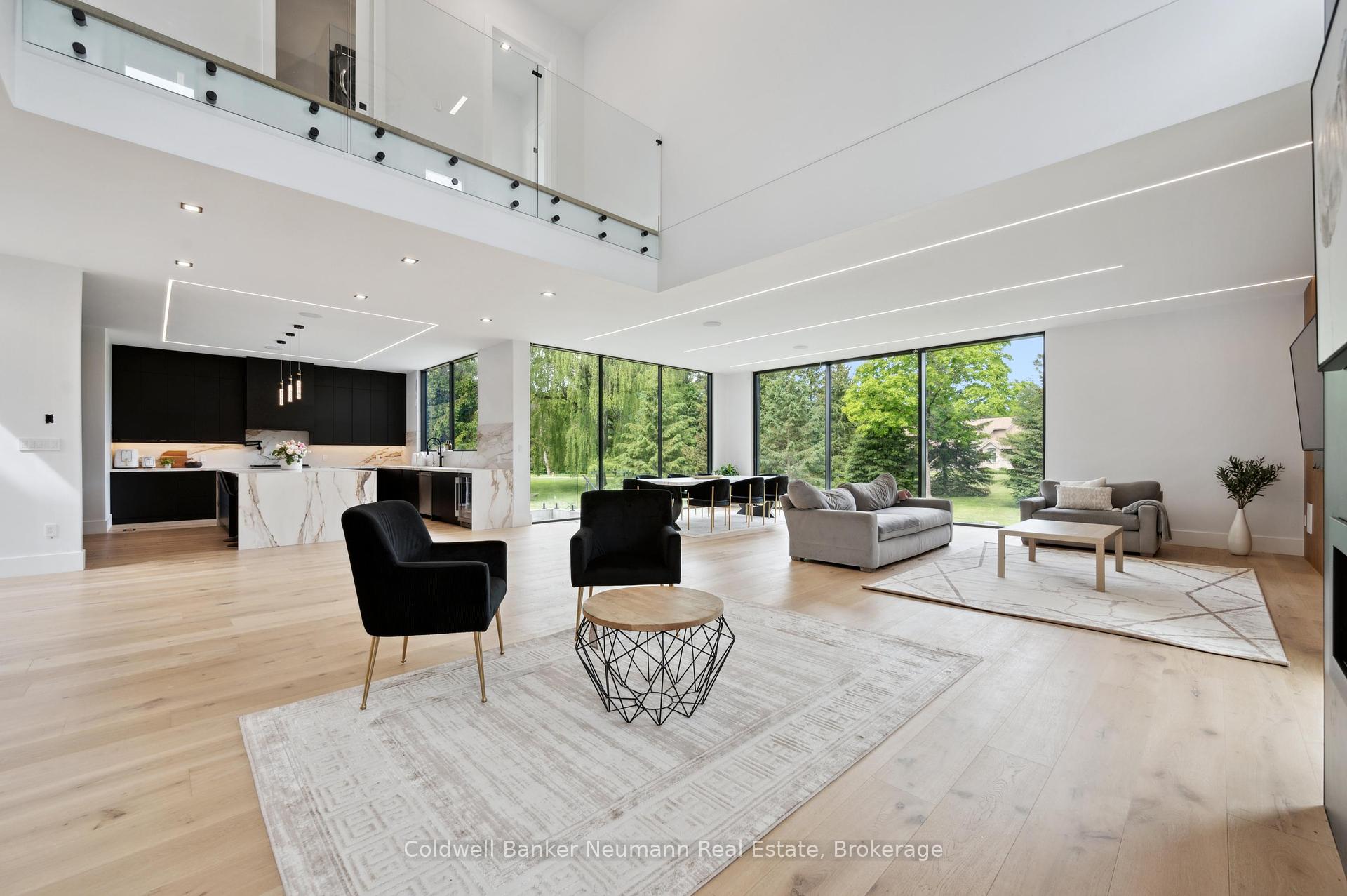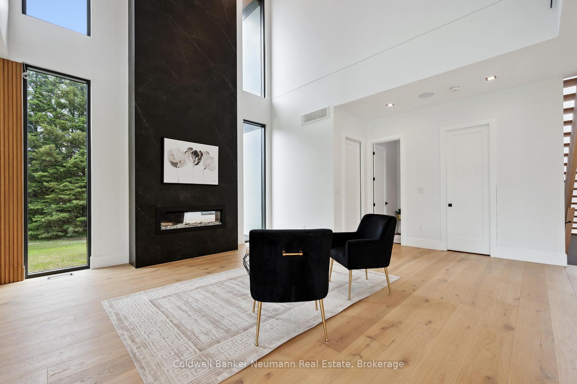 This stunning custom-built 4-bedroom, 3.5-bathroom home is the perfect fusion of modern luxury, thoughtful design, and serene living-tucked away in a peaceful setting surrounded by mature trees, greenery, and nature, yet just minutes from all major amenities. From the moment you step inside, you’ll be captivated by the bright, open-concept layout that flows effortlessly through the main living areas. The heart of the home is a chef-inspired kitchen featuring a massive island, premium Italian stone countertops, and show-stopping fixtures that elevate every detail. The living room is anchored by a dramatic floor-to-ceiling marble electric fireplace true conversation piece and central focal point. Upstairs, the primary suite offers a luxurious retreat with a large walk-in closet and a spa-like ensuite, complete with a deep soaker tub. Three additional spacious bedrooms, a convenient second-floor laundry room and multiple second floor terraces, this home is truly like no other. The untouched basement, with a walk-down from the backyard, provides incredible potential for an in-law suite, rental unit, or fully customized living space tailored to your needs. Outside, enjoy top-tier curb appeal, a large second story front patio with a generously sized backyard, perfect for entertaining or unwinding in your own natural sanctuary. The 3-car garage and extra-wide driveway offer plenty of space for numerous vehicles and storage. Built with care and quality as a custom home, this property offers high ceilings, large windows that flood the home with natural light, and well-planned privacy throughout. All of this is set in a tranquil, tucked-away location on 1.3+ acres offering the peace of country-style living just minutes from schools, shopping, and major routes. This is more than a home it’s a lifestyle. Schedule your showing today and see for yourself!