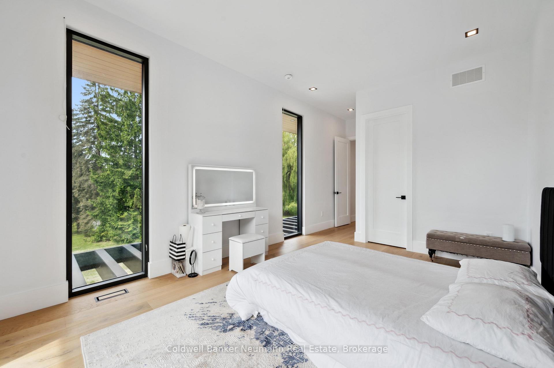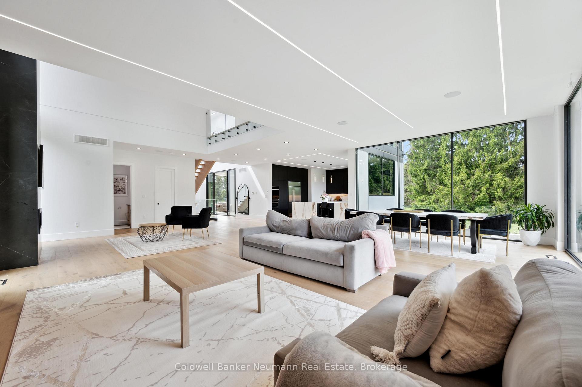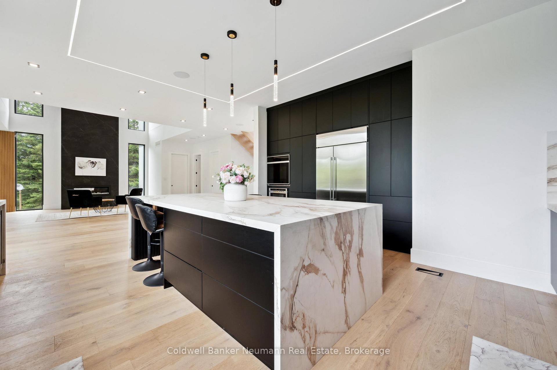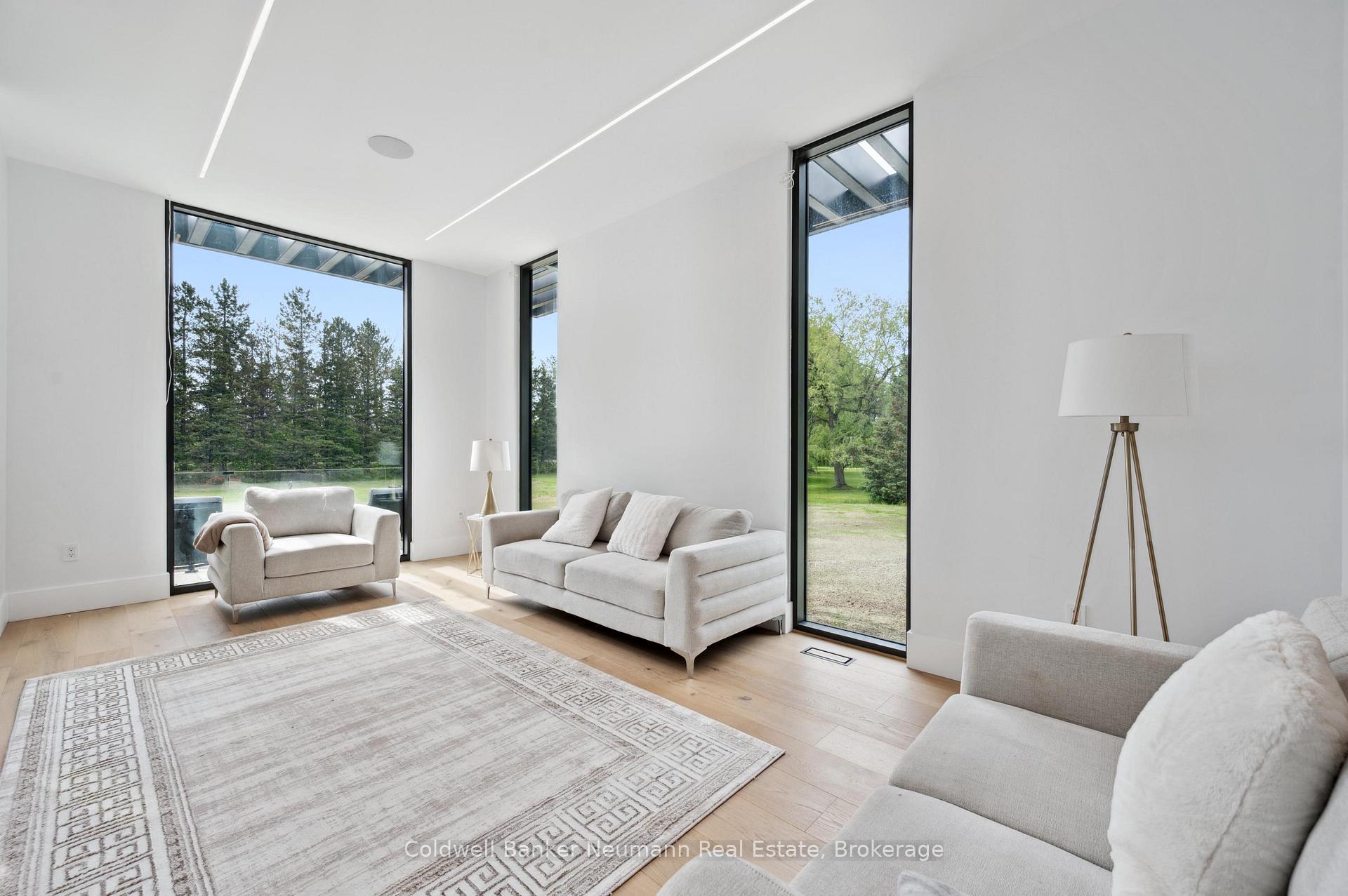 This stunning custom-built 4-bedroom, 3.5-bathroom home is the perfect fusion of modern luxury, thoughtful design, and serene living-tucked away in a peaceful setting surrounded by mature trees, greenery, and nature, yet just minutes from all major amenities. From the moment you step inside, you’ll be captivated by the bright, open-concept layout that flows effortlessly through the main living areas. The heart of the home is a chef-inspired kitchen featuring a massive island, premium Italian stone countertops, and show-stopping fixtures that elevate every detail. The living room is anchored by a dramatic floor-to-ceiling marble electric fireplace true conversation piece and central focal point. Upstairs, the primary suite offers a luxurious retreat with a large walk-in closet and a spa-like ensuite, complete with a deep soaker tub. Three additional spacious bedrooms, a convenient second-floor laundry room and multiple second floor terraces, this home is truly like no other. The untouched basement, with a walk-down from the backyard, provides incredible potential for an in-law suite, rental unit, or fully customized living space tailored to your needs. Outside, enjoy top-tier curb appeal, a large second story front patio with a generously sized backyard, perfect for entertaining or unwinding in your own natural sanctuary. The 3-car garage and extra-wide driveway offer plenty of space for numerous vehicles and storage. Built with care and quality as a custom home, this property offers high ceilings, large windows that flood the home with natural light, and well-planned privacy throughout. All of this is set in a tranquil, tucked-away location on 1.3+ acres offering the peace of country-style living just minutes from schools, shopping, and major routes. This is more than a home it’s a lifestyle. Schedule your showing today and see for yourself!