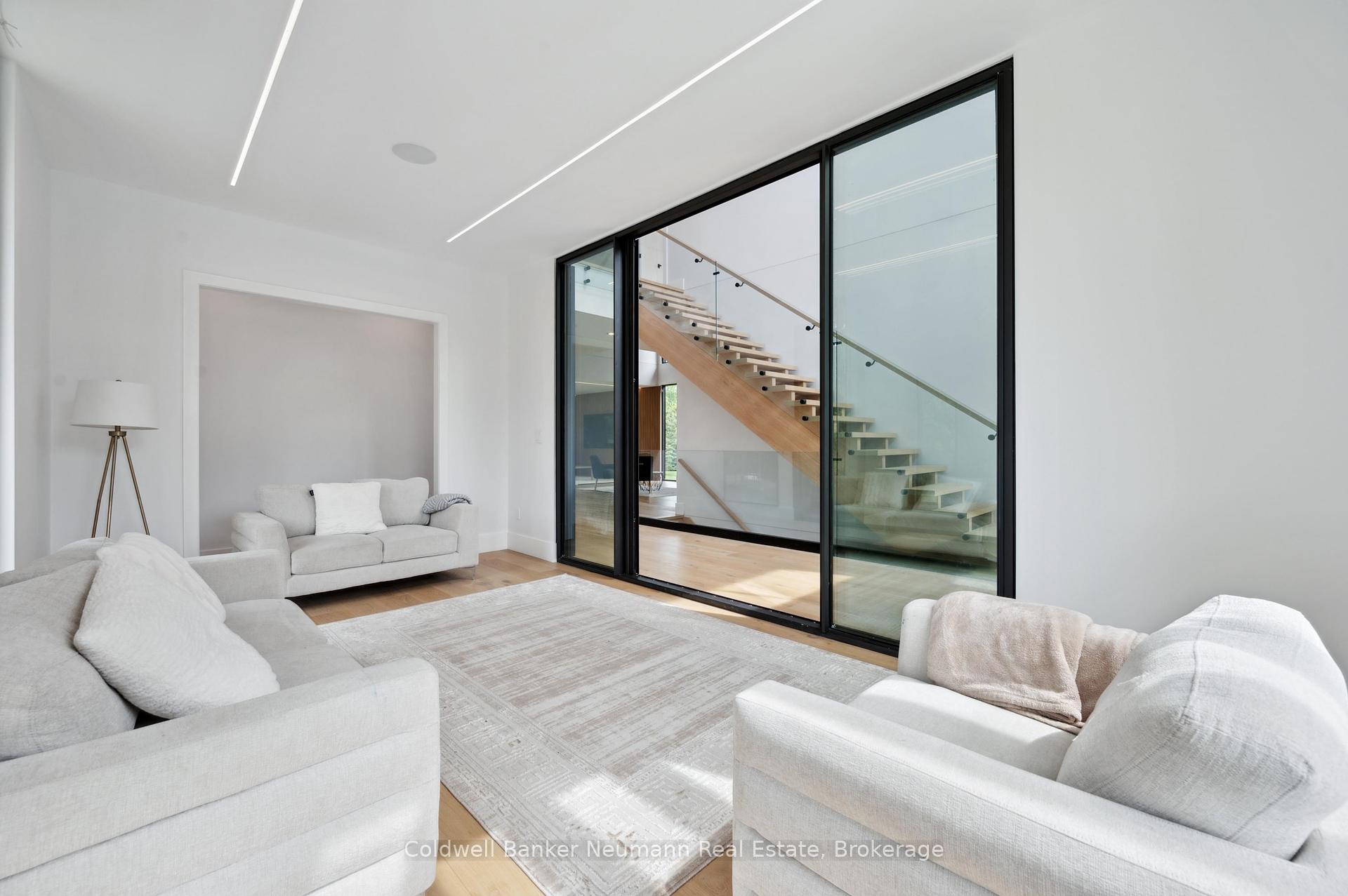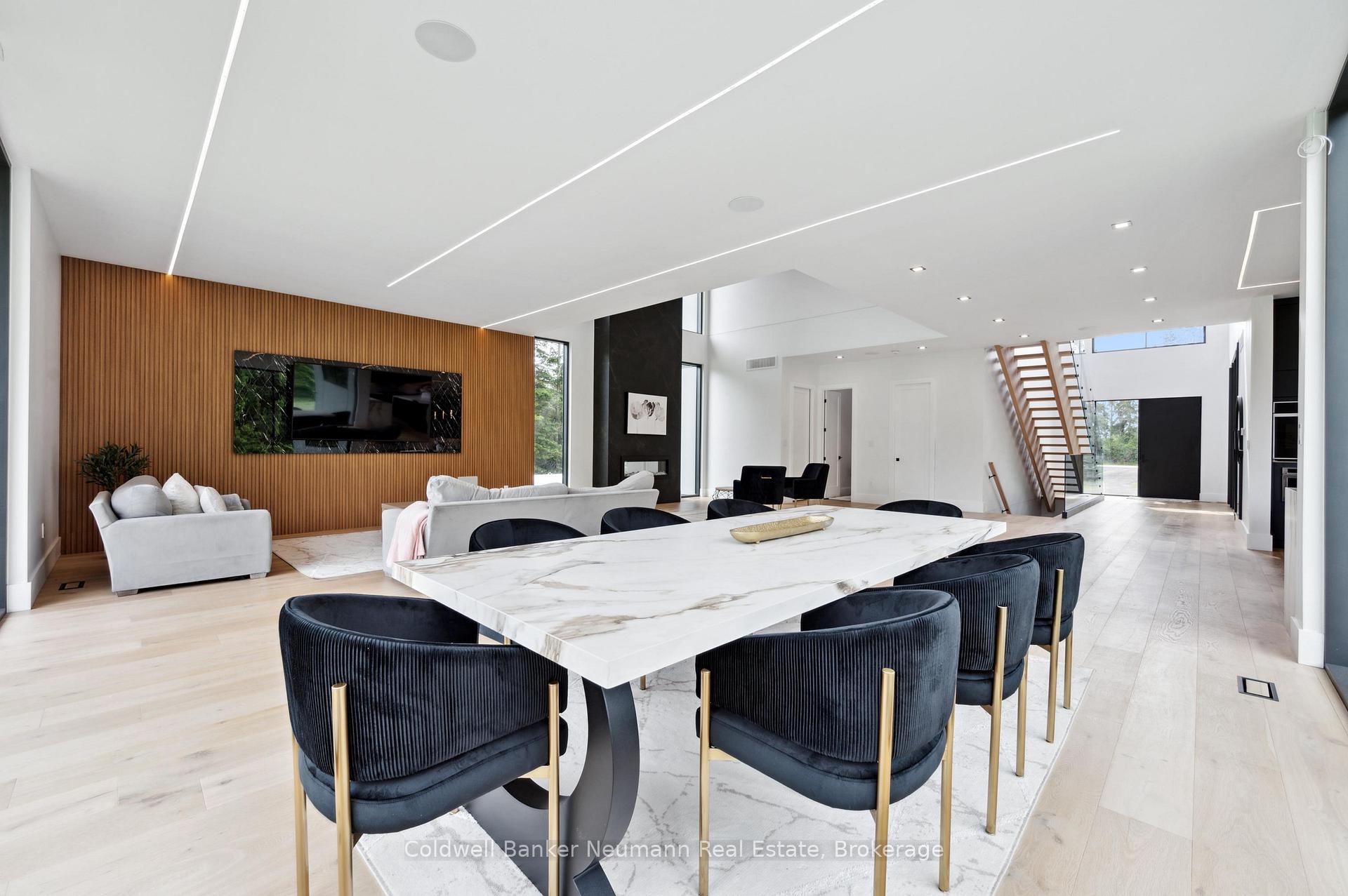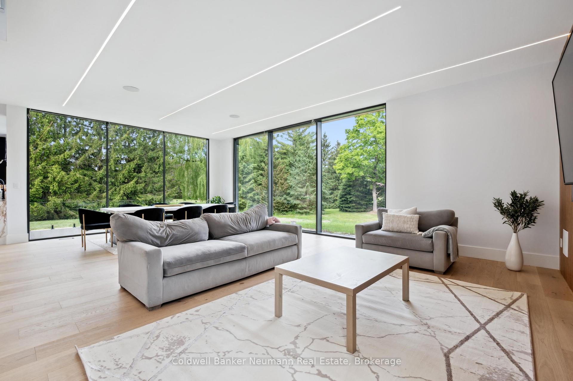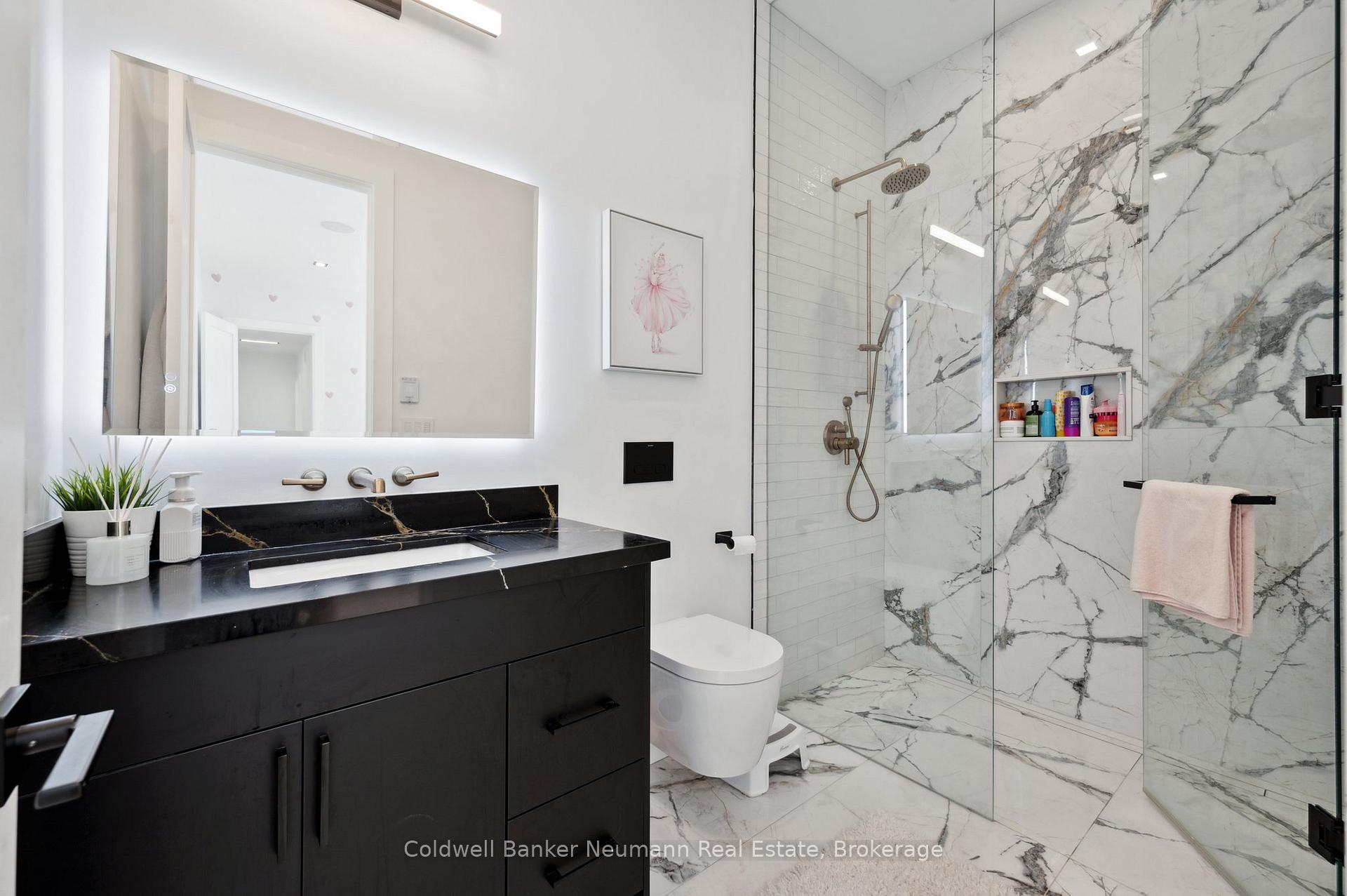 This stunning custom-built 4-bedroom, 3.5-bathroom home is the perfect fusion of modern luxury, thoughtful design, and serene living-tucked away in a peaceful setting surrounded by mature trees, greenery, and nature, yet just minutes from all major amenities. From the moment you step inside, you’ll be captivated by the bright, open-concept layout that flows effortlessly through the main living areas. The heart of the home is a chef-inspired kitchen featuring a massive island, premium Italian stone countertops, and show-stopping fixtures that elevate every detail. The living room is anchored by a dramatic floor-to-ceiling marble electric fireplace true conversation piece and central focal point. Upstairs, the primary suite offers a luxurious retreat with a large walk-in closet and a spa-like ensuite, complete with a deep soaker tub. Three additional spacious bedrooms, a convenient second-floor laundry room and multiple second floor terraces, this home is truly like no other. The untouched basement, with a walk-down from the backyard, provides incredible potential for an in-law suite, rental unit, or fully customized living space tailored to your needs. Outside, enjoy top-tier curb appeal, a large second story front patio with a generously sized backyard, perfect for entertaining or unwinding in your own natural sanctuary. The 3-car garage and extra-wide driveway offer plenty of space for numerous vehicles and storage. Built with care and quality as a custom home, this property offers high ceilings, large windows that flood the home with natural light, and well-planned privacy throughout. All of this is set in a tranquil, tucked-away location on 1.3+ acres offering the peace of country-style living just minutes from schools, shopping, and major routes. This is more than a home it’s a lifestyle. Schedule your showing today and see for yourself!