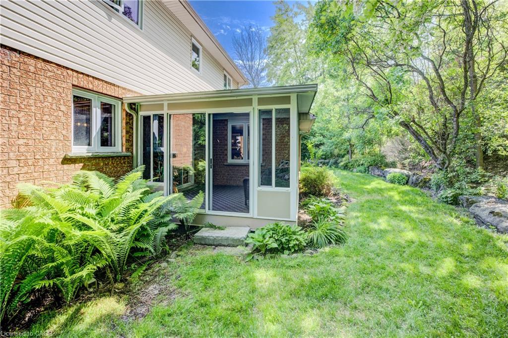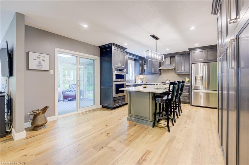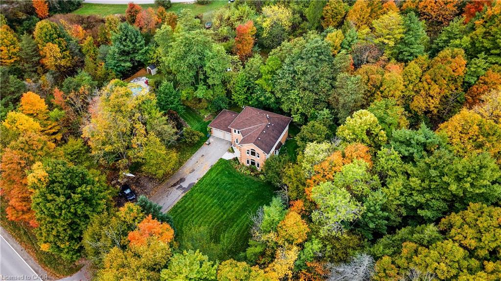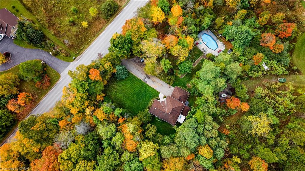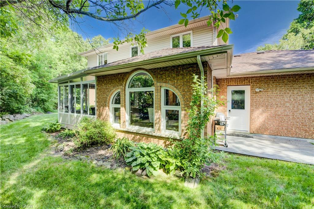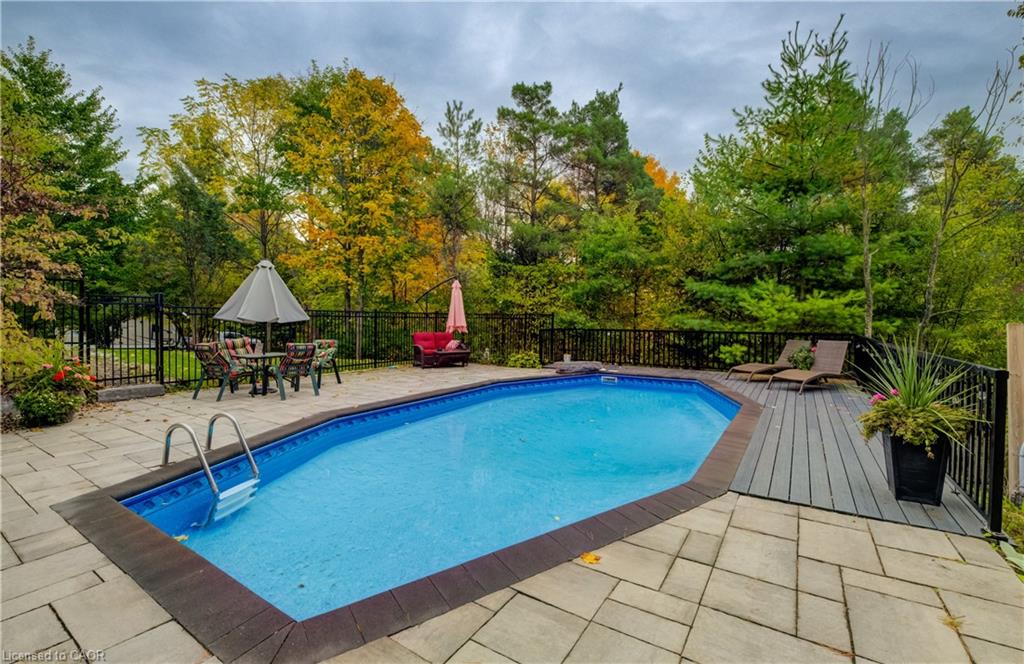 Welcome to your private oasis in the heart of Puslinch, a peaceful country setting just minutes from all amenities, backing onto Victoria Park Valley Golf Club. Set on 1.4 acres of tree-lined privacy, this 4-bedroom, 2.5-bathroom home is as beautiful inside as it is outside. With beautiful snowfalls, the landscaped property offers a peaceful backdrop for cozy nights in. And when summer rolls in, the property transforms into a perfect outdoor retreat, offering multiple spaces to relax and entertain. Play lawn games on the open yard space, enjoy al fresco dining in the outdoor kitchen beside a tranquil waterfall, or unwind by the saltwater pool tucked away among mature trees. With unique local experiences nearby, from snow yoga sessions with friendly alpacas, to walking out your back door for a quick round of golf, you’ll love the year-round charm this community offers. Inside, the home has been thoughtfully updated to blend modern comfort with timeless style. The main floor renovation (2022) features hardwood flooring, fresh paint, updated lighting, and a stunning kitchen with Corian countertops and backsplash, custom cabinetry, stainless steel appliances including a built-in oven and microwave, and an expansive island—ideal for casual meals or gathering with friends and family. You’ll love the sunlit living room with large windows overlooking the private backyard, and the 3-season sunroom offers a quiet retreat to relax. Upstairs, you’ll find four generously sized bedrooms. The primary suite includes his-and-hers closets and a renovated 4-piece ensuite with an oversized walk-in shower, while the updated 5-piece bathroom serves the rest of the family with ease. The lower level, finished in 2025, adds even more space for everyone to enjoy. It features a cozy rec room, games area, and a bonus room—perfect for a home office, gym, or guest accommodations.
