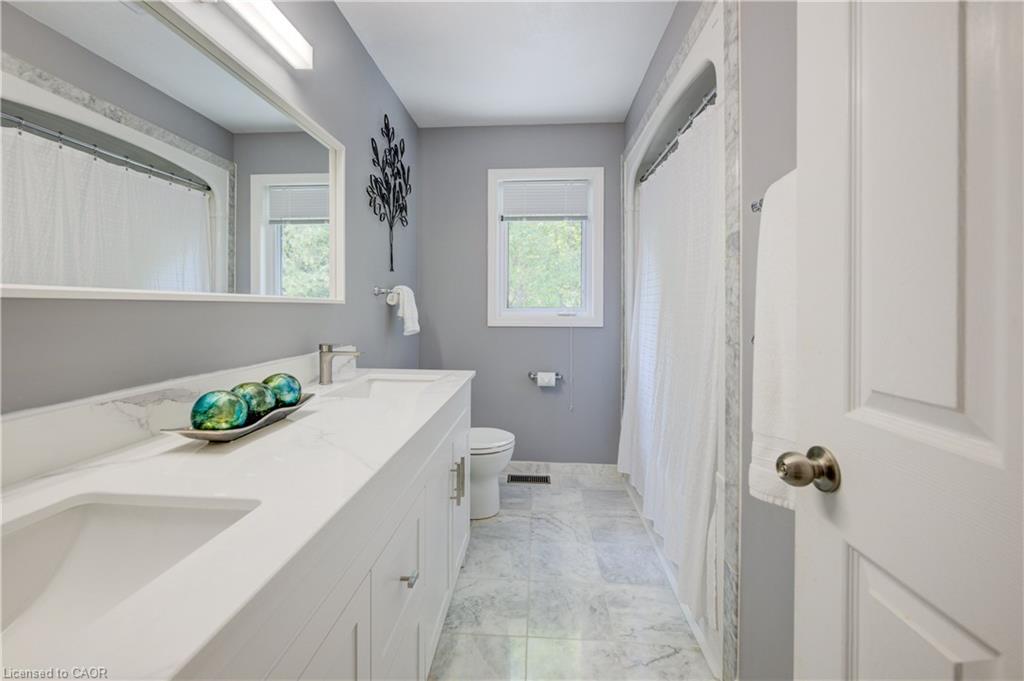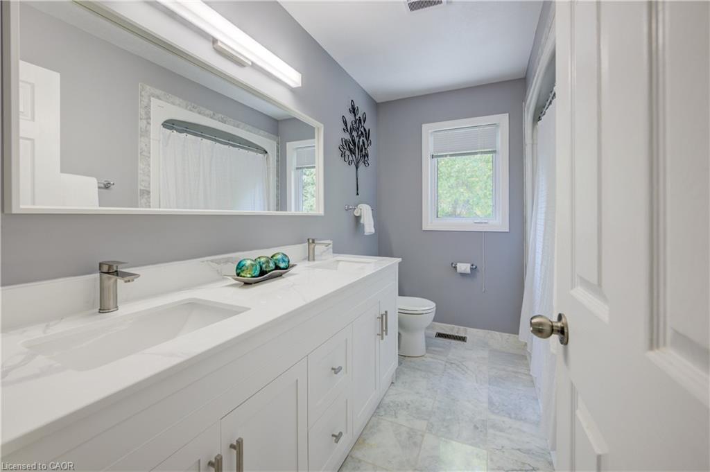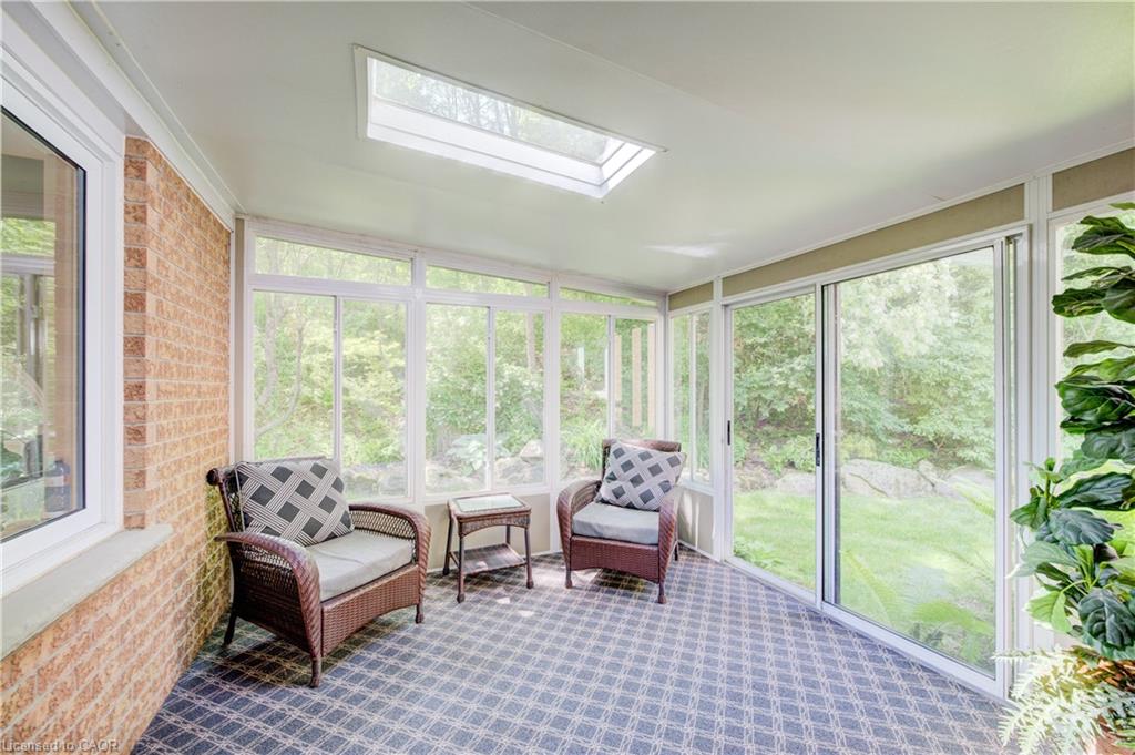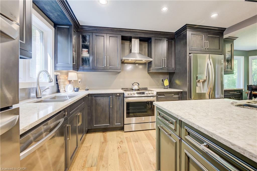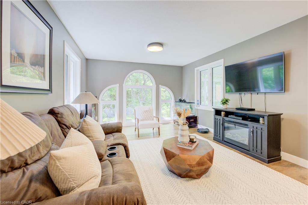 Welcome to your private oasis in the heart of Puslinch, a peaceful country setting just minutes from all amenities, backing onto Victoria Park Valley Golf Club. Set on 1.4 acres of tree-lined privacy, this 4-bedroom, 2.5-bathroom home is as beautiful inside as it is outside. With beautiful snowfalls, the landscaped property offers a peaceful backdrop for cozy nights in. And when summer rolls in, the property transforms into a perfect outdoor retreat, offering multiple spaces to relax and entertain. Play lawn games on the open yard space, enjoy al fresco dining in the outdoor kitchen beside a tranquil waterfall, or unwind by the saltwater pool tucked away among mature trees. With unique local experiences nearby, from snow yoga sessions with friendly alpacas, to walking out your back door for a quick round of golf, you’ll love the year-round charm this community offers. Inside, the home has been thoughtfully updated to blend modern comfort with timeless style. The main floor renovation (2022) features hardwood flooring, fresh paint, updated lighting, and a stunning kitchen with Corian countertops and backsplash, custom cabinetry, stainless steel appliances including a built-in oven and microwave, and an expansive island—ideal for casual meals or gathering with friends and family. You’ll love the sunlit living room with large windows overlooking the private backyard, and the 3-season sunroom offers a quiet retreat to relax. Upstairs, you’ll find four generously sized bedrooms. The primary suite includes his-and-hers closets and a renovated 4-piece ensuite with an oversized walk-in shower, while the updated 5-piece bathroom serves the rest of the family with ease. The lower level, finished in 2025, adds even more space for everyone to enjoy. It features a cozy rec room, games area, and a bonus room—perfect for a home office, gym, or guest accommodations.