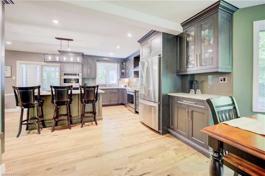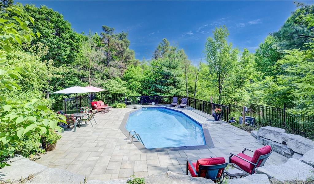 Whether you’re spending summer days by the pool, dining under the stars, or squeezing in a twilight round of golf, this home offers space, serenity, and a lifestyle that’s hard to beat. Welcome to your private oasis in the heart of Puslinch—a peaceful country setting just minutes from all amenities, backing onto Victoria Park Valley Golf Club, where you can step out from your back door for a quick round after work. Set on 1.4 acres of tree-lined privacy, this 4-bedroom, 2.5-bathroom home is as beautiful inside as it is outside. The landscaped property offers multiple outdoor spaces to relax and entertain—play lawn games on the large, flat green, enjoy al fresco dining in the outdoor kitchen beside a tranquil waterfall, or unwind by the saltwater pool tucked away among mature trees. Inside, the home has been thoughtfully updated to blend modern comfort with timeless style. The main floor renovation (2022) features hardwood flooring, fresh paint, updated lighting, and a stunning kitchen with Corian countertops and backsplash, custom cabinetry, stainless steel appliances including a built-in oven and microwave, and an expansive island—ideal for casual meals or gathering with friends and family. You’ll love the sunlit living room with large windows overlooking the private backyard, and the 3-season sunroom offers a quiet retreat to relax. Upstairs, you’ll find four generously sized bedrooms. The primary suite includes his-and-hers closets and a renovated 4-piece ensuite with an oversized walk-in shower, while the updated 5-piece bathroom serves the rest of the family with ease. The lower level, finished in 2025, adds even more space for everyone to enjoy. It features a cozy rec room, games area, and a bonus room—perfect for a home office, gym, or guest accommodations.