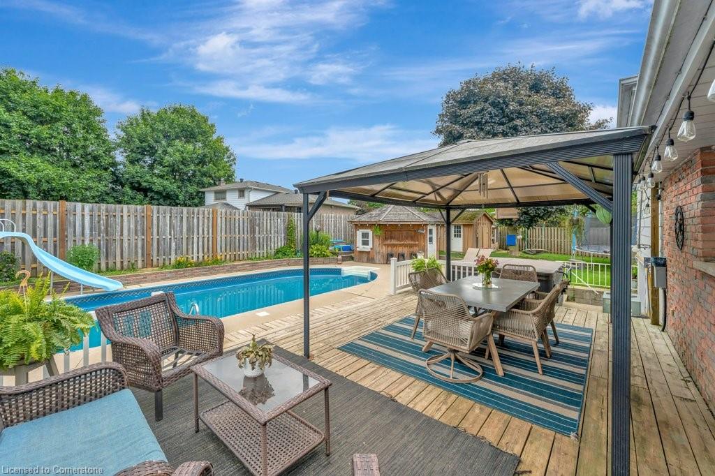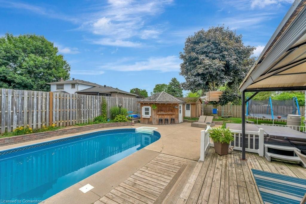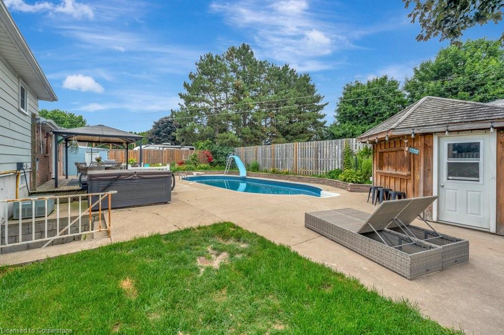 IN GROUND, HEATED POOL! Just in time for the summer heat waves and entertaining season! This beautiful home offers endless possibilities! With 4 bedroom, 2 bathrooms, multiple living rooms, a backyard oasis and walking distance to the elementary and high schools, it is the perfect family home. And with a separate entrance to the lower levels, it can easily host multi-generational families or possibly a utility suite for a mortgage helper! This turn key beauty boasts over 1700 sq ft of living space with tons of natural light throughout. As you enter, you’ll be greeted by a large family room, kitchen and separate dining room with a walk out to the picturesque backyard escape. Go up a short set of stairs to find 3 generously sized bedrooms and a recently updated bath. Go down a short set of stairs and you’ll be met by a cozy living room, warmed with a natural gas fireplace, another sizable bedroom and another full bathroom. And there’s even more living space down another few steps! A very cozy family room to host all those family movie nights! Go outside and you’ll think you’ve left the city and entered cottage country. The magnificent backyard offers an over sized deck, large inground heated pool, pool house, fire pit area, flower garden, veggie garden and an additional storage shed. And to round out this impeccable home there’s ample parking with a 2-car garage and a driveway for 4 cars! You’re sure to have every box checked with this show stopper!