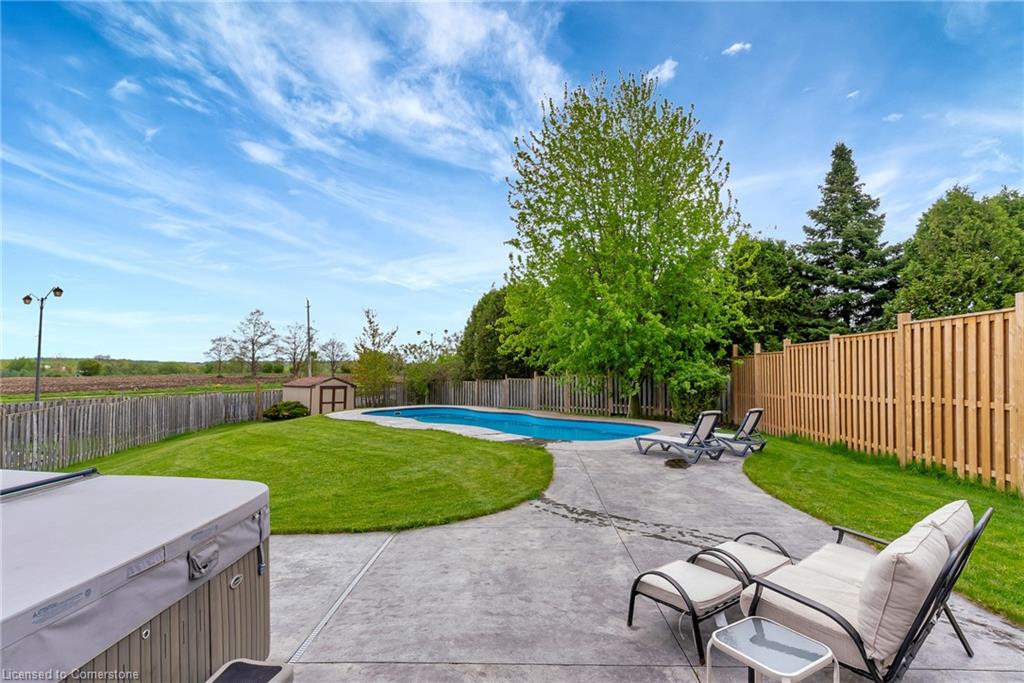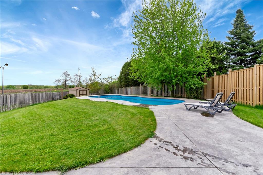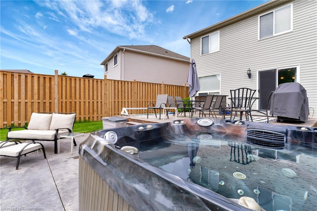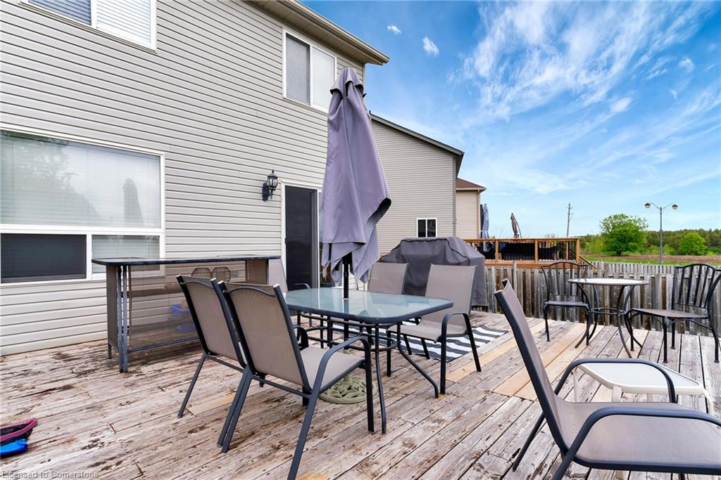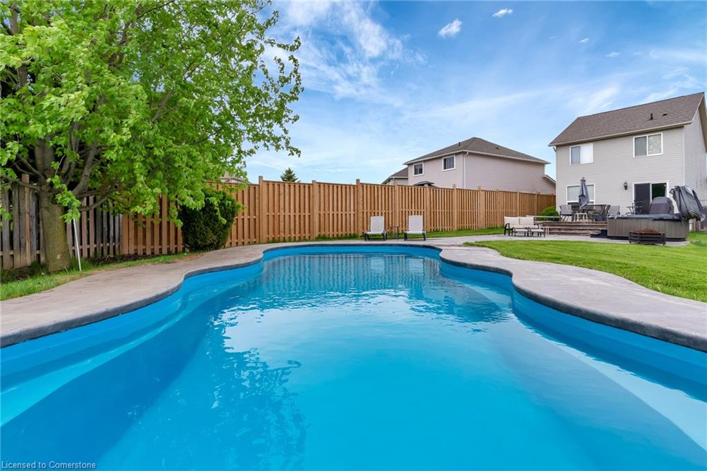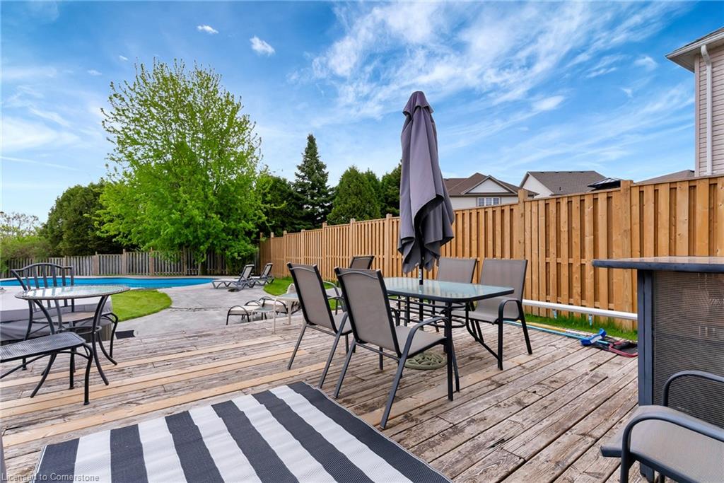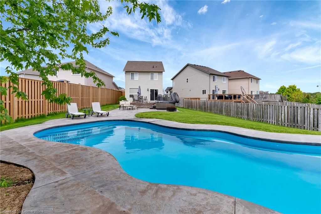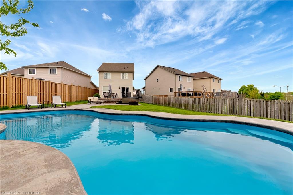 Welcome to 775 Angler Way, located in the sought after neighbourhood of Eastbridge, Waterloo on an exceptionally large lot and located on a quiet court. This 3 bed, 2 bath 2 storey home has great curb appeal with an attached garage, double wide exposed aggregate driveway and no rear neighbours! inside you’ll love the layout of the carpet free main floor with timeless updated flooring and powder room, open concept living room/eat in kitchen with stainless steel appliances. Off the dining area, there are sliding doors to the stunning back yard, Fully fenced and fully private, this oversized lot is a rare find and will be your own private oasis, featuring a 16×36 fiberglass heated pool surrounded by stamped concrete, a large deck and hot tub! Back inside and up the stairs you will find a cozy bonus room, perfect for relaxing with a book or watching TV. Up a few more stairs there are 3 spacious bedrooms and a renovated 4 pce bathroom. The large basement awaits your finishing touches. This area is close to the expressway, shopping, great schools, walking trails, universities and golf courses. Roof, furnace and a/c are 5 years, and no need to worry about changing expensive pool liners again.
