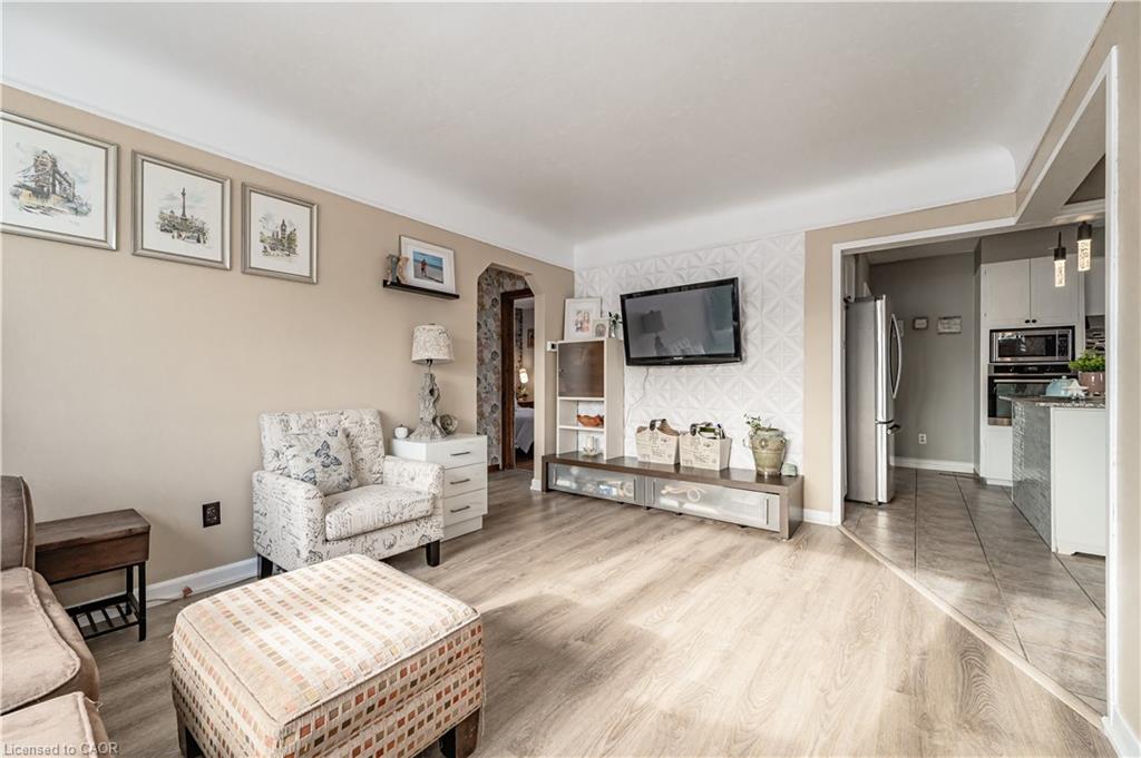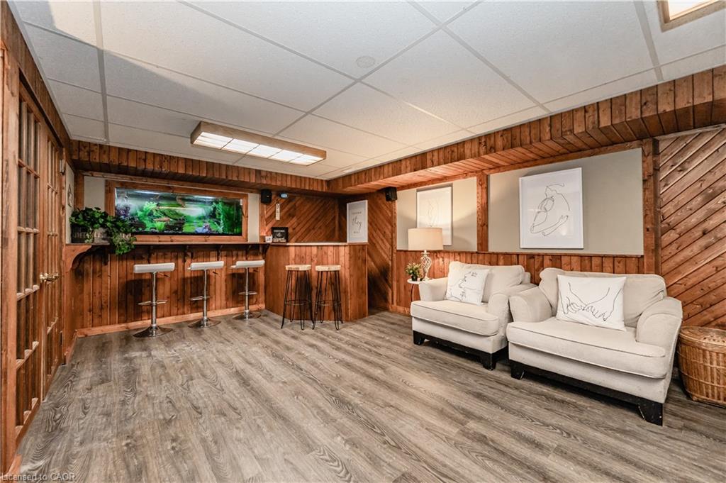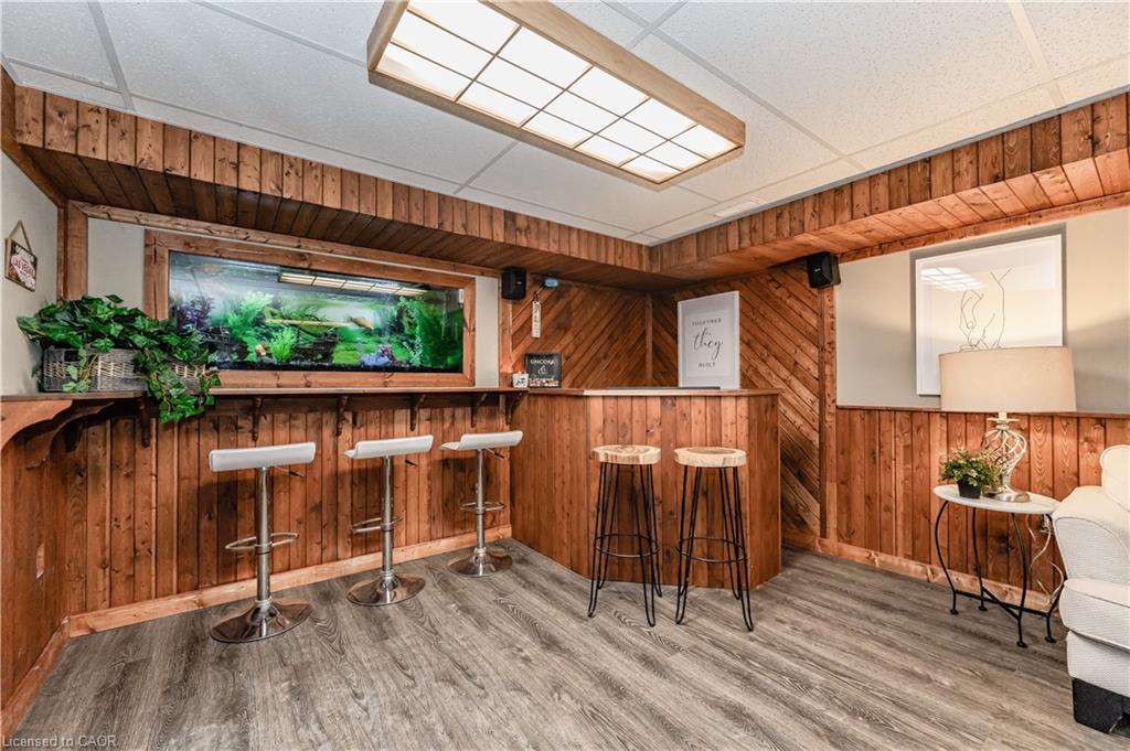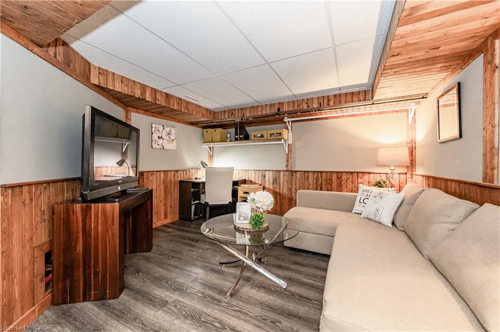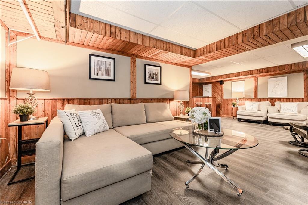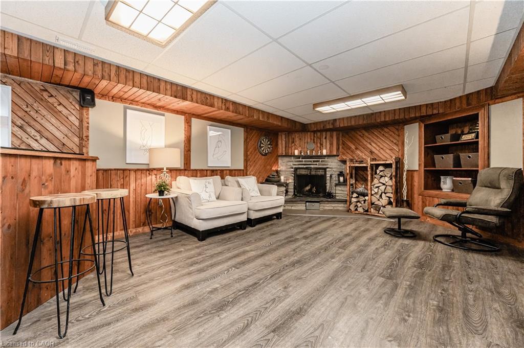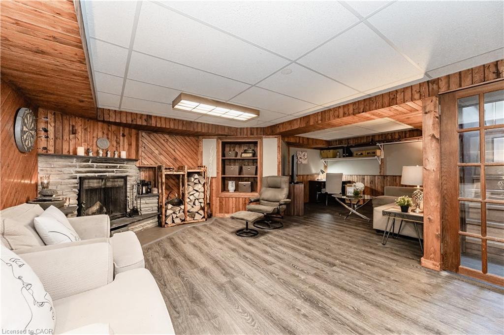 “Open House Sun June 22. 2 to 4pm.”Welcome to this charming 2-bedroom bungalow, an ideal choice for anyone looking for easy, independent living with great outdoor access. Freshly painted and carpet-free, this bright and welcoming home is filled with natural light and inviting charm. The kitchen boasts stylish quartz countertops, perfect for both cooking and entertaining. Downstairs, the finished basement offers a spacious rec room complete with a bar, a built-in aquarium, and a cozy wood-burning fireplace, great for relaxing or hosting guests. Step outside to enjoy a beautifully landscaped, oversized yard with a deck, garden beds, blooming flowers, mature plants, and a handy 14′ x 14′ workshop with hydro. There’s even a fire-pit area to enjoy warm summer nights. Driveway fits up to four cars. Book a showing today and make this wonderful home yours tomorrow!