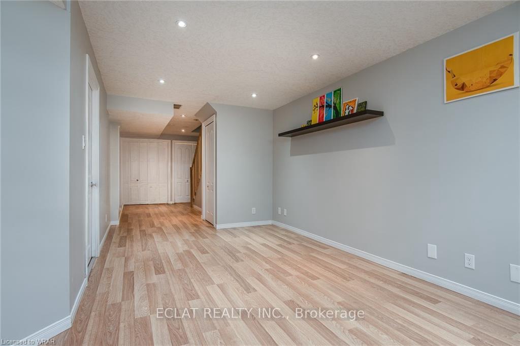 LOCATION, LOCATION,LOCATION. CLOSE TO ALL ESSENTIAL AMENITIES, PUBLIC TRANSPORT. This FREEHOLD, NO CONDO FEEs, NO RENTAL ITEM, UPGRADED, CARPET FREE, ENGINEERED FLOORING and port light filled 3+1 bedroom , 2 (4piece) bathrooms, 2 extra washrooms, finished basement townhome is located in a great, quiet family oriented neighborhood is up for sale. It is close to COSTCO, BEER STORE, CANADIAN TIRE, BANKS, PHARMACY, STARBUCKS, SCHOOLS, PLUS many other famous brand stores and restaurants along IRA NEEDLES BLVD. It’s MINUTES away from UNIVERSITY of WATERLOO AND WILFRED LAURIER UNIVESITIES. CONESTOGA COLLEGE UNIVERSITY CAMPUS is also minutes away. Access to 401 Highway is very easy. The famous, tourist ST JACOB’S FARMERS MARKET is also under 12 min. drive. The huge master bedroom comes with a 4piece ensuite bathroom and a walk-in closet. The 2 secondary rooms are generous sized rooms with one closet each and sharing another 4piece bathroom. Stainless-steel kitchen appliance come included with the home. A bright, practical kitchen comes with ample storage and counter space. A walk-out from the dinette leads to the backyard through the sliders. The Living room is spacious with lots of bright natural light. The basement is all finished, with a 2piece washroom and spacious with a laundry room and utility rooms located off of it. More storage space is also available. Washer and drier are also included. 2025 UPGRADES include NEW ROOF, NEW WINDOWS, NEW FRIDGE. Other upgrades includes new paint all over, over 45 port lights, stair casing redone, new ceilings etc. More beautiful than the picture tells. VTB of $100,000 available, terms and conditions apply. DONT MISS THIS.