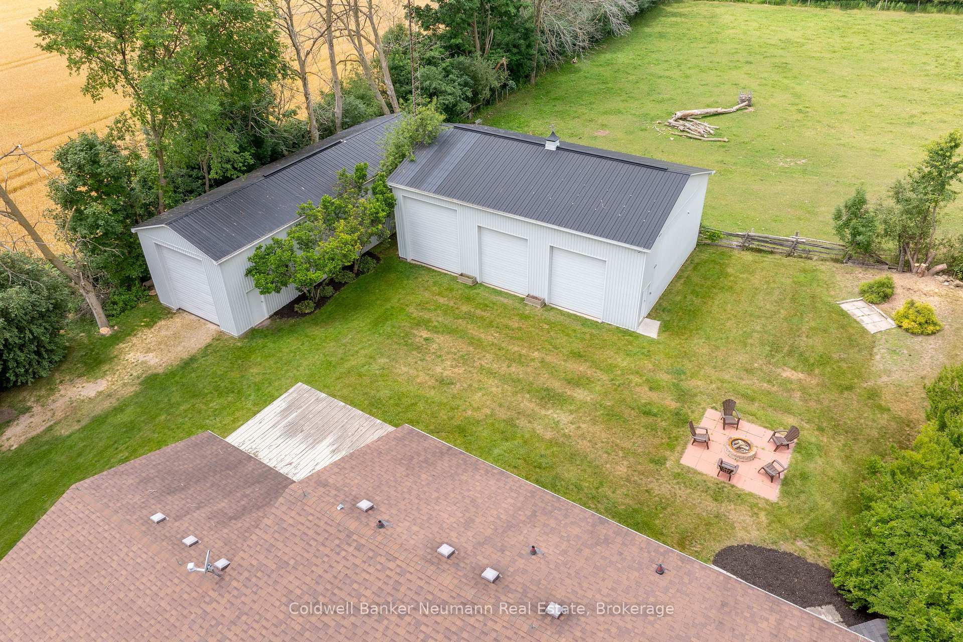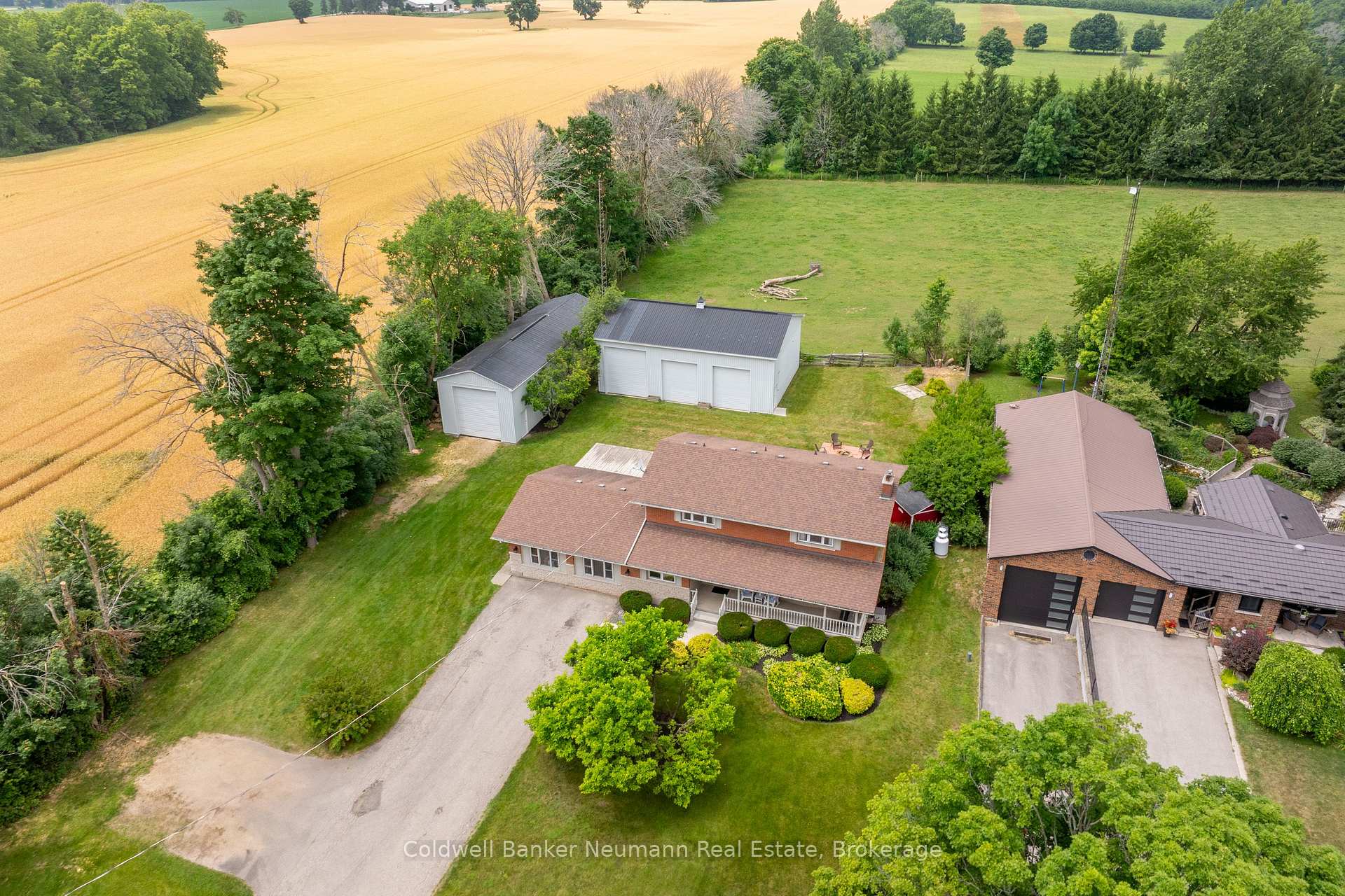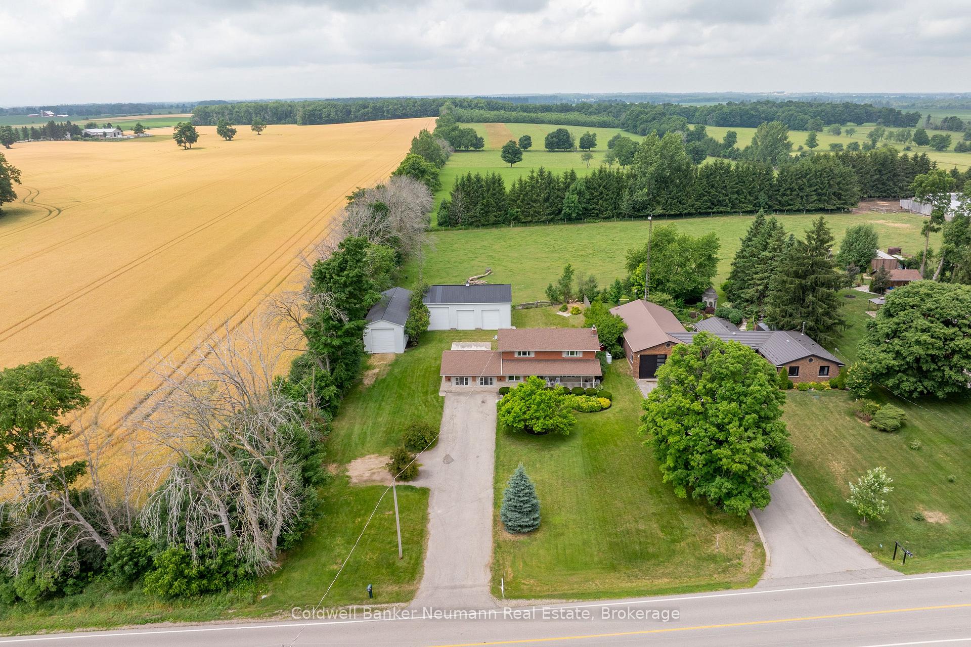 Country living at its best! This spacious home loved by one family for over 35 years, sits on just shy of an acre of beautifully landscaped land with serene views of open countryside featuring two shops! Offering over 2,700 sq ft of living space, including a 400 sq ft above-grade bachelor style in law suite, ideal for multigenerational living. The main two story home features a large wood kitchen with stainless steel appliances, ample storage, and quartz countertops. In addition to a separate dining room, and a bright living room with an electric fireplace. Main floor laundry, a 4-piece bath, and a dedicated office/flex space provide everyday convenience. The homes second floor features 4 generous bedrooms, and a full 4-pc bath. The fully finished basement offers additional living space and abundant storage. Additionally – the property features a 20kw generator for an added peace of mind to the homeowner. Outside, you’ll find two impressive shops: a 20×60 ft gravel-floor shop with 14ft door – perfect for RV or equipment storage – and a 32×47 ft three-bay shop with one, 12ft and two, 10ft doors boasting over 2,700 sq ft of combined shop space for hobbies, business, or storage needs. The backyard is private and landscaped with no rear neighbours. A perfect combination of function, space, and flexibility in a peaceful rural setting. Just minutes to town amenities with a quick drive into Guelph. A must-see!
