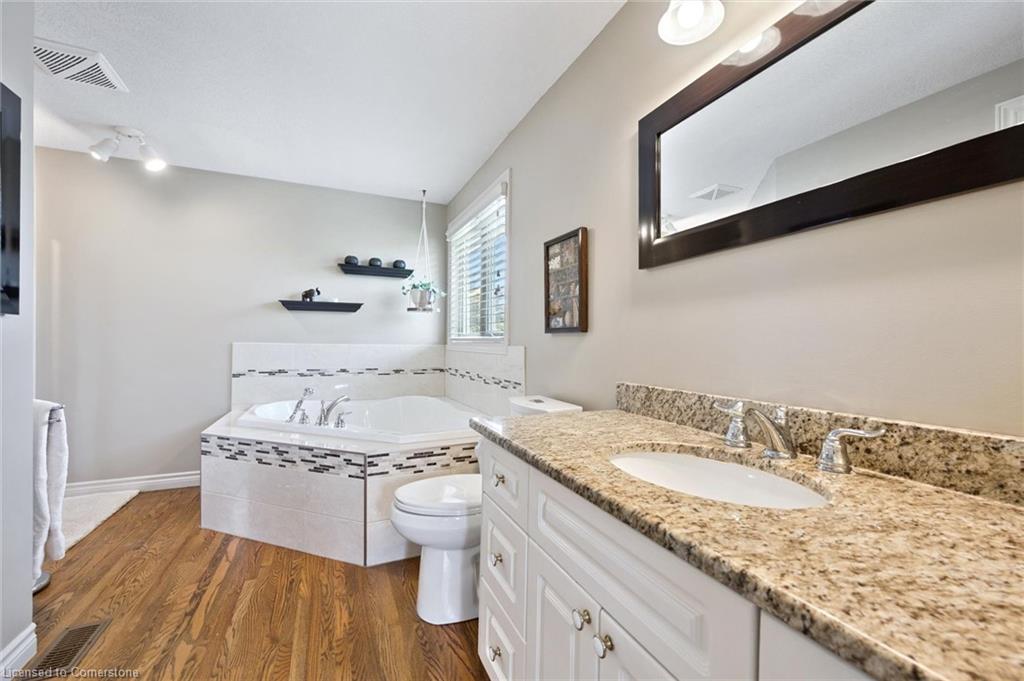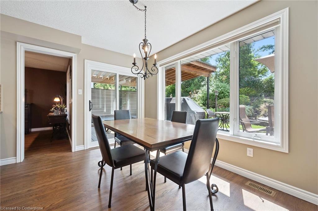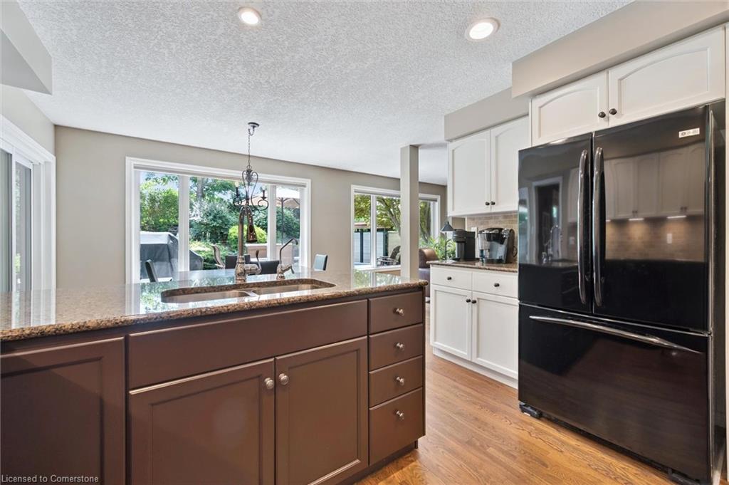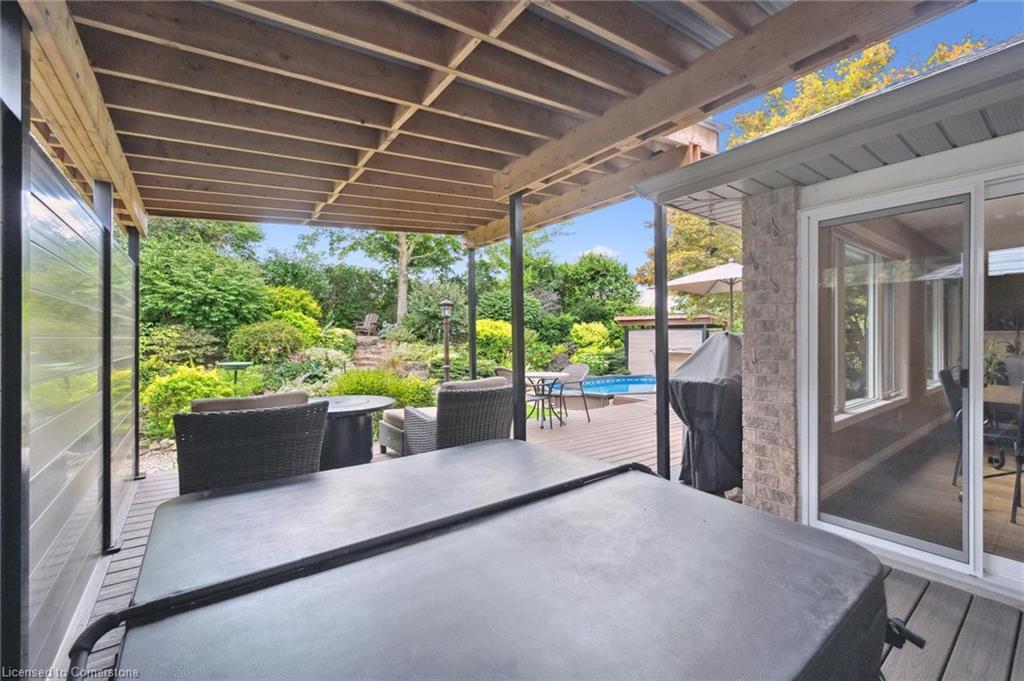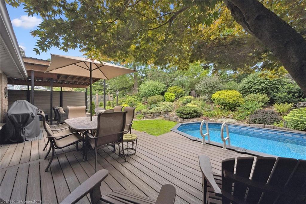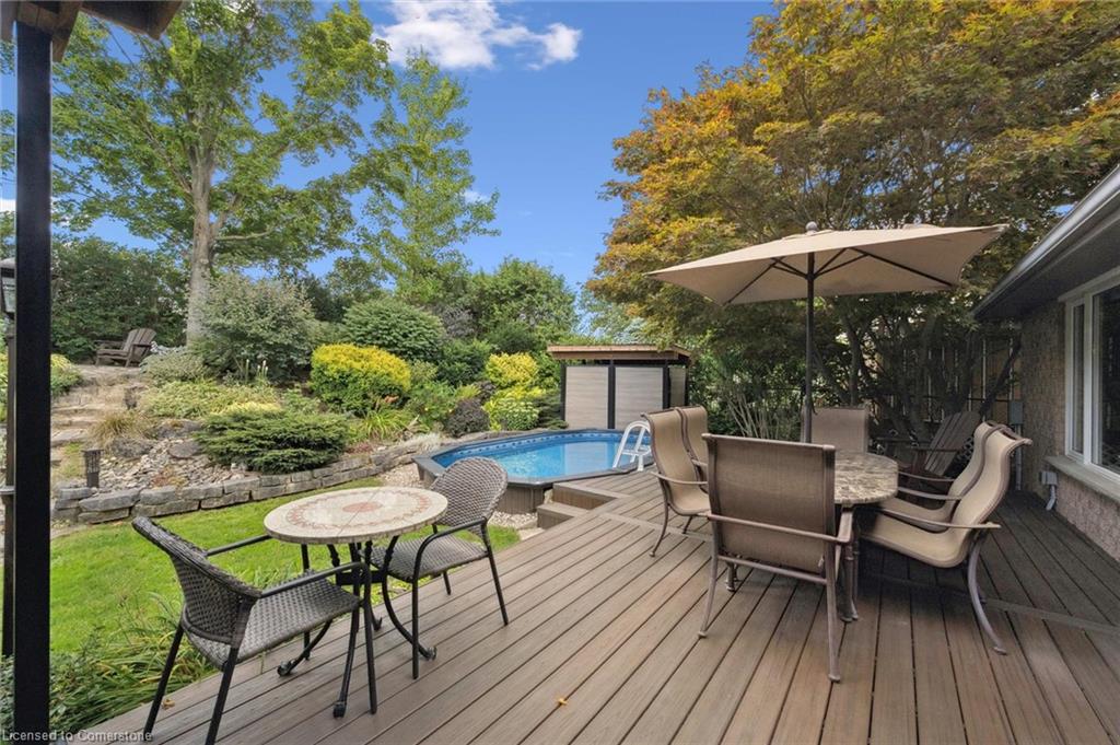 It’s a magical thing to find a property that perfectly blends privacy and play with easy access to amenities, parks, shopping, and top schools. Welcome to this fastidiously maintained home in one of Guelph’s most desirable neighbourhoods. The striking curb appeal and lush gardens make this a true gem for the discerning buyer seeking a beautiful house with incredible views and lifestyle built right in. A main floor consisting of well-appointed living and dining spaces creates the perfect setting for family life and entertaining. There’s room for the entire team in the thoughtfully designed kitchen with freshly painted cabinetry, granite counters, and handsome appliances. Wide open views of the rear yard gently invite nature in and seamlessly blend both indoor and outdoor spaces. Hang out in the large family room; watch a movie, cosy up by the fire, play board games, or simply read a book while the sun fades behind the trees. Upstairs, three generous bedrooms include a spacious primary, with a delightful ensuite retreat and walk-in closet. There is also a freshly updated family bathroom on this level. And the upper office area, while extremely useful, can easily be converted into a 4th bedroom if desired. The fully finished lower level adds an extra bedroom, along with a hugely versatile rec room, snug fireplace, and loads of storage. Outdoors, an enviably private yard backs onto open farmland and is surrounded by mature landscaping. Enjoy summer days in the 10’ by 18’ pool, unwind in the hot tub on the covered porch, dine al-fresco on the spacious composite deck, and host sublime gatherings in style. With quick access to the Hanlon Parkway and Hwy 401, this home blends peaceful living with unbeatable commuter convenience. Let’s get you in for a closer look soon.