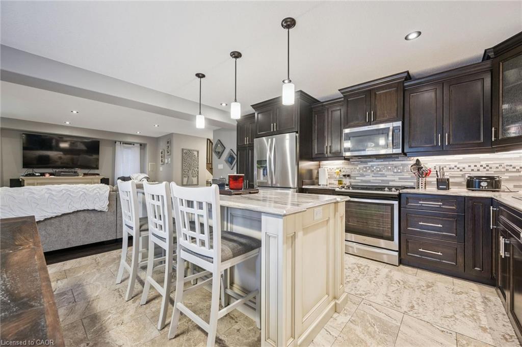 Built by distinguished Paradigm Homes, this legal duplex is located in Elmira’s desirable Southwood Park community. The main floor offers a bright, modern layout featuring an eat-in kitchen with island, ample cupboard space, and high-end appliances including a gas stove. The living room is enhanced by a gas fireplace and built-in wall speakers, ideal for everyday living and entertaining. Carpet free throughout, with carpeting limited only to the bedrooms. Upstairs, the spacious primary bedroom provides a private retreat with luxury ensuite bathroom, featuring his and hers sinks and a rainfall shower. Upper level laundry, a 4 pc. bathroom and two other large bedrooms complete the space. Step outside to the large, fully fenced, private backyard, featuring gazebo, hot tub and raised flowerbeds. This is a true entertainer’s oasis offering space to relax, host, and enjoy outdoor living. The professionally finished one bedroom lower level apartment includes a separate entrance and private laundry, making it ideal for extended family, guests, or as a valuable mortgage helper—while allowing you to comfortably enjoy the main home as your own. Hobbyists take note, the double car garage is fully insulated and heated. Enjoy the best of both worlds – minutes from shopping and amenities, a short drive to Waterloo and steps from the park, forest and walking trails.