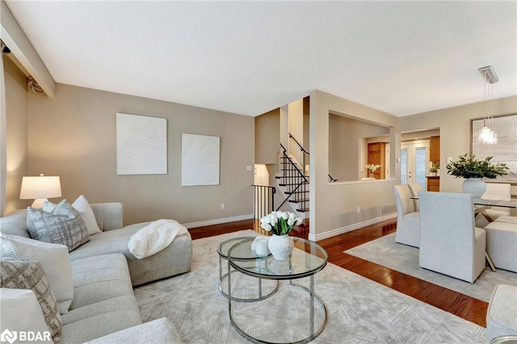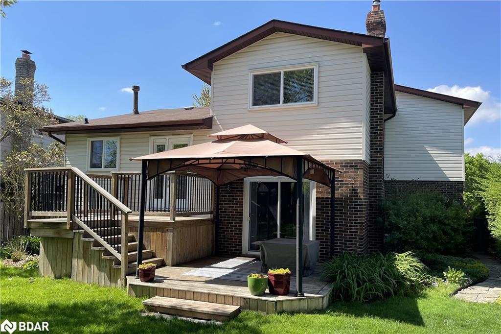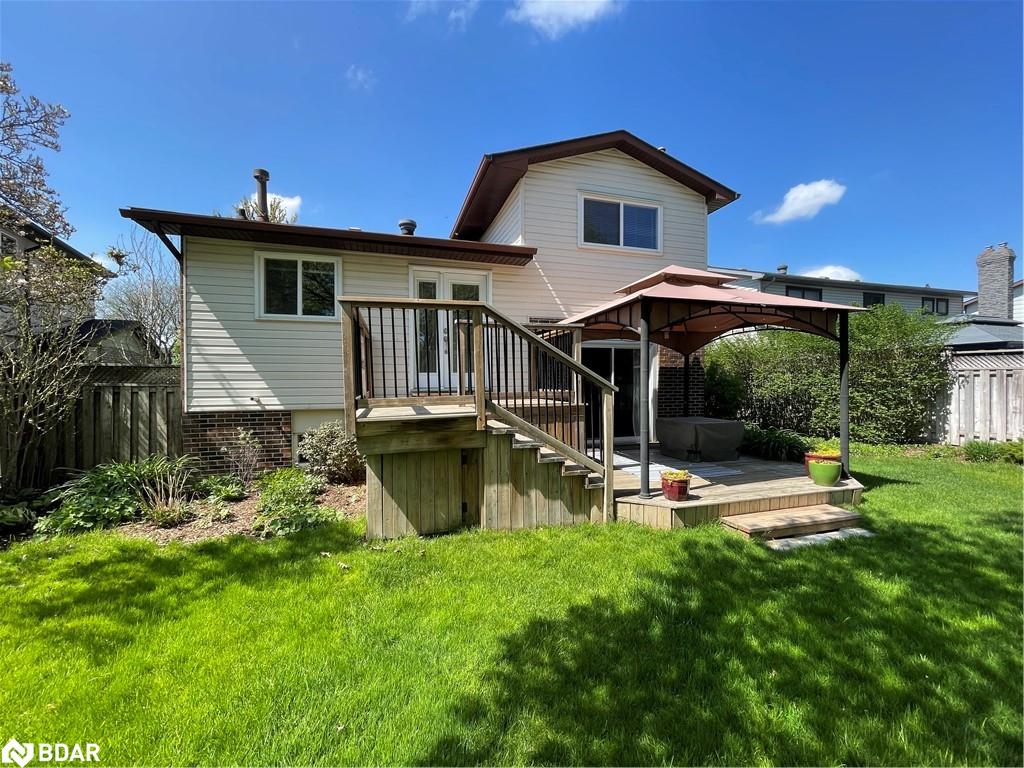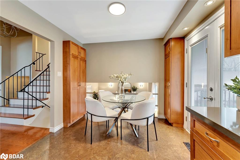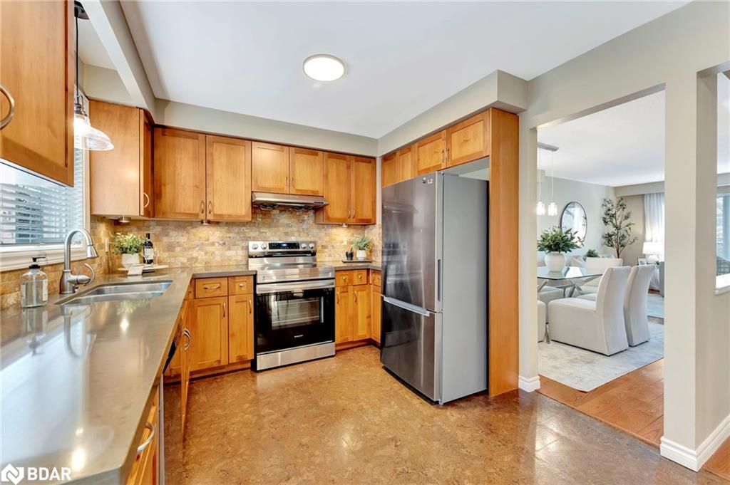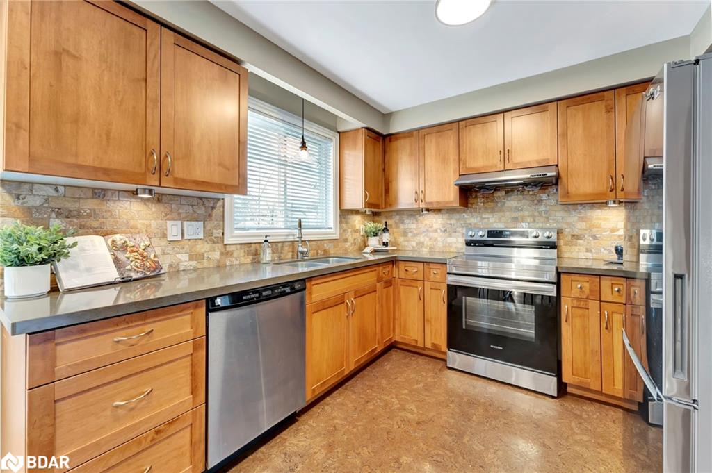 A true standout in Dorset Park set apart by thoughtful renovations and rare features in this sought after neighbourhood. Beautifully updated 4-level side split with 3 bedrooms and rarely offered 2 full baths. Double car garage plus 2 parking spots and inside entry to the home for your convenience. Fresh paint and modern lighting combined with recent updates of furnace, roof, windows/patio doors add peace of mind to just move in. Custom renovated kitchen with Barzotti Maple cabinets, Cambria countertops, cork floor, stainless appliances (2024), and added built-in pantry is the heart of this home. The eat-in kitchen area is open to the family room below and features a walk-out to the upper deck. Spacious bright open-concept dining and living rooms for entertaining. Main floor family room with fireplace and 2nd set of patio doors to lower deck and fenced back-yard. Hardwood floors in principle rooms. Semi-ensuite custom bath with additional Barzotti cabinetry. Shower added in the main-floor bathroom. Main level side exit to a surprisingly spacious side-yard. Finished basement and lower level laundry plus extra crawl space for storage. Fully fenced fabulous private backyard with mature trees & landscaping, and beautiful gardens. Outdoor living & entertaining complete this large backyard with a potentially pool sized dream space. Set in a mature, family-friendly neighbourhood close to parks, schools, and all of Milton’s amenities, this gem of a home offers a blend of modern upgrades with timeless charm creating a warm and inviting space your family will love.