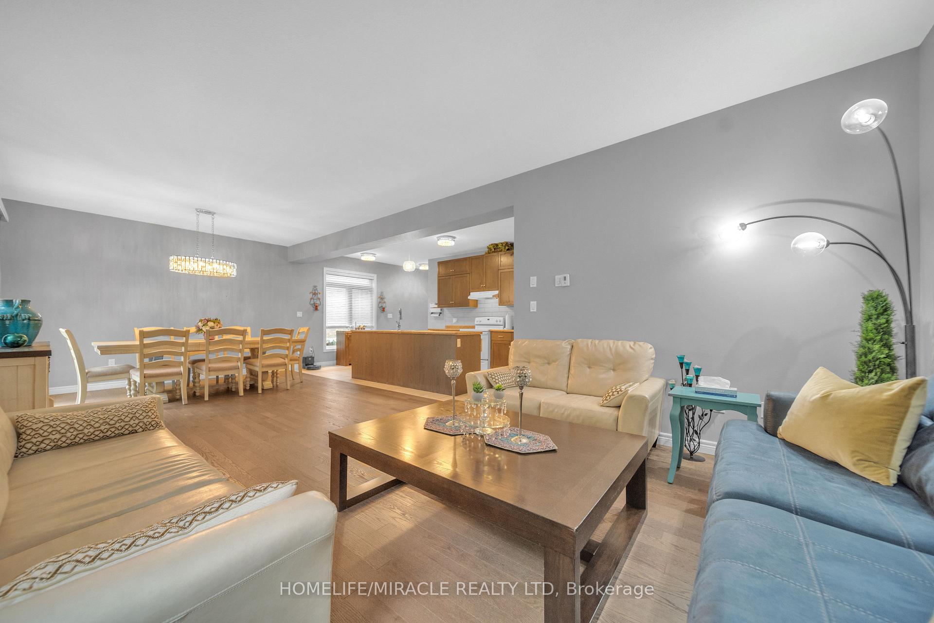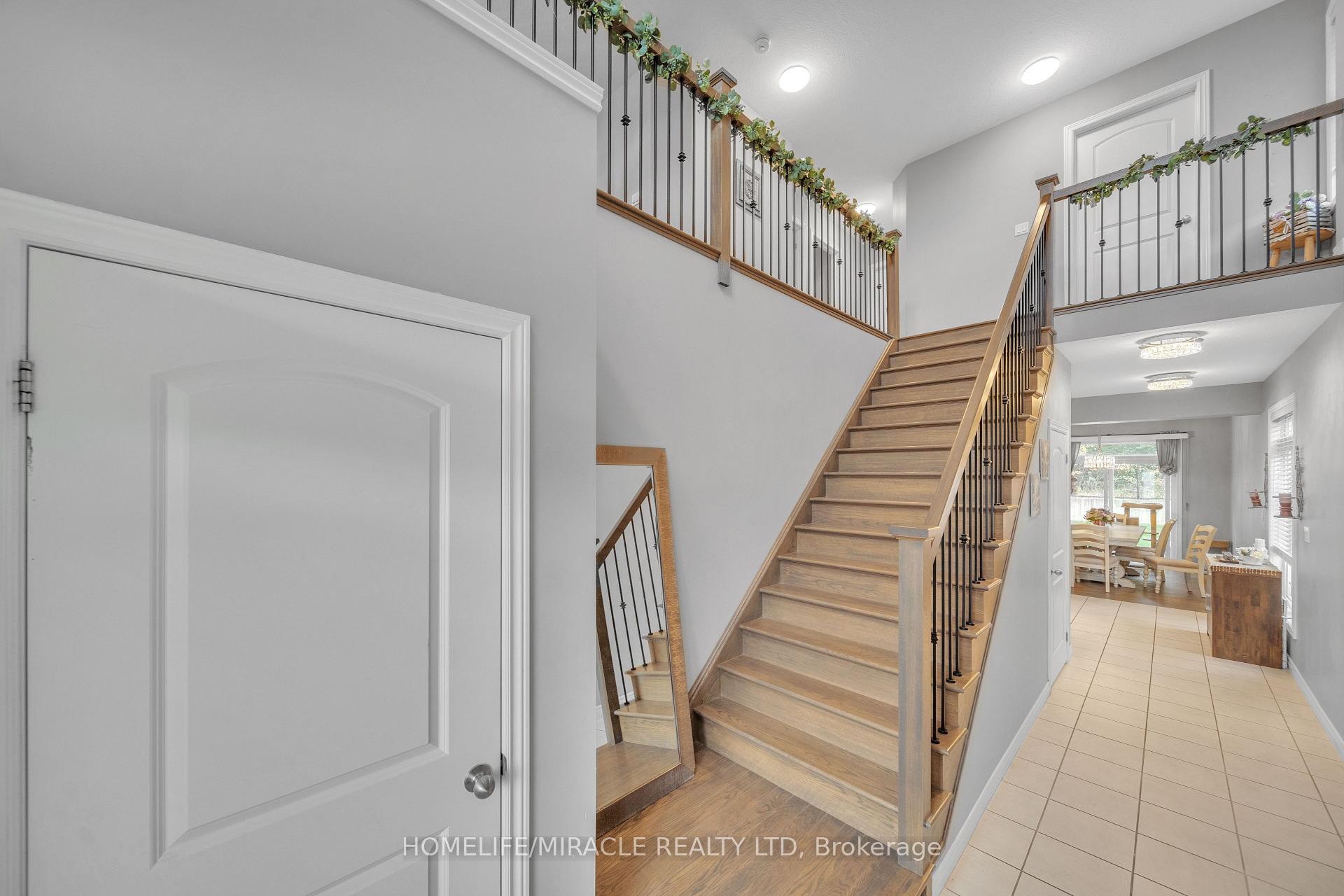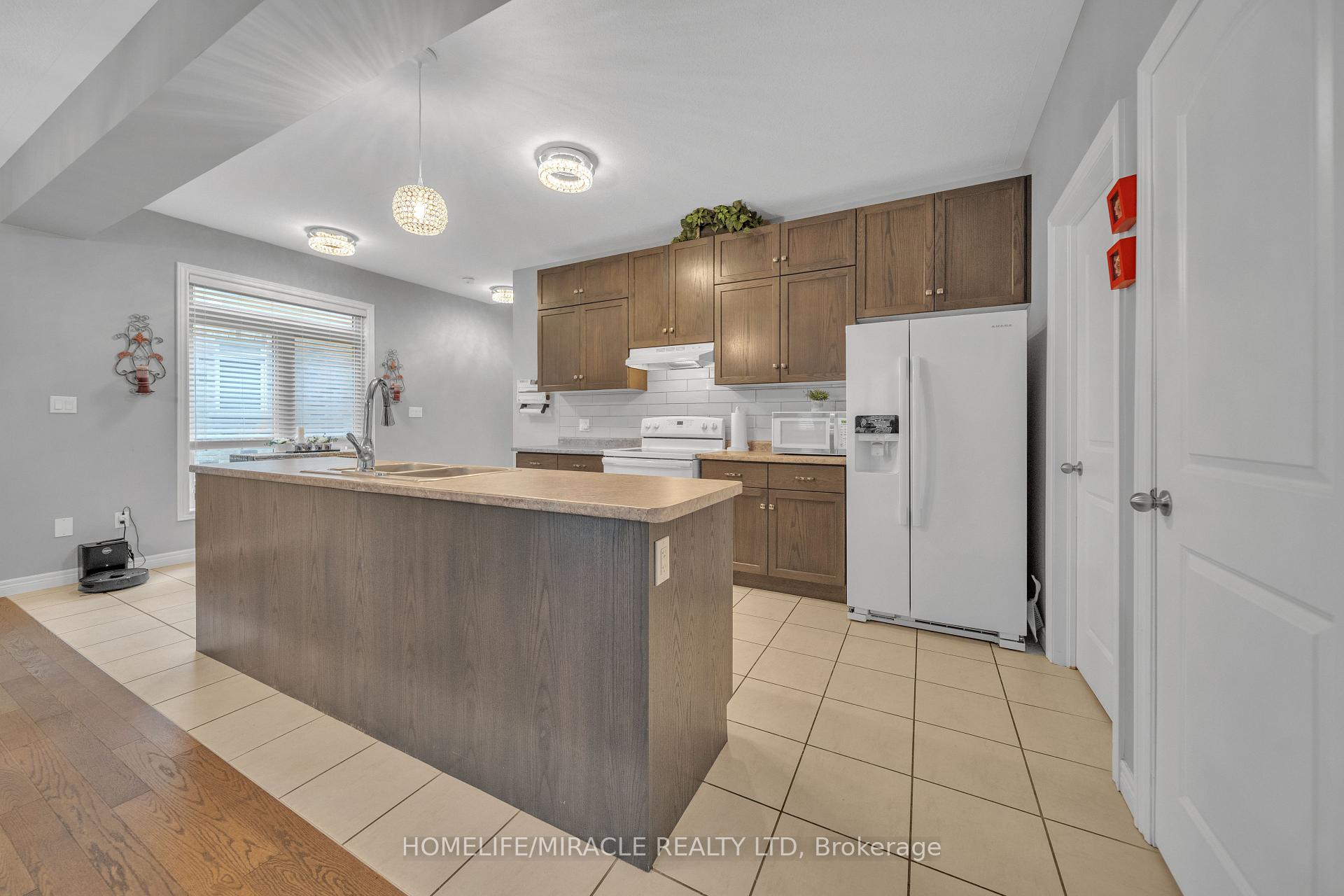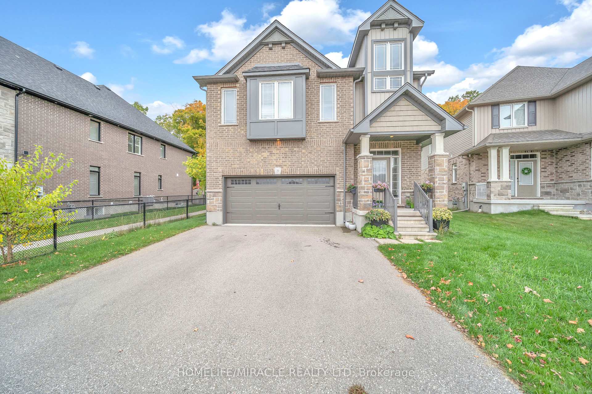 Premium Ravine Lot!Welcome to this stunning home offering approximately 2,385 sq ft of elegant living space plus a builder-finished basement with a full bath. Built in 2017 and meticulously maintained, this home sits on a wide premium lot backing onto a beautiful greenbelt, ensuring privacy and serene views. The owners invested nearly $100K in lot and upgrades, making this a truly exceptional property.Premium Ravine Lot no rear neighbours, green belt behind 9 ft ceilings with an open-to-above foyer for a grand entrance Bright, open-concept layout with living, dining & spacious family room Elegant oak staircase with metal pickets Spacious primary suite with ensuite bath + 2 additional large bedrooms Finished basement by builder featuring a 4-pc bathroom and extra living space Double car garage with ample parking Located on a quiet, kid-friendly street Minutes to Hwy 401 perfect for commuters Close to Conestoga College, schools, shopping, and all amenities Family-oriented neighbourhood surrounded by nature trails & parks Finished top to bottom and move-in ready, this home combines comfort, functionality, and premium upgrades perfect for families looking for both style and convenience! Don’t Miss it before it sold