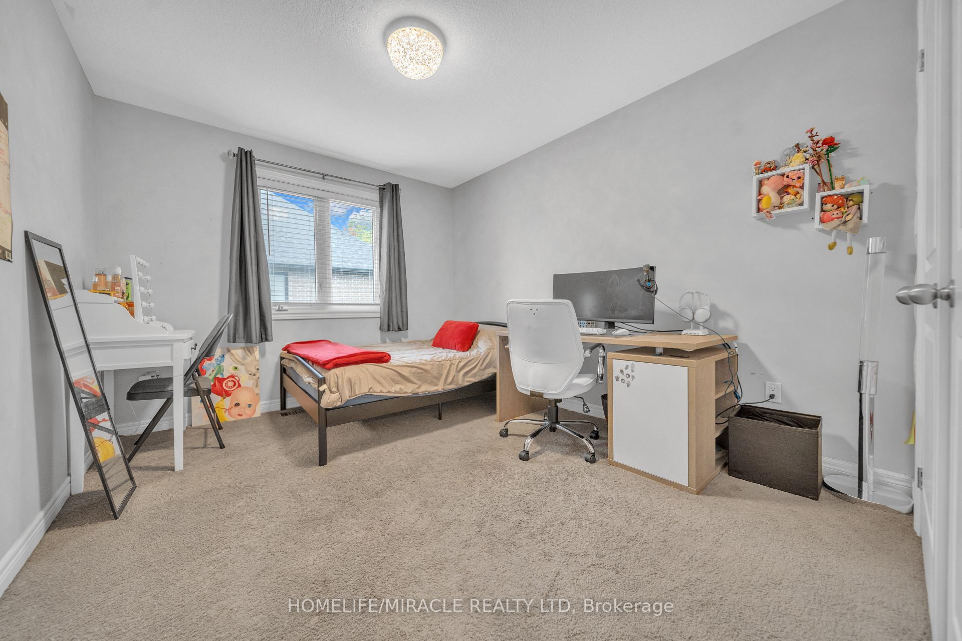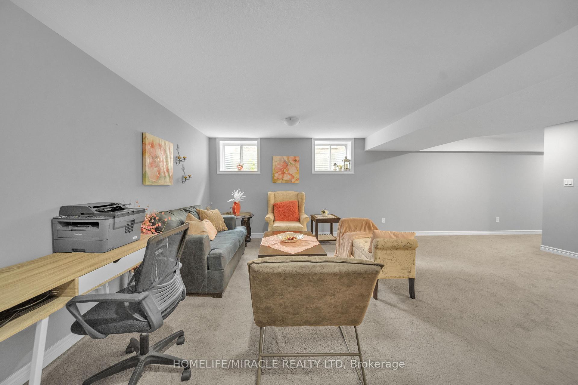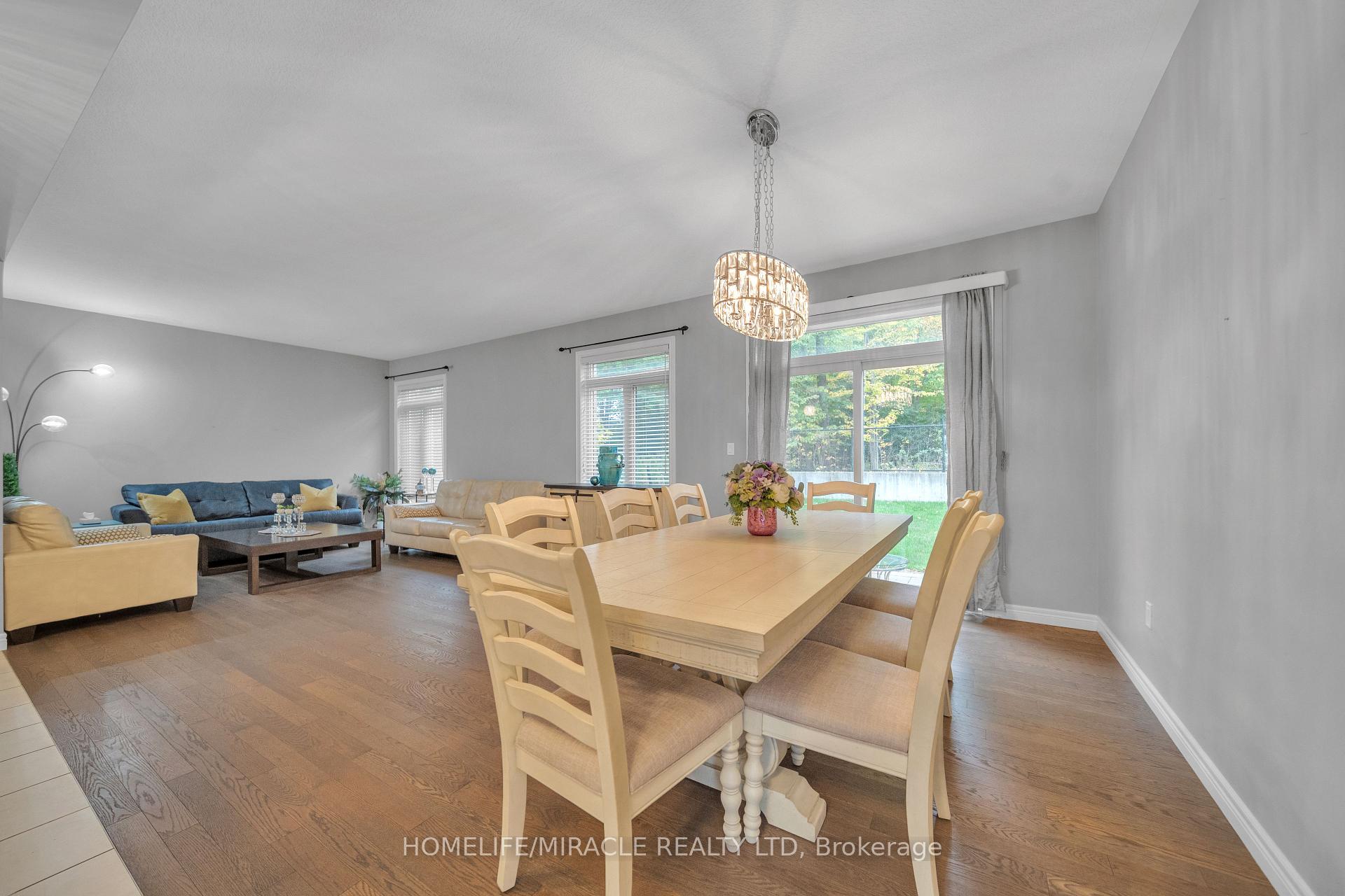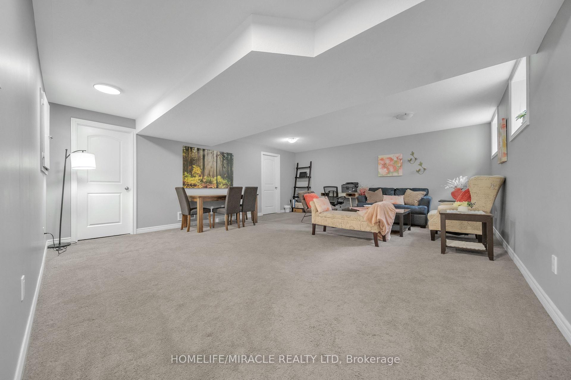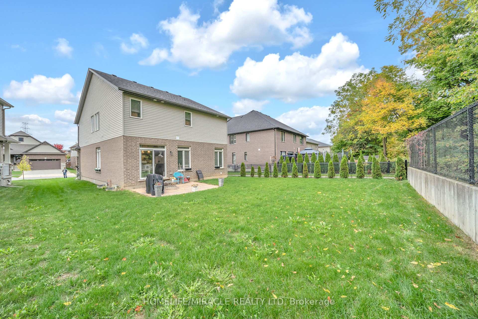 Premium Ravine Lot!Welcome to this stunning home offering approximately 2,385 sq ft of elegant living space plus a builder-finished basement with a full bath. Built in 2017 and meticulously maintained, this home sits on a wide premium lot backing onto a beautiful greenbelt, ensuring privacy and serene views. The owners invested nearly $100K in lot and upgrades, making this a truly exceptional property.Premium Ravine Lot no rear neighbours, green belt behind 9 ft ceilings with an open-to-above foyer for a grand entrance Bright, open-concept layout with living, dining & spacious family room Elegant oak staircase with metal pickets Spacious primary suite with ensuite bath + 2 additional large bedrooms Finished basement by builder featuring a 4-pc bathroom and extra living space Double car garage with ample parking Located on a quiet, kid-friendly street Minutes to Hwy 401 perfect for commuters Close to Conestoga College, schools, shopping, and all amenities Family-oriented neighbourhood surrounded by nature trails & parks Finished top to bottom and move-in ready, this home combines comfort, functionality, and premium upgrades perfect for families looking for both style and convenience! Don’t Miss it before it sold