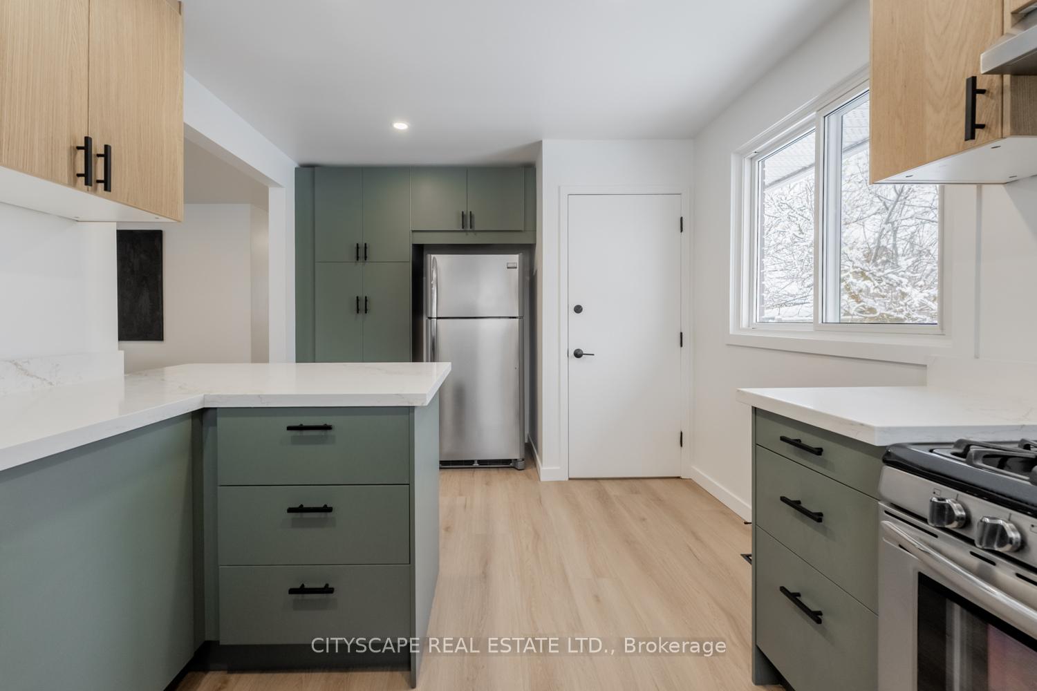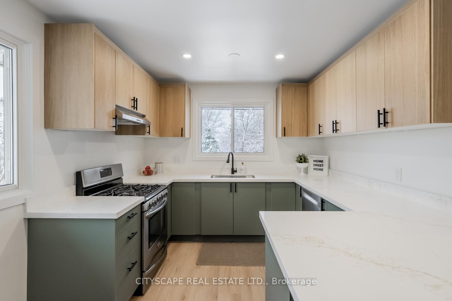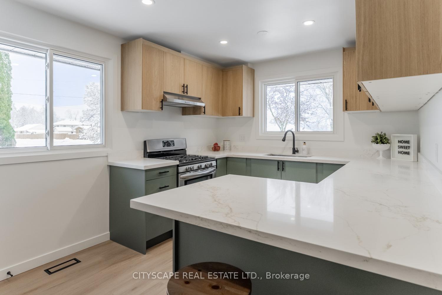 Just Listed! Renovated! Raised Bungalow with 2,000 sq ft of space on 2 levels! 2 kitchens and 2 sep entry doors to the finished bsmnt! This is the one! Great location, minutes to park, school, and 18km walking/biking trail that connects Cambridge to Paris, Ont. 5 minutes to closest grocery store & Starbucks, minutes from charming downtown. Just 7-8 min drive to hundreds of shops and services on Hespeler Rd and Hwy 401 ramp. 2025 renovations – brilliant new kitchen with quartz counters, new designer flooring throughout both levels, new pot lights, upgraded ELF’s throughout, freshly painted and ready for buyer to move in. 2 Elegant, Renovated Bathrooms! Brand new 2025 windows! This home comes with 3 bedrooms + 2 on the lower level, great in-law suite, move in ready. Raised bungalow means generous size windows and bright lower level. Must be seen! See video tour! Open house this weekend! Buyer’s choice of move-in date!