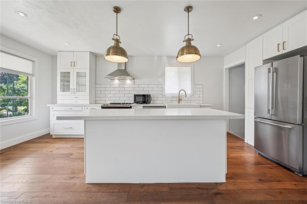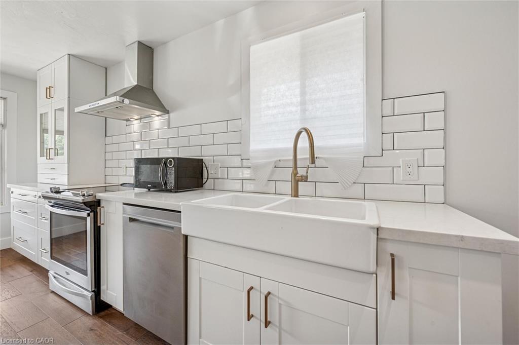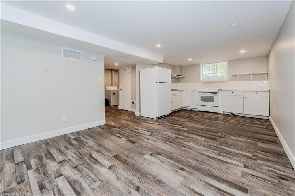 Charming Bungalow with In-Law Suite & Ample Parking! Don’t miss this well-maintained, bungalow with a detached garage and loads of parking, set in a desirable, mature, Family friendly neighbourhood of Cambridge! The renovated main floor offers three spacious bedrooms, a full bathroom, a large living room, and an open concept kitchen with a large island dinette and finished basement! Need a mortgage helper or in-law space? The fully finished lower level offers a second kitchen, large bedroom and living room, in-suite laundry and a separate private entrance and walk out to the large, fenced backyard! Parking is no issue with a paved driveway that easily fits SEVEN vehicles! This carpet-free gem is just minutes from schools, shopping, parks, scenic trails, and the Grand River. Home is currently vacant!