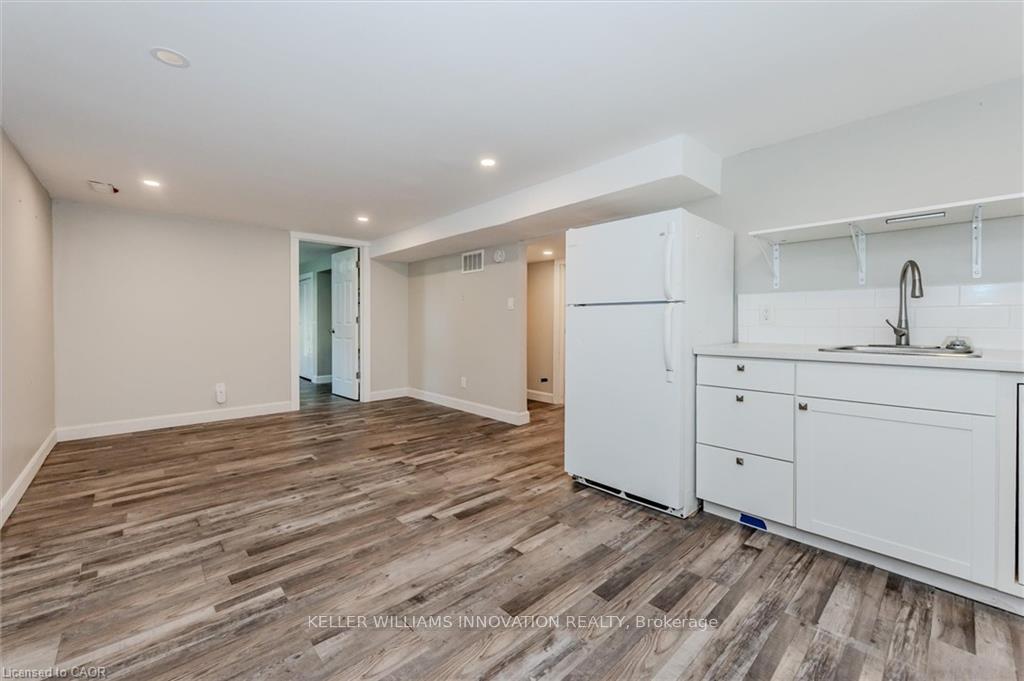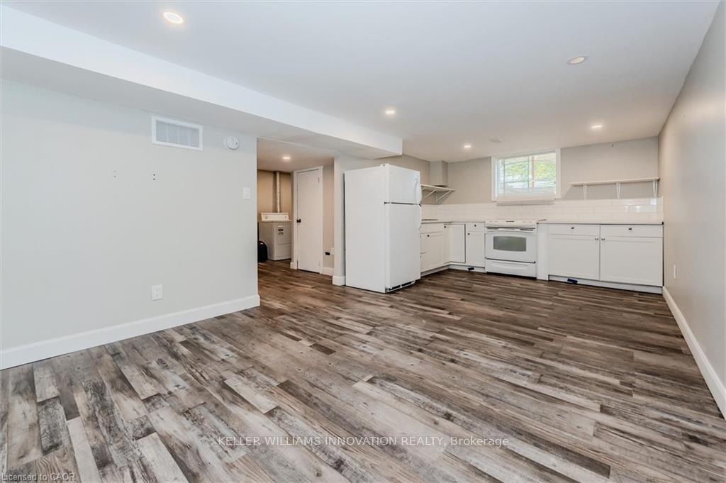 Charming Bungalow with In-Law Suite & Ample Parking! Dont miss this well-maintained, bungalow with a detached garage and loads of parking, set in a desirable, mature, Family friendly neighbourhood of Cambridge! The renovated main floor offers three spacious bedrooms, a full bathroom, a large living room, and an open concept kitchen with a large island dinette and finished basement! Need a mortgage helper or in-law space? The fully finished lower level offers a second kitchen, large bedroom and living room, in-suite laundry and a separate private entrance and walk out to the large, fenced backyard! Parking is no issue with a paved driveway that easily fits SEVEN vehicles! This carpet-free gem is just minutes from schools, shopping, parks, scenic trails, and the Grand River. Home is currently vacant!