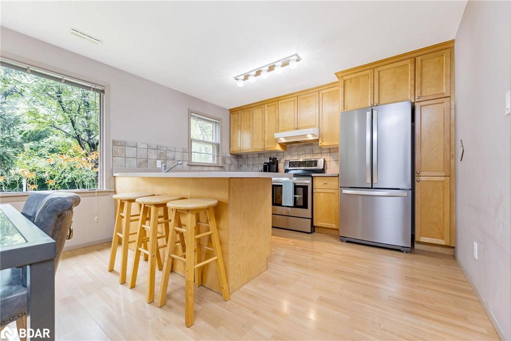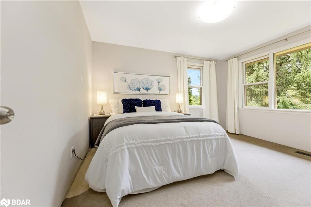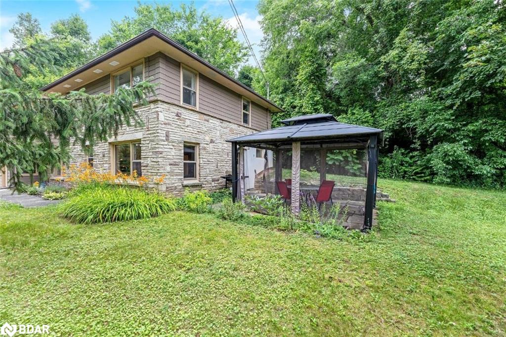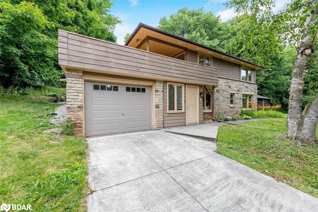 Tucked away down a private laneway in a quiet cul-de-sac affectionately known as “Happy Valley”, this over half-acre property is loaded with character and potential, and offers a unique setting. Surrounded by mature trees and complete with your own share in a protected 1.096 acre parcel of greenspace with access to Silver Creek just across the drive, this is a private park-like retreat rarely found within town limits—and yes, it’s on municipal water. This charming custom-built residence blends warmth, character, and everyday functionality. The inviting stone feature wall and gas fireplace in the family room create the perfect ambiance for cozy evenings, while the eat-in kitchen, formal living room, main floor laundry, and a 2-piece powder room offer thoughtful convenience for modern living. Upstairs, you’ll find four generously sized bedrooms, two of which walk out to a dreamy storybook deck nestled in the treetops—ideal for morning coffee or stargazing at night. A 4-piece family bathroom serves the second floor, offering comfort for the whole crew. Parking is effortless with a private drive, parking pad, and a tandem 2-car garage. Whether you’re hosting a garden party under the shade of willow trees or exploring the peaceful creek in your shared forest, this is a home that invites you to slow down and take the time to build memories with loved ones. All just minutes to Glen Williams, downtown Georgetown, a short walk along the nearby trail system to the GO, and only 17 minutes to the 401. This isn’t just a place to live. It’s a place to love. Welcome to Happy Valley!