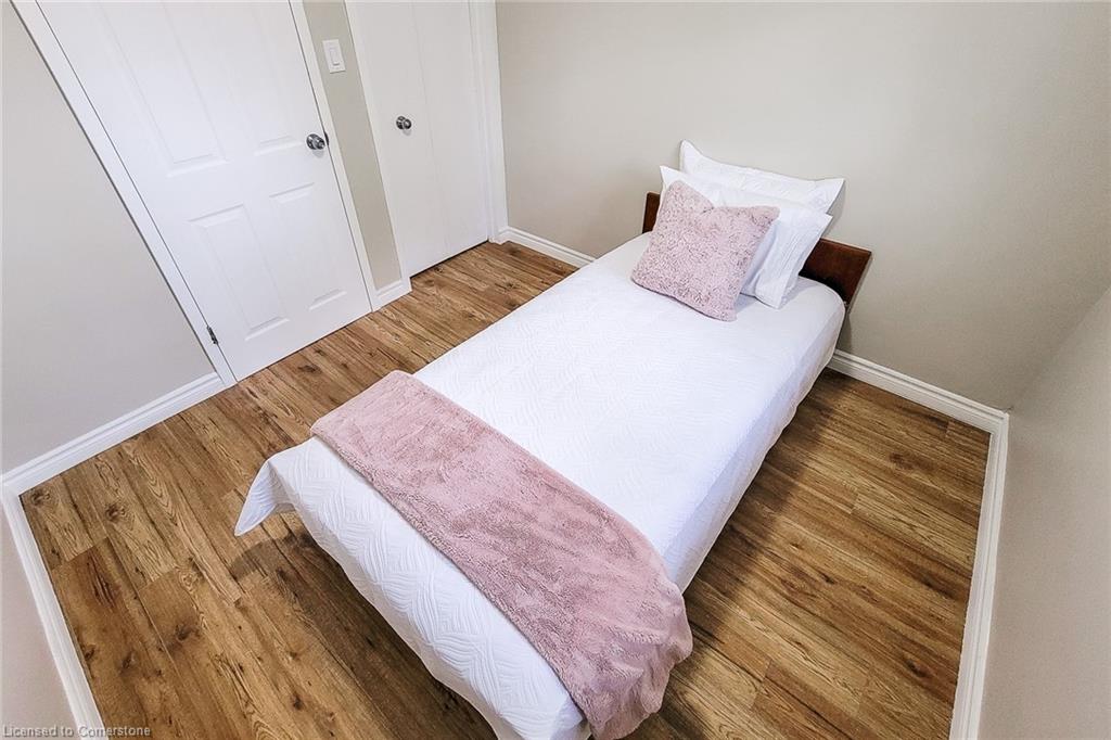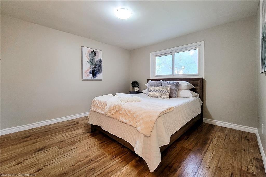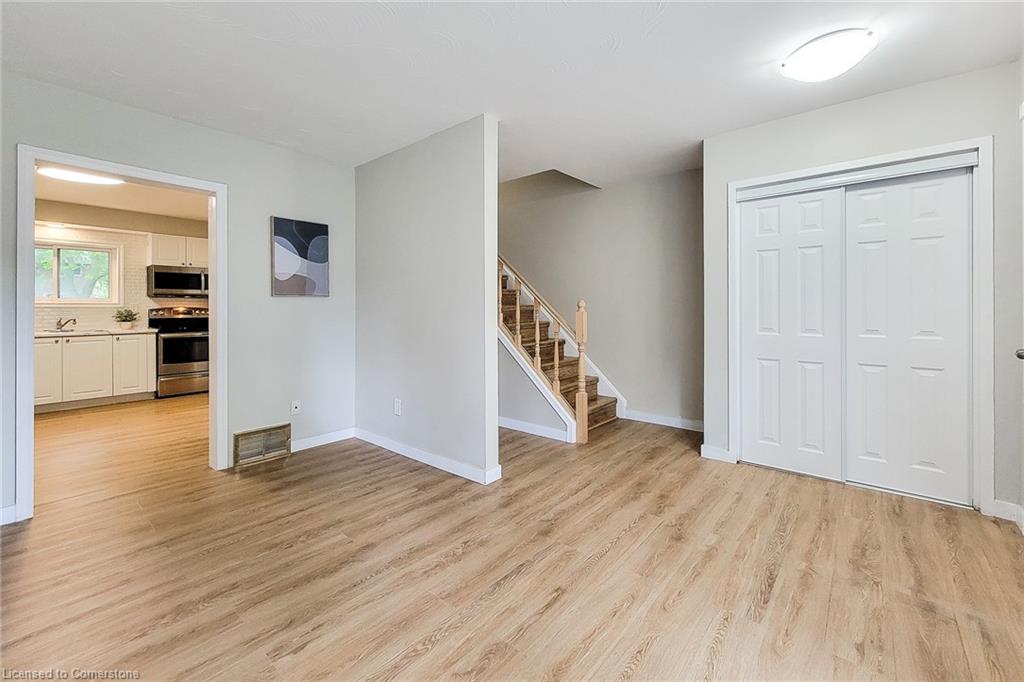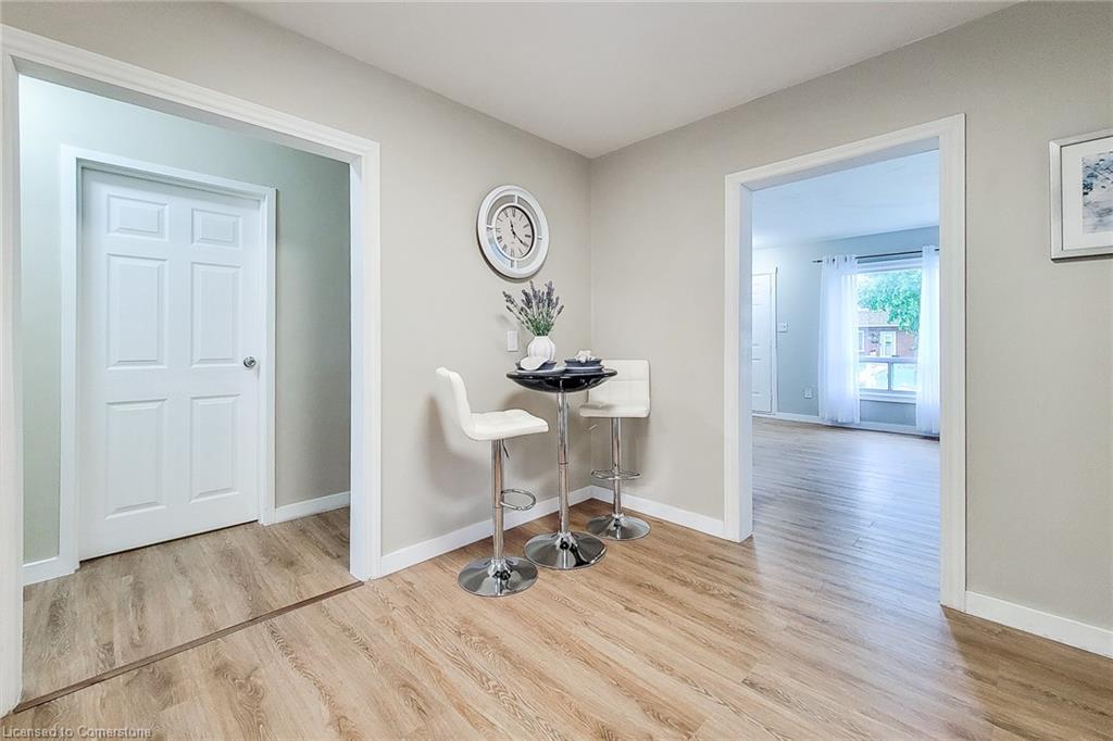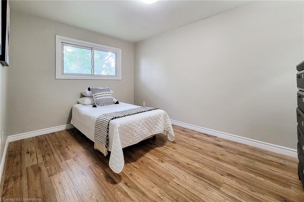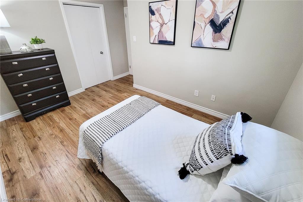 RENOVATED! This gorgeous 3 bedroom, 3-bathroom condo townhouse is ideal for first time buyers looking for MOVE-IN READY. Nothing to do, just move in! Loads of natural light on the main level welcomes you through the living area and into the elegant, white kitchen; its super spacious with beautiful stainless appliances and tons of storage space, large enough for a good-sized kitchen table and 4 chairs. Upstairs you’ll find 3 bedrooms with a fully renovated 3-piece main bathroom. More to come in the finished basement, which features a secondary studio suite with a mini kitchenette and 3-piece bathroom, perfect for guests, friends, or family to stay! Rounding out the home is the lovely private backyard, fully fenced with a lockable gate and an assigned parking space in the parking lot. The 2025 renovation includes new paint throughout, new wood railing on main staircase, new light fixtures on main and second level, and new drop ceiling and pot lights in basement. In addition, renovated main floor and second floor bathrooms (2023), updated kitchen and new flooring (2022), and new laminate flooring on the second level (2018). Move in and enjoy! In addition to the usuals the condo fee includes water, cable TV, and high-speed internet, a great savings! Ideally located near all amenities. Eastgate Square shopping centre just a few minutes walk, close to restaurants, schools, and parks, and just a few minutes driving to Red Hill Valley Parkway for easy commuting.