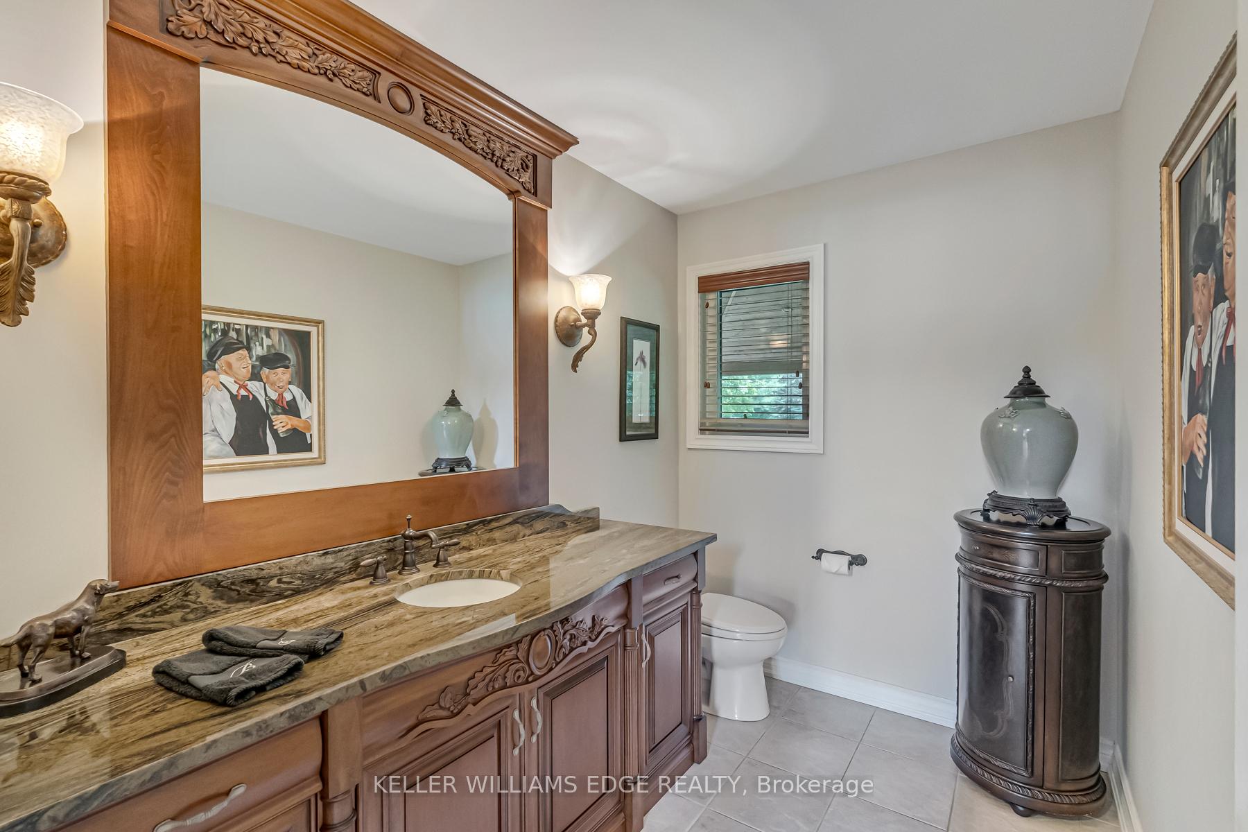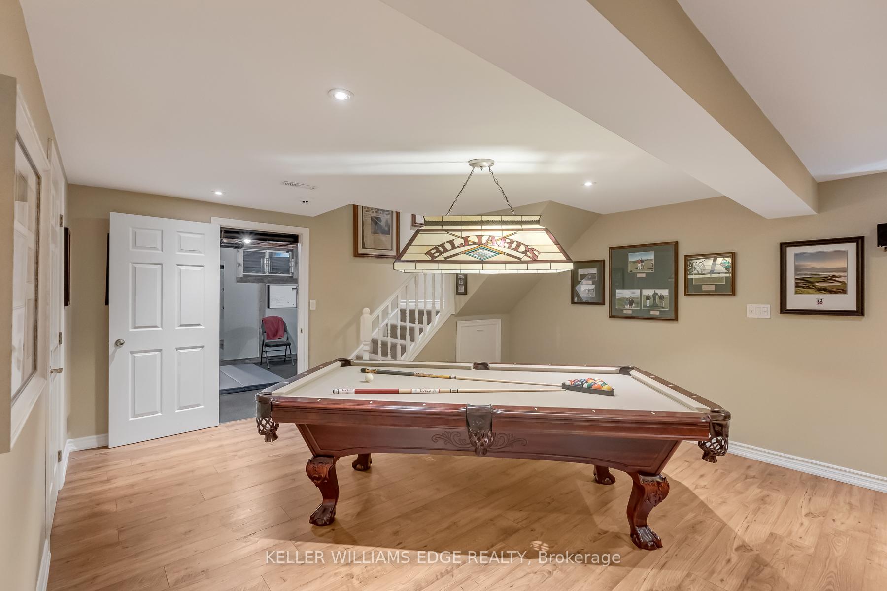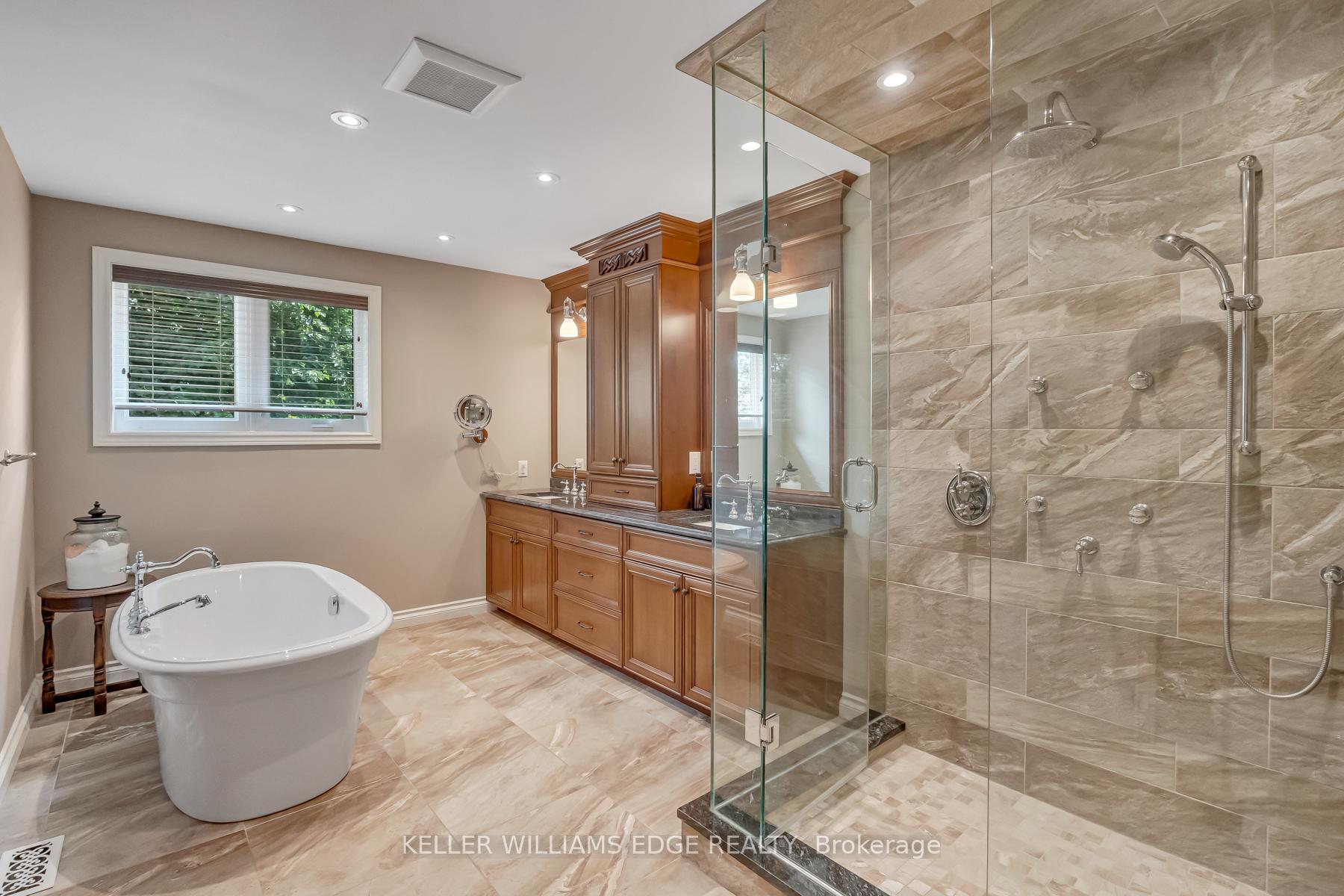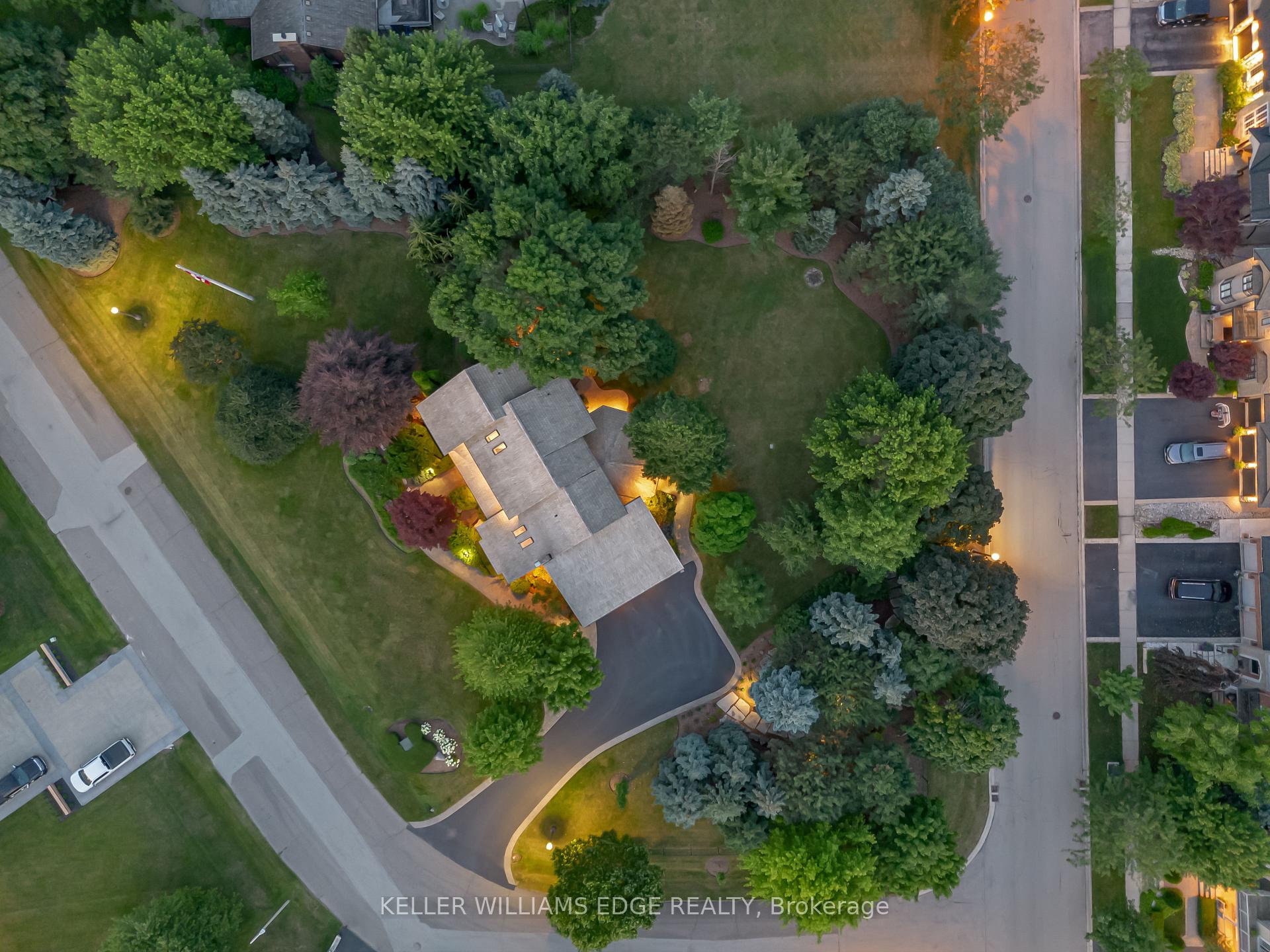 LAKESIDE LUXURY – One-Acre Estate Lot. Discover refined living in Stoney Creek’s most coveted executive lakeside enclave. Custom-built w/over 5,400 sq. ft. of total living space, steps from Fifty Point Conservation Area & Marina, across from Lake Ontario. A soaring foyer welcomes you into a home of peaceful sophistication. Chef’s eat-in kitchen is the heart of the home: stainless steel appliances & granite countertops. Imported hardwood floors add warmth & timeless style. Main floor family room impresses w/vaulted ceilings & wood-burning fireplace w/natural brick surround, creating an elevated layout rarely found. Formal dining room, private office, living room, large bathroom, & mudroom w/laundry complete the thoughtfully designed main level. Upstairs, retreat to the expansive master suite w/spa-inspired five-piece ensuite: standalone tub, rejuvenating spa shower, granite finishes, & heated floors. Versatile lower level offers a remarkable recreation space w/pool table, mounted flat-screen TV, integrated sound system, gym, & ample storage areas, w/potential for an in-law suite. Enjoy outdoor dining beneath the covered portico, surrounded by mature, unique trees, professionally landscaped gardens, & a fully irrigated property. Space abounds w/potential for further customization to create your dream outdoor oasis. The grounds are a masterpiece of nature w/private sitting areas & a fire pit. The home has been continuously upgraded inside and out. 2025 updates include: new roof (50-year transferable warranty), skylights, dual sump system, renovated 3-car garage w/epoxy floors. The 22,000W Generac backup generator is hardwired to power the entire property in the event of a power outage. Minutes to top-tier amenities, QEW & Toronto/Buffalo airports & is at the gateway to Niagara’s Wine Region. The quiet cul-de-sac location offers the ultimate family-friendly sanctuary. This is more than a home – it’s a lifestyle of peace, privacy, & captivating views of Lake Ontario.
