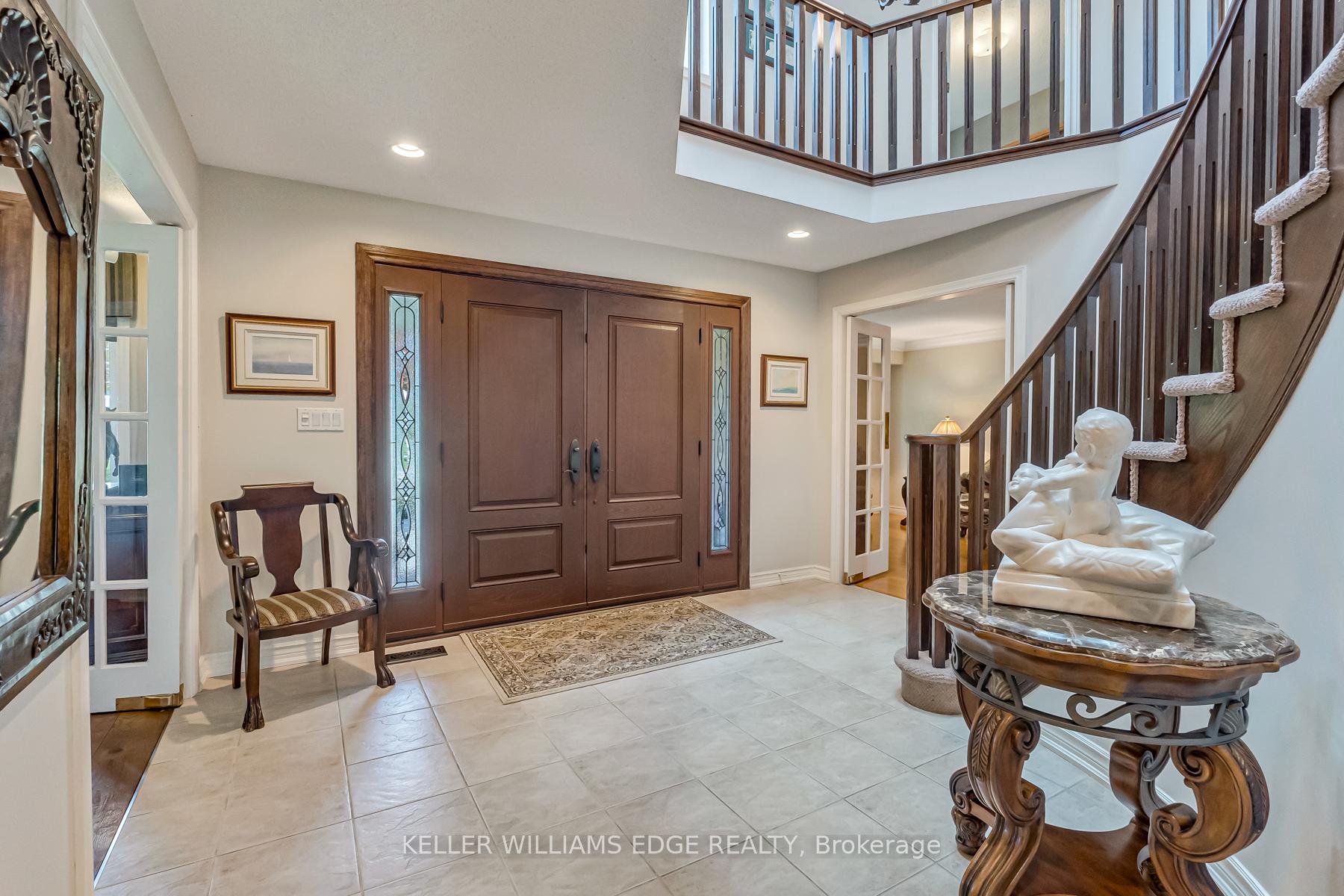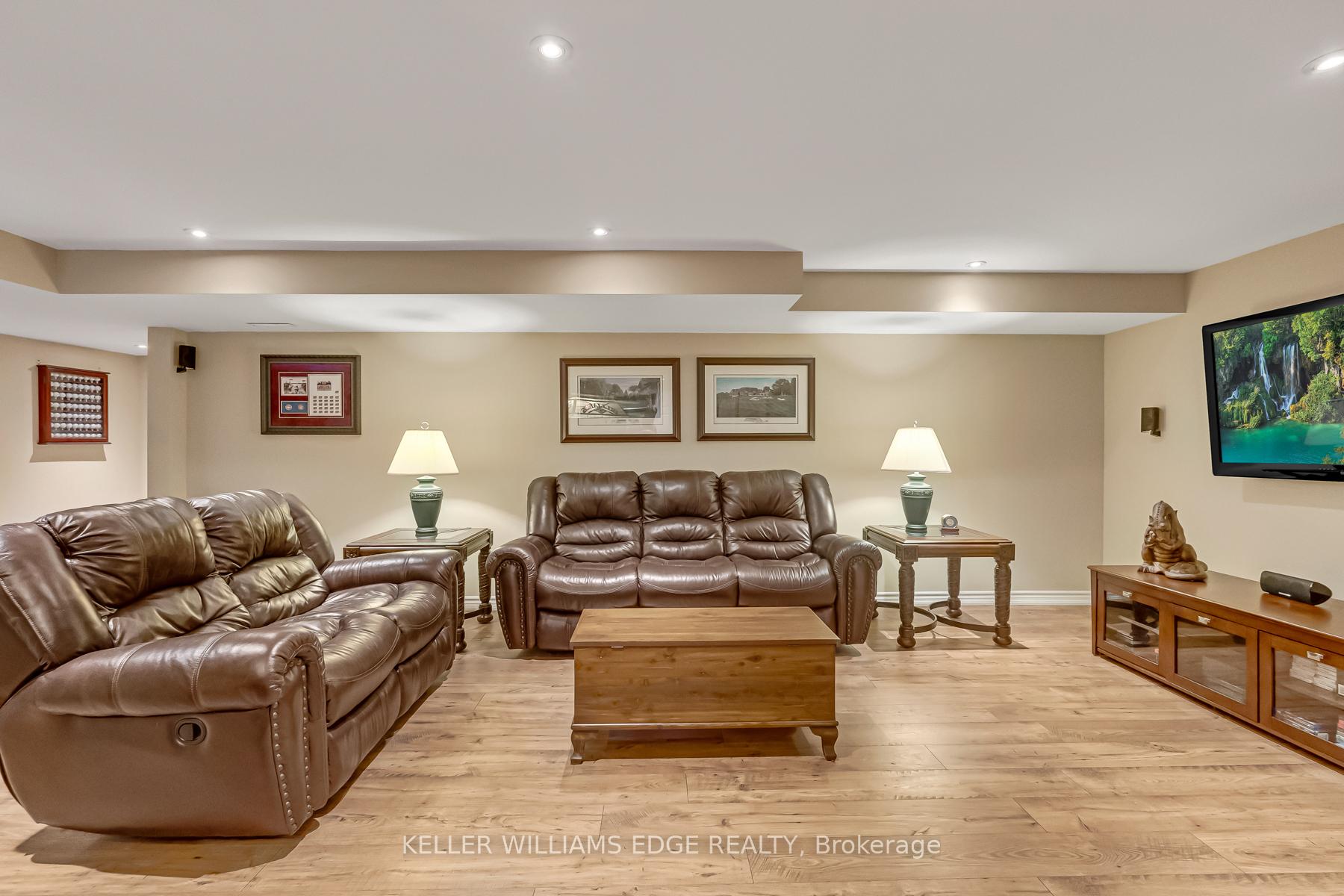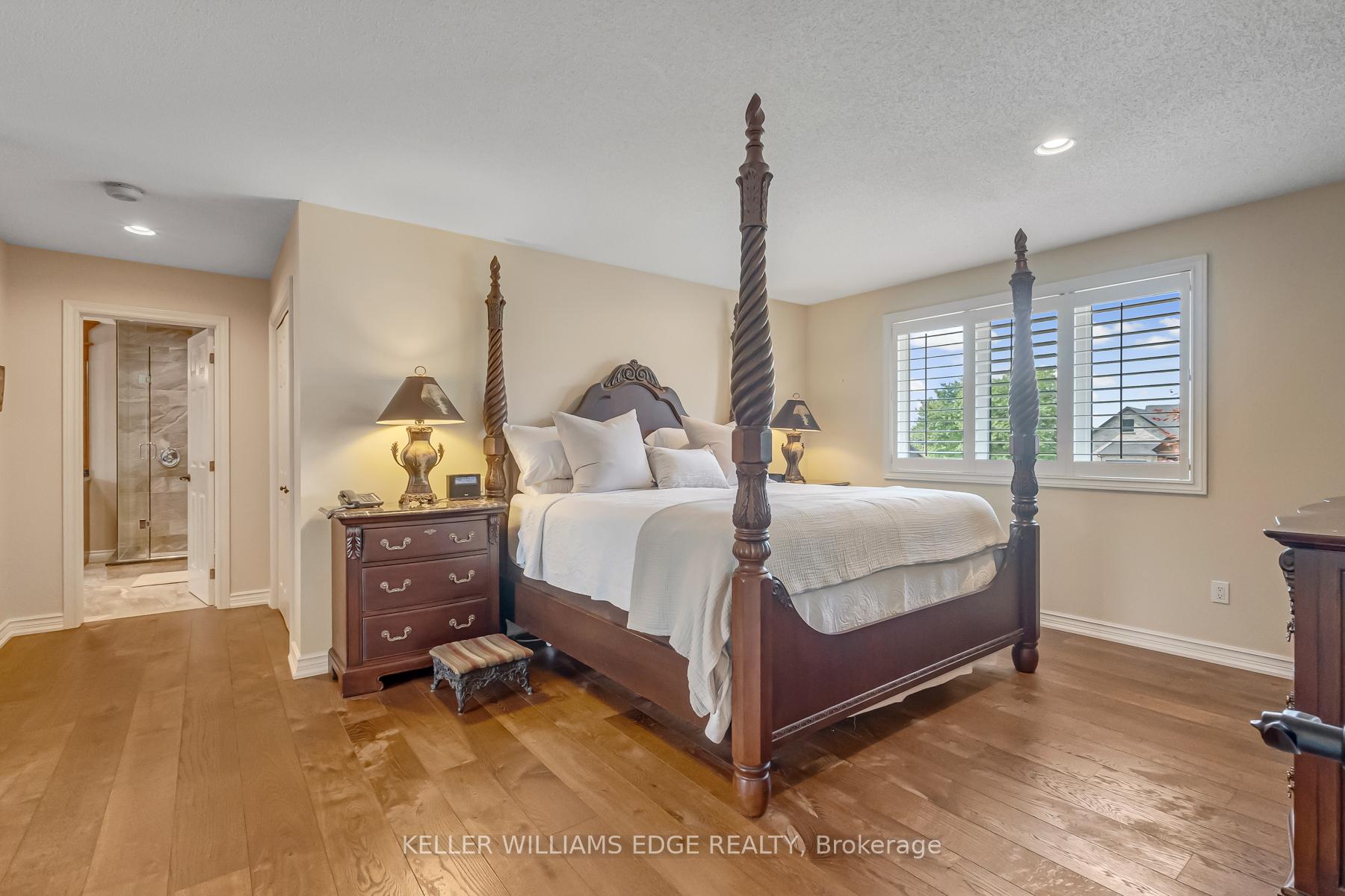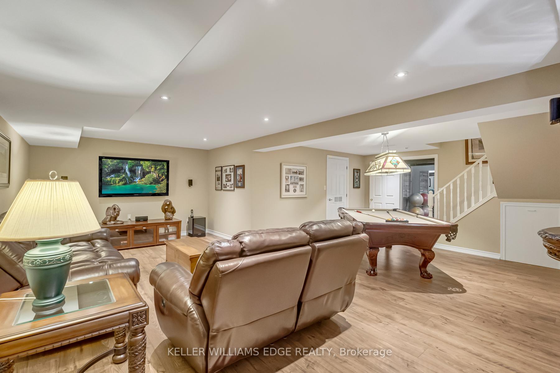 LAKESIDE LUXURY – One-Acre Estate Lot. Discover refined living in Stoney Creek’s most coveted executive lakeside enclave. Custom-built w/over 5,400 sq. ft. of total living space, steps from Fifty Point Conservation Area & Marina, across from Lake Ontario. A soaring foyer welcomes you into a home of peaceful sophistication. Chef’s eat-in kitchen is the heart of the home: stainless steel appliances & granite countertops. Imported hardwood floors add warmth & timeless style. Main floor family room impresses w/vaulted ceilings & wood-burning fireplace w/natural brick surround, creating an elevated layout rarely found. Formal dining room, private office, living room, large bathroom, & mudroom w/laundry complete the thoughtfully designed main level. Upstairs, retreat to the expansive master suite w/spa-inspired five-piece ensuite: standalone tub, rejuvenating spa shower, granite finishes, & heated floors. Versatile lower level offers a remarkable recreation space w/pool table, mounted flat-screen TV, integrated sound system, gym, & ample storage areas, w/potential for an in-law suite. Enjoy outdoor dining beneath the covered portico, surrounded by mature, unique trees, professionally landscaped gardens, & a fully irrigated property. Space abounds w/potential for further customization to create your dream outdoor oasis. The grounds are a masterpiece of nature w/private sitting areas & a fire pit. The home has been continuously upgraded inside and out. 2025 updates include: new roof (50-year transferable warranty), skylights, dual sump system, renovated 3-car garage w/epoxy floors. The 22,000W Generac backup generator is hardwired to power the entire property in the event of a power outage. Minutes to top-tier amenities, QEW & Toronto/Buffalo airports & is at the gateway to Niagara’s Wine Region. The quiet cul-de-sac location offers the ultimate family-friendly sanctuary. This is more than a home – it’s a lifestyle of peace, privacy, & captivating views of Lake Ontario.
