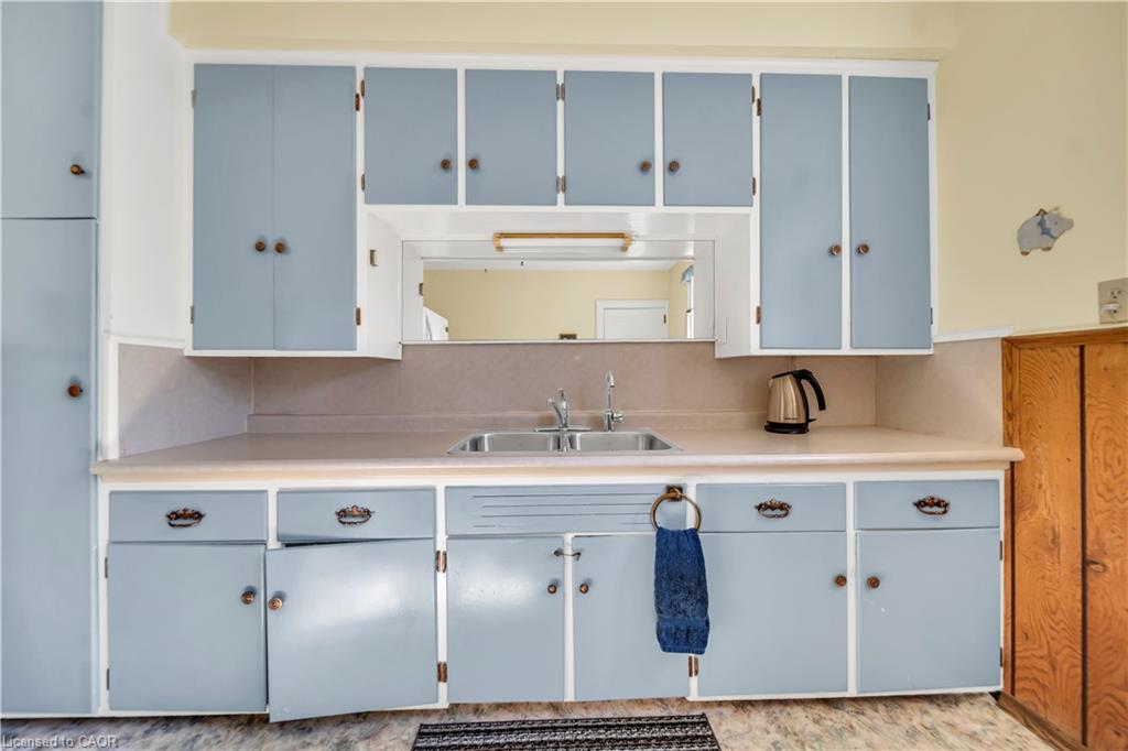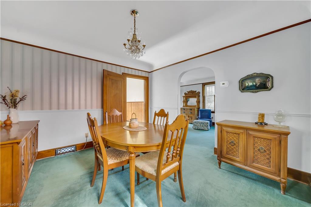 Welcome to 8 Mary Street, a charming 3-bedroom, 2-bath brick home tucked away on a tree-lined street in the heart of Kitchener. With timeless curb appeal, a private driveway, and detached garage, this property offers both character and convenience. Inside, you’ll be greeted by spacious principal rooms with warm wood trim, large windows, and plenty of natural light. The living room creates a welcoming atmosphere, while the formal dining room is ideal for family gatherings and entertaining. The kitchen, with its retro-style cabinetry and functional layout, provides a unique opportunity to update and design to your personal taste. Upstairs you’ll find three comfortable bedrooms, including a generous primary bedroom, along with a full bathroom featuring a double vanity and ample storage. The finished basement offers additional living space with a recreation room, laundry area, and plenty of storage options, perfect for adapting to your lifestyle needs. Step outside to enjoy the private backyard shaded by mature trees. This peaceful outdoor space is perfect for gardening, relaxing, or entertaining friends and family. Located close to schools, parks, shopping, restaurants, and Kitchener’s vibrant downtown, this home is ideally situated for both convenience and community living. Whether you’re a first-time buyer, growing family, or someone with an eye for restoring character homes, 8 Mary Street presents an incredible opportunity.