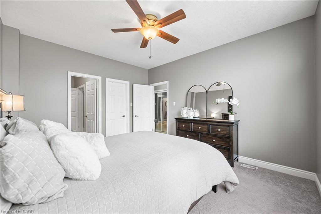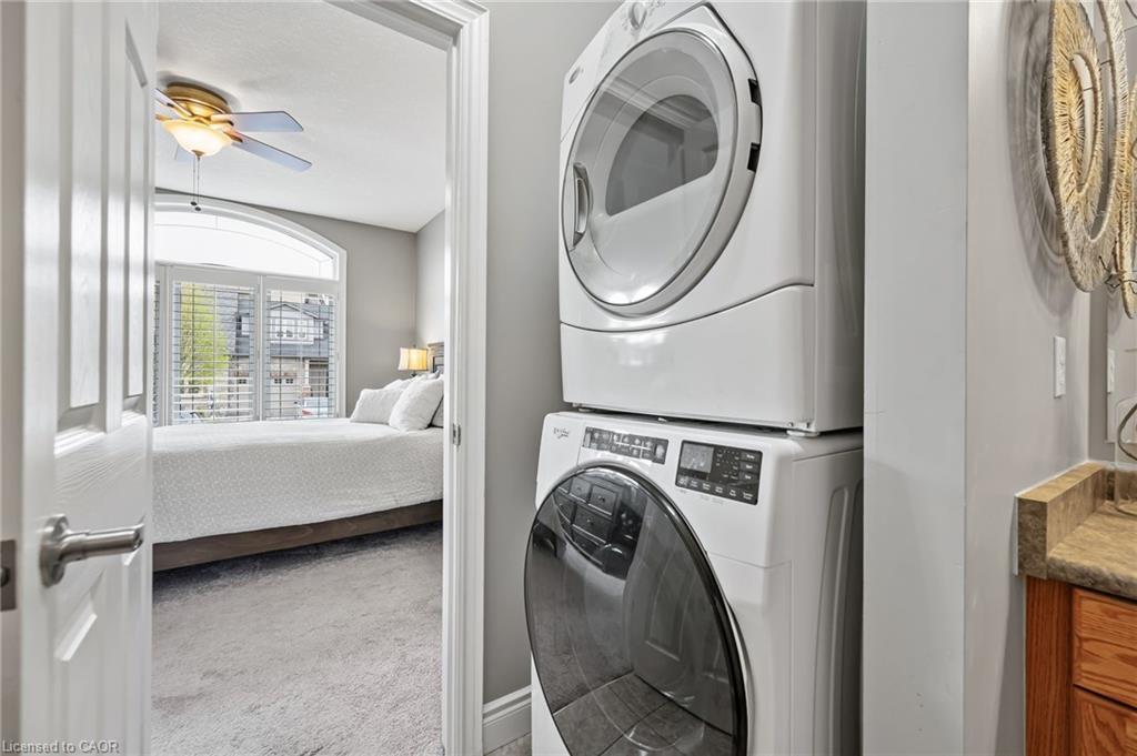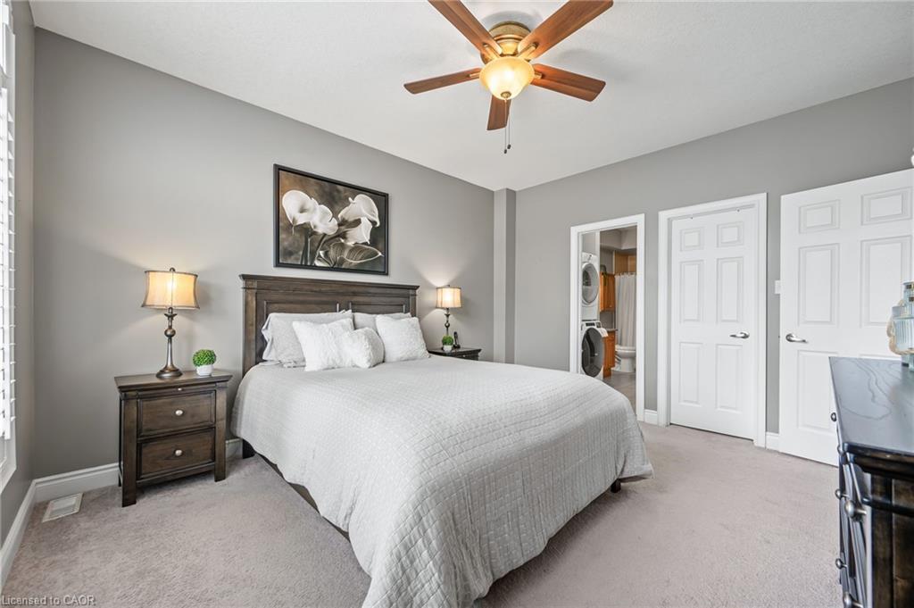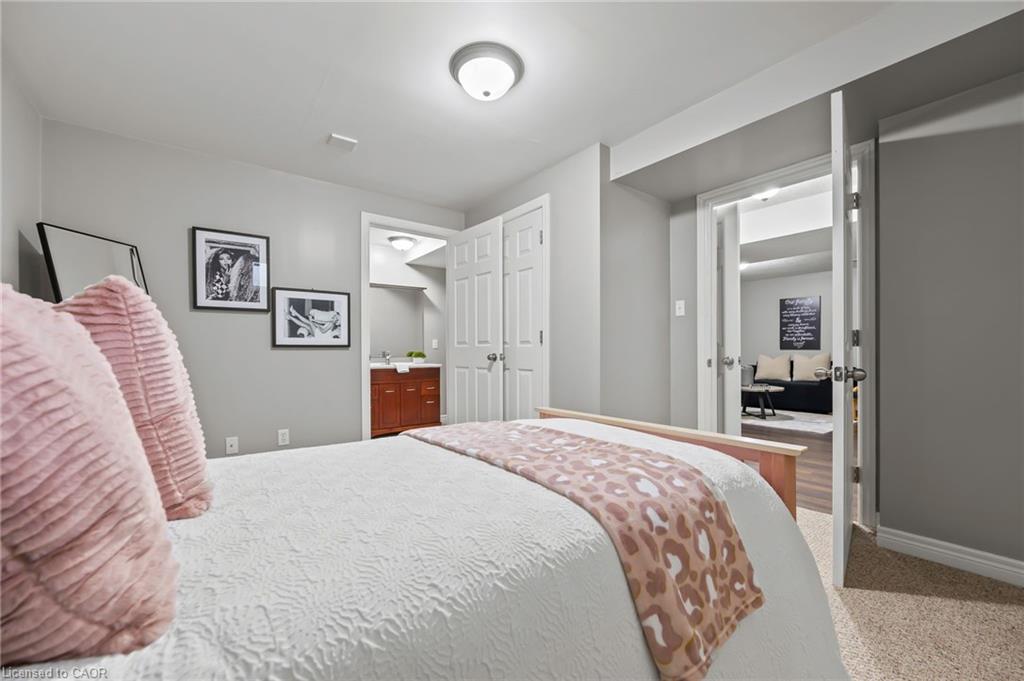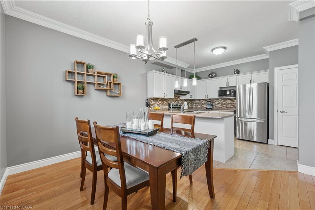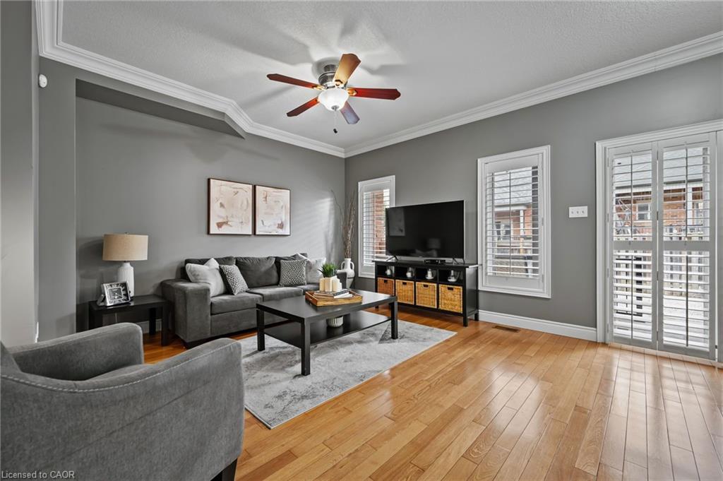 FREEHOLD BUNGALOFT TOWNHOME IN PRIME NORTH GALT LOCATION! Welcome to this beautifully maintained executive bungaloft townhome, ideally suited for adult lifestyle living and located in a highly sought-after neighborhood. This property features a range of high-end upgrades, including 9-foot ceilings, elegant crown moulding, rich hardwood flooring, and California shutters throughout. The open-concept main floor is thoughtfully designed for comfort and functionality. It features a spacious primary bedroom, a 4-piece bathroom with convenient in-suite laundry, a bright living room, kitchen with optimized space, and a dining area with walkout access to the backyard. Upstairs, you’ll find a generously sized bedroom with double closets, a 4-piece bathroom, and a cozy loft space perfect for a home office or reading nook. The fully finished basement expands your living space with an additional bedroom, a 3-piece ensuite, and a comfortable family room, ideal for guests or an in-law setup. Enjoy outdoor living in the low-maintenance, fully fenced yard, complete with a covered porch and a gazebo. This home is conveniently located within walking distance to all essential amenities, including shopping, restaurants, and quick highway access.