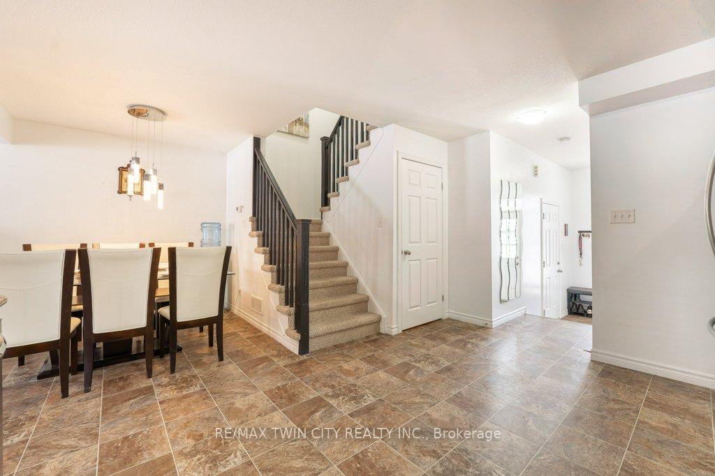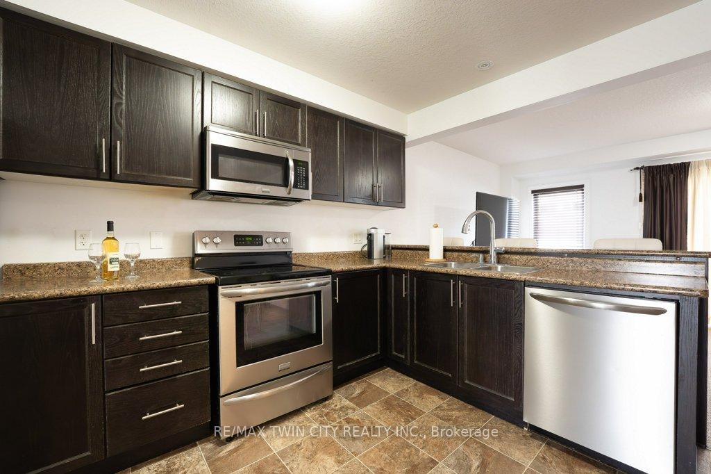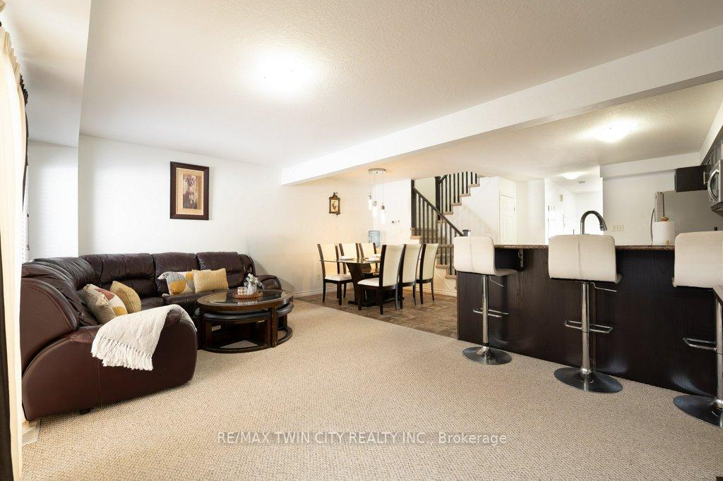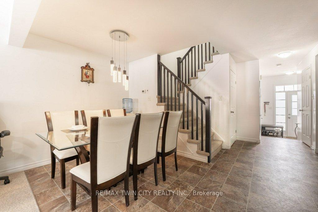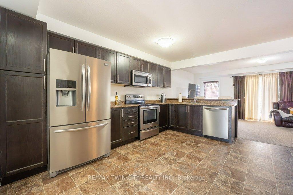 Beautiful freehold townhouse located in the desirable Huron area. Offering 3 bedrooms and 2.5 bathrooms with a bright open concept main floor. Welcoming foyer with convenient access to the garage. Spacious kitchen featuring ample counter space, pantry, breakfast bar, and stainless steel appliances, overlooking the large living room with walk-out to a private deck, perfect for outdoor entertaining and summer BBQs. The second floor offers generously sized bedrooms and laundry room. The primary bedroom features a functional layout with space for a home office, a walk in closet, and a private ensuite bathroom. The unfinished basement with 3 piece bathroom rough-in provides excellent potential for future development. Extended concrete driveway allows parking for up to 3 vehicles. Prime location close to schools, parks, shopping, banks, restaurants, coffee shops, and minutes to conestoga College Highway 401.