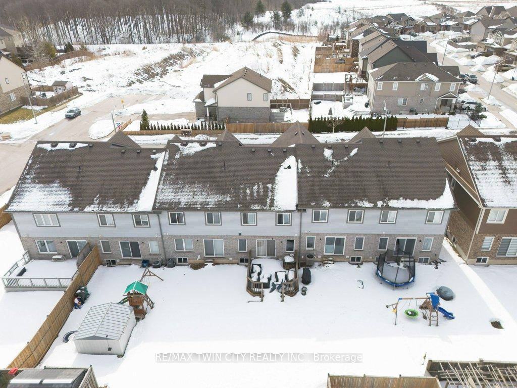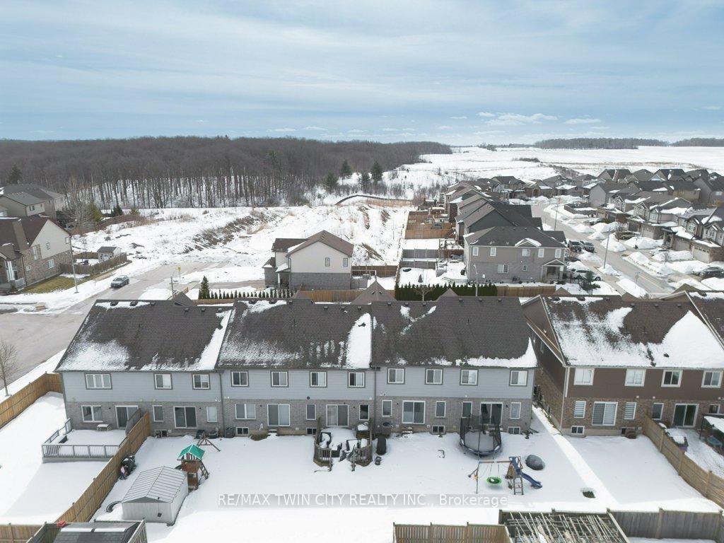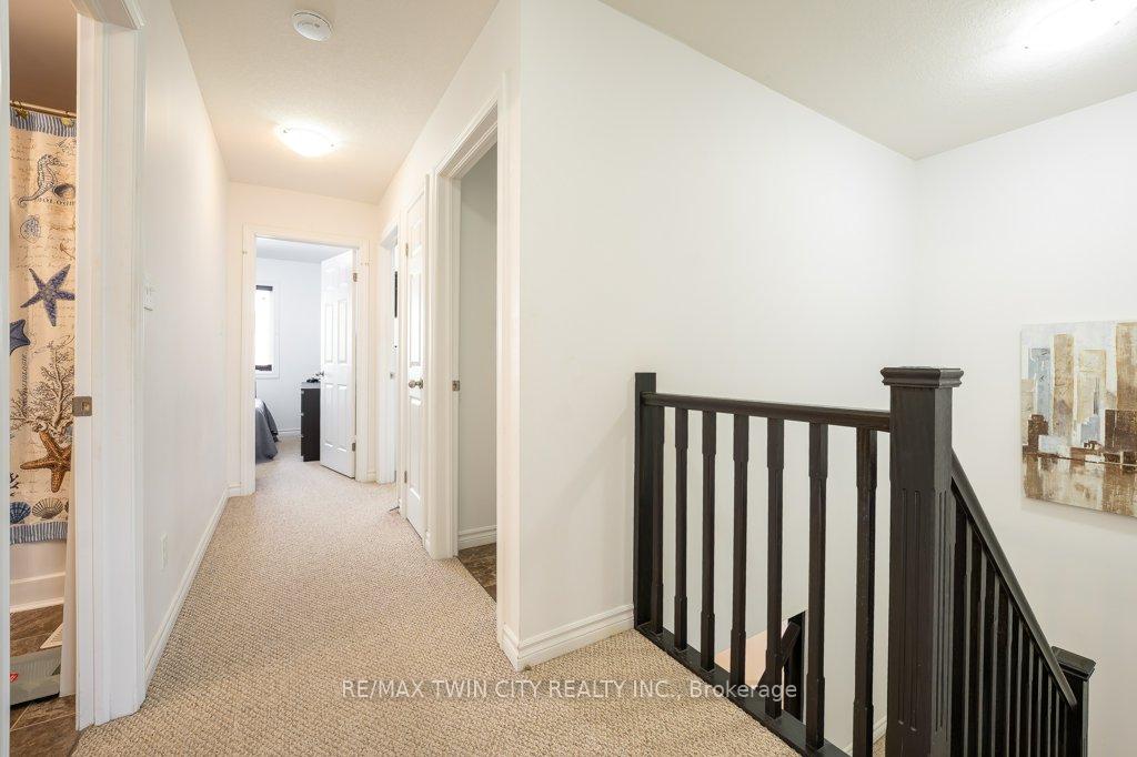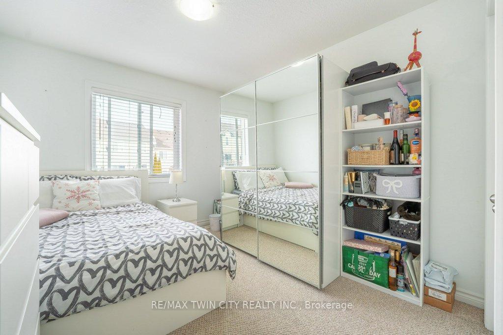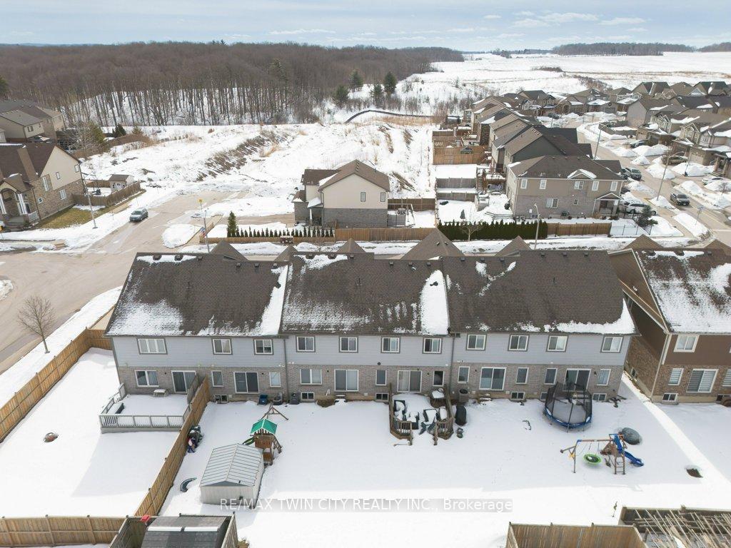 Beautiful freehold townhouse located in the desirable Huron area. Offering 3 bedrooms and 2.5 bathrooms with a bright open concept main floor. Welcoming foyer with convenient access to the garage. Spacious kitchen featuring ample counter space, pantry, breakfast bar, and stainless steel appliances, overlooking the large living room with walk-out to a private deck, perfect for outdoor entertaining and summer BBQs. The second floor offers generously sized bedrooms and laundry room. The primary bedroom features a functional layout with space for a home office, a walk in closet, and a private ensuite bathroom. The unfinished basement with 3 piece bathroom rough-in provides excellent potential for future development. Extended concrete driveway allows parking for up to 3 vehicles. Prime location close to schools, parks, shopping, banks, restaurants, coffee shops, and minutes to conestoga College Highway 401.