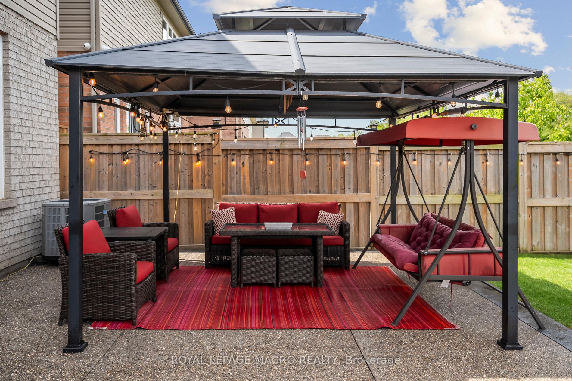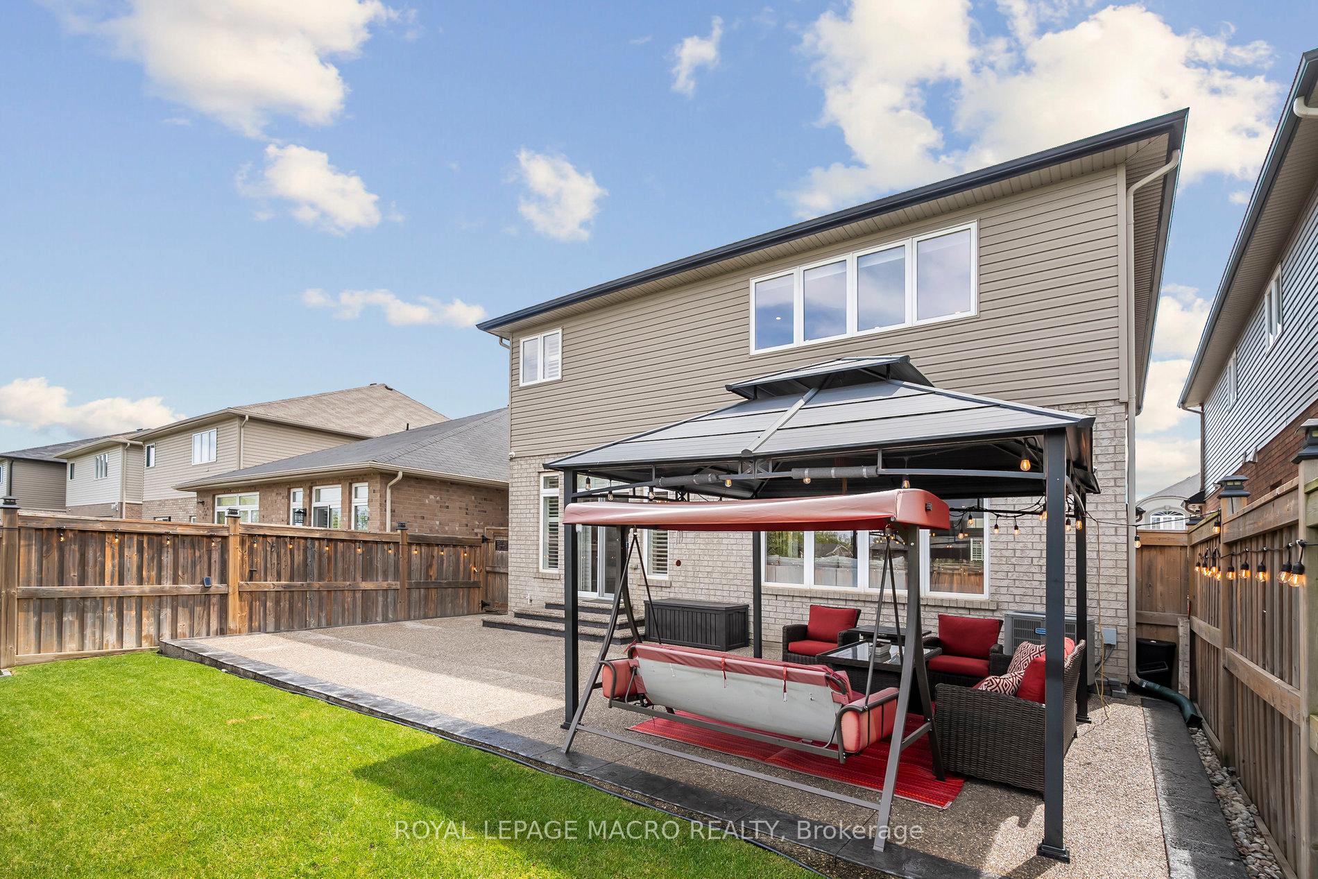 2842 sq ft above grade on a 40 ft x 109 ft lot. Stunning Four-Bedroom Detached Home in a well-desired neighbourhood, Heritage Green, with Modern Amenities. Discover the perfect blend of comfort and elegance in this beautiful detached house. This home features ample living space, including four spacious bedrooms, a loft, an office/library, and 2.5 bathrooms. The versatile oversized loft adds to the appeal of the elegant interior, which boasts 9-foot ceilings and gleaming engineered hardwood flooring on the main level, complemented by an oak staircase. The gourmet kitchen is a chef’s dream, upgraded with quartz countertops, a center island, and beautiful cabinetry. The convenient layout features a main-level office, as well as a spacious family room, dining, and a Walkout to a patio. There are four Bedrooms. The Primary bedroom features a walk-in closet and a four-piece en-suite bathroom with an additional soaking bathtub. Convenience 2nd floor laundry, A beautiful backyard with enhanced privacy. Beautiful concrete patio with a large gazebo, ideal for outdoor activities. The gas line is hooked up for the outdoor BBQ. Double-car garage with inside entry, front yard driveway parking for four cars, and no sidewalk. Proximity to schools, parks, shopping, transit, and the GO station, as well as the QEW and LINC. Fully Furnished Option Available- Move-in Ready! Furnishings can be included for an additional cost.