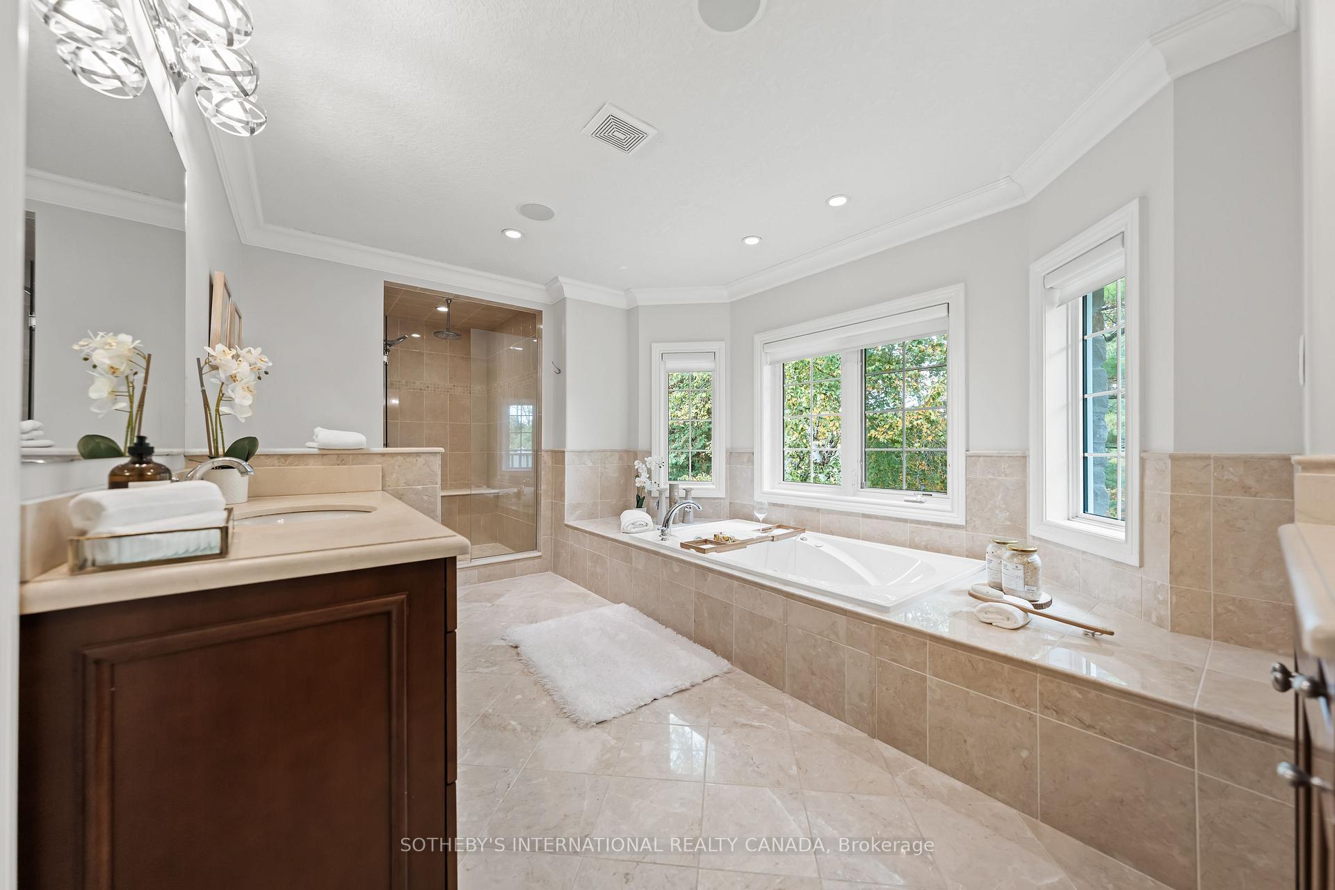 Welcome to 80 Cedarbrook Court, where secluded luxury meets modern convenience. Nestled in North Galts’ most prestigious neighbourhood, this exquisite home offers the perfect balance of privacy and proximity. Set on a quiet court surrounded by mature, old-growth trees, the property feels like a private retreat while remaining just minutes from major amenities. This timeless residence offers nearly 5000 SF of total living space, 5 beds, 5 baths and resort-style amenities including an in-ground salt water pool. Inside, modern updates and refined finishes elevate every space, blending contemporary luxury with timeless comfort. From the soaring 10 ft ceilings to the chef inspired kitchen, this home features a functional floor plan with versatility- leaving this a one-of-a-kind property for those seeking space, serenity and style. This home features a beautiful primary bedroom with a luxurious 5+ piece spa-like ensuite, a large walk-in closet and your own balcony overlooking the rear yard. Find 3 additional bedrooms, and 2 stunning bathrooms to complete the upper floor. This home features not 1 but 3 en-suite bedrooms. The finished lower level features flexible living space- perfect for a recreation room, home theatre or an in-law/nanny suite opportunity allowing for a self-contained space with a walk-out. The fully fenced backyard is a true sanctuary-bordering protected green space ensuring complete peace and privacy. Thoughtfully landscaped grounds frame a stunning saltwater pool, tranquil pond, composite deck, and multiple spaces for outdoor living, offering a serene escape. Minutes from Highway 401, schools, parks, public transit, shopping and amenities. This is an exceptional opportunity to enjoy estate-style living with all the benefits of an exclusive, well-connected community.