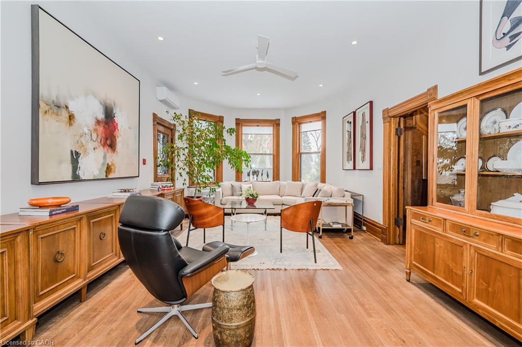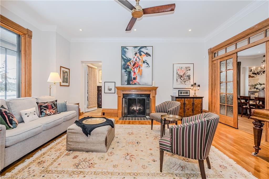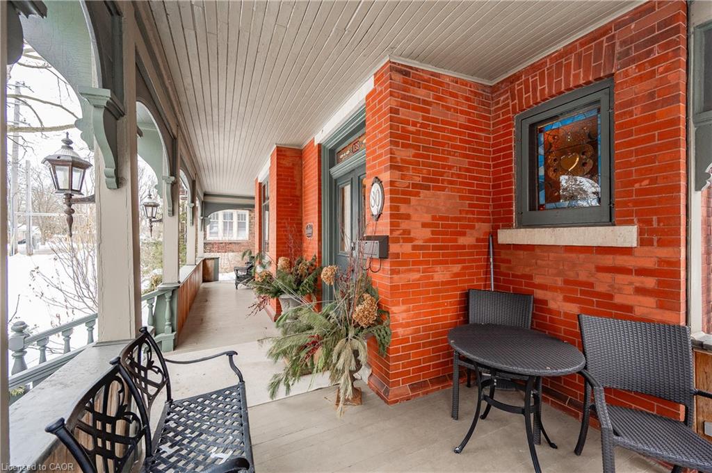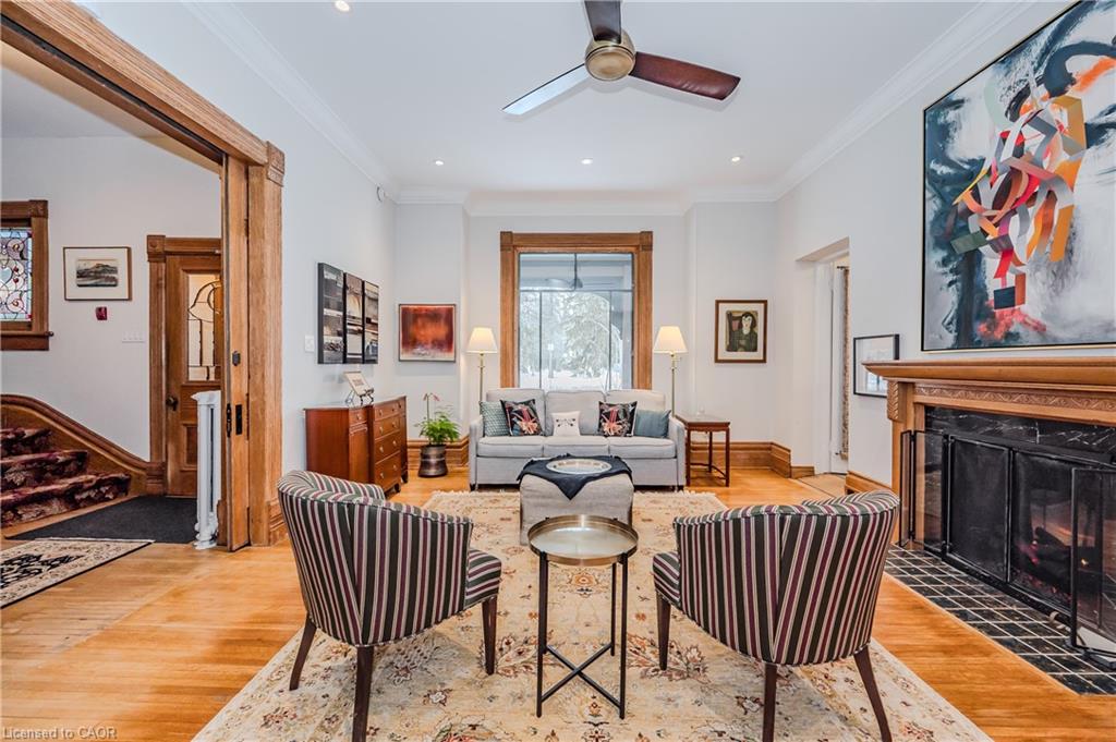 Historical Elegance Meets Modern Versatility. Imagine the possibilities: ARCHITECTURAL HISTORIC CHARM: >Century Home with charming character and modern conveniences >Heritage Victorian with Slate Roof >Stained Glass Windows >Original Burled Oak woodwork (12″ oak baseboards) >Covered Wrap-Around Porch PRIME LOCATION: >Downtown Guelph just a 10 minute walk to shops, dining, library >Across from Exhibition Park with playground, tennis and sports fields >Established Quiet Prestigious Neighbourhood LIFESTYLE FUNCTIONALITY: >Magnificent Family Home >Spacious Multi-Generational Home >Rental Opportunity for Air BnB or Bed and Breakfast >Mortgage Helper >Professional Work/Live Property; suitable for small office space such as legal, accounting, counselling, work at home or home based business >Magnificent living space in family with fireplace or living room LIVING SPACES >Chef Designer Kitchen with High End Appliances >Expansive Entertainment Space >7 Bedrooms and 7 Baths >Heat Pumps (9) and Radiant Heating for Supreme Comfort >Private Oasis backyard with Fish Pond and Covered Pergola IMPORTANT FEATURES: >Professional designed upgrades >Well Maintained >Parking for 7 vehicles >Entire property with lush gardens serviced by irrigation system >All underground wiring >Solid construction with thick walls for climate and noise control