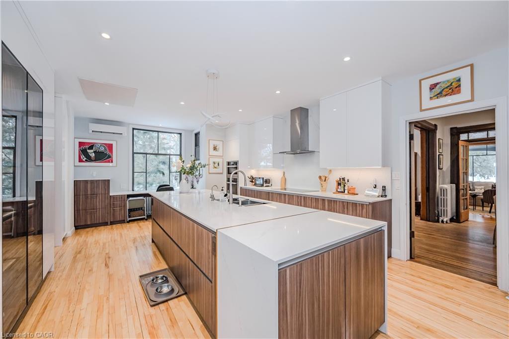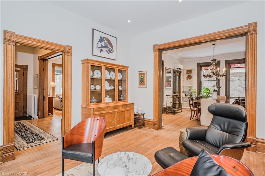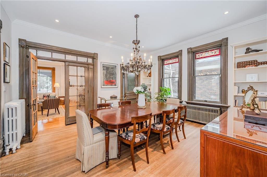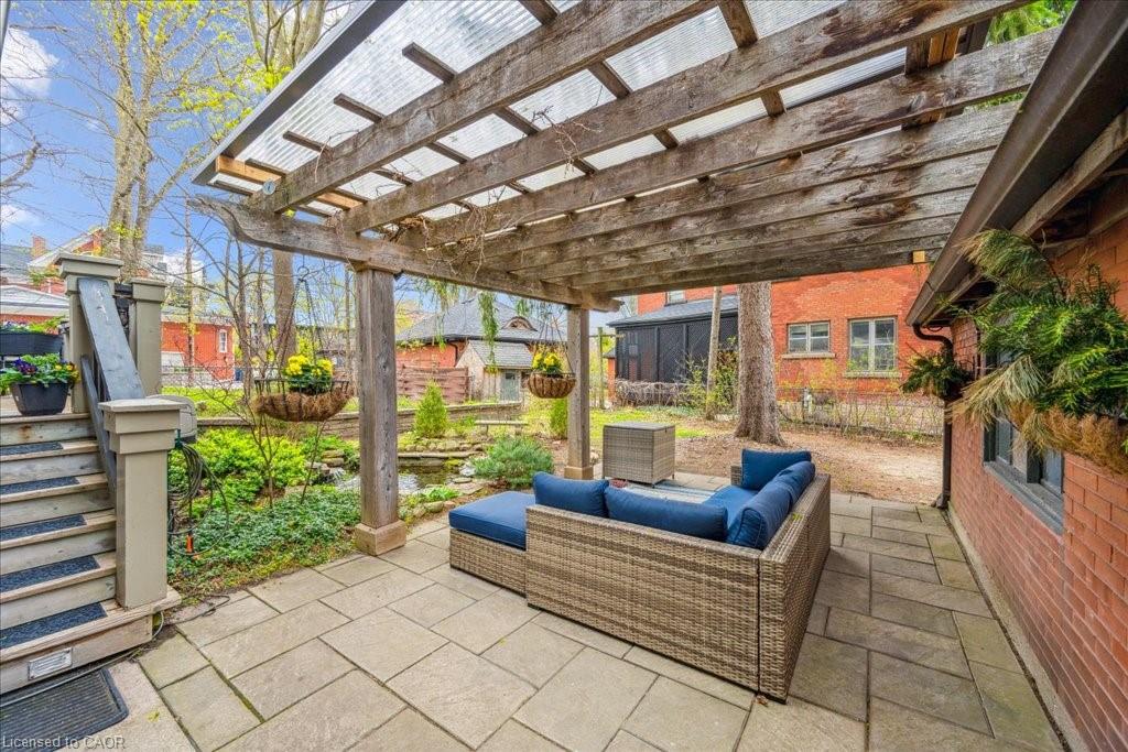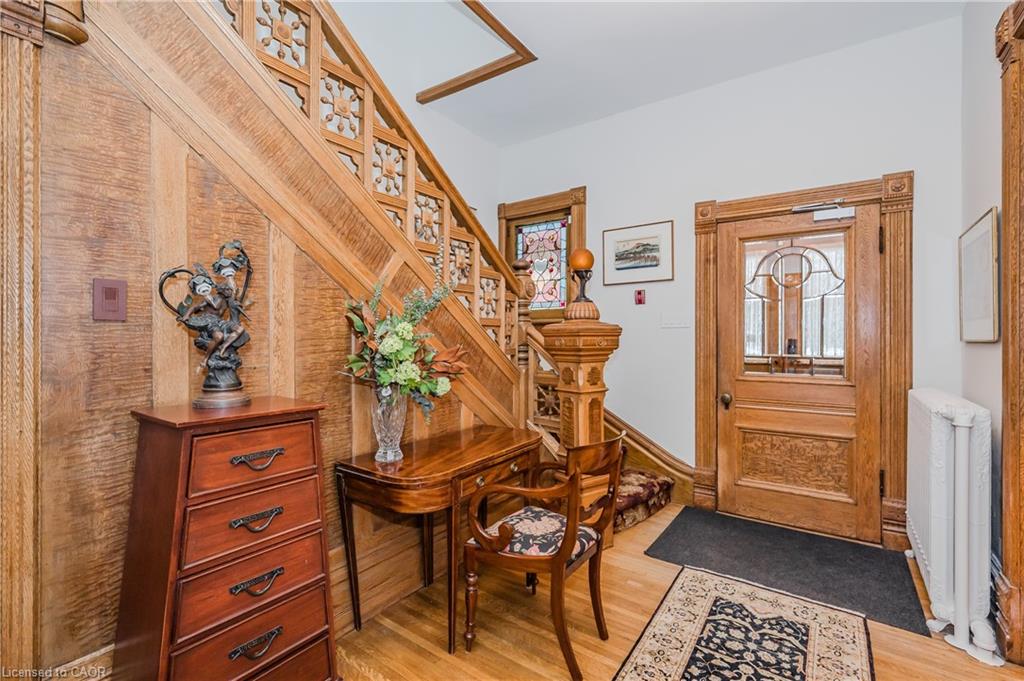Historical Elegance Meets Modern Versatility. Imagine the possibilities: ARCHITECTURAL HISTORIC CHARM: >Century Home with charming character and modern conveniences >Heritage Victorian with Slate Roof >Stained Glass Windows >Original Burled Oak woodwork (12″ oak baseboards) >Covered Wrap-Around Porch PRIME LOCATION: >Downtown Guelph just a 10 minute walk to shops, dining, library >Across from Exhibition Park with playground, tennis and sports fields >Established Quiet Prestigious Neighbourhood LIFESTYLE FUNCTIONALITY: >Magnificent Family Home >Spacious Multi-Generational Home >Rental Opportunity for Air BnB or Bed and Breakfast >Mortgage Helper >Professional Work/Live Property; suitable for small office space such as legal, accounting, counselling, work at home or home based business >Magnificent living space in family with fireplace or living room LIVING SPACES >Chef Designer Kitchen with High End Appliances >Expansive Entertainment Space >7 Bedrooms and 7 Baths >Heat Pumps (9) and Radiant Heating for Supreme Comfort >Private Oasis backyard with Fish Pond and Covered Pergola IMPORTANT FEATURES: >Professional designed upgrades >Well Maintained >Parking for 7 vehicles >Entire property with lush gardens serviced by irrigation system >All underground wiring >Solid construction with thick walls for climate and noise control