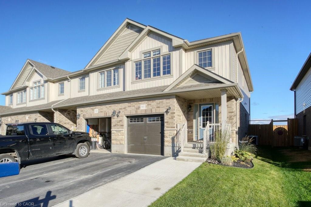 Welcome to 80 Miranda Path —a beautiful and spacious Freehold End-Unit Townhome ,finished top to bottom, located in one of Elmira’s most desirable and family-oriented neighbourhoods. Built in 2019 by Claysam Homes, this property offers nearly approx. 2,000 sq. ft. of finished living space and a bright, open layout ideal for modern living.