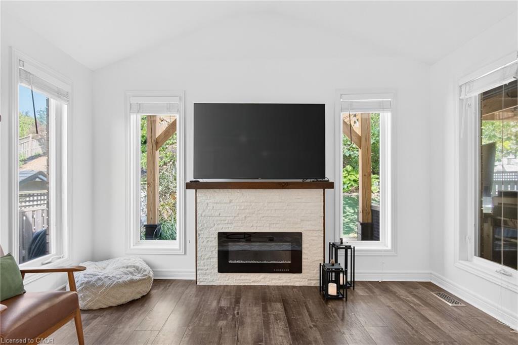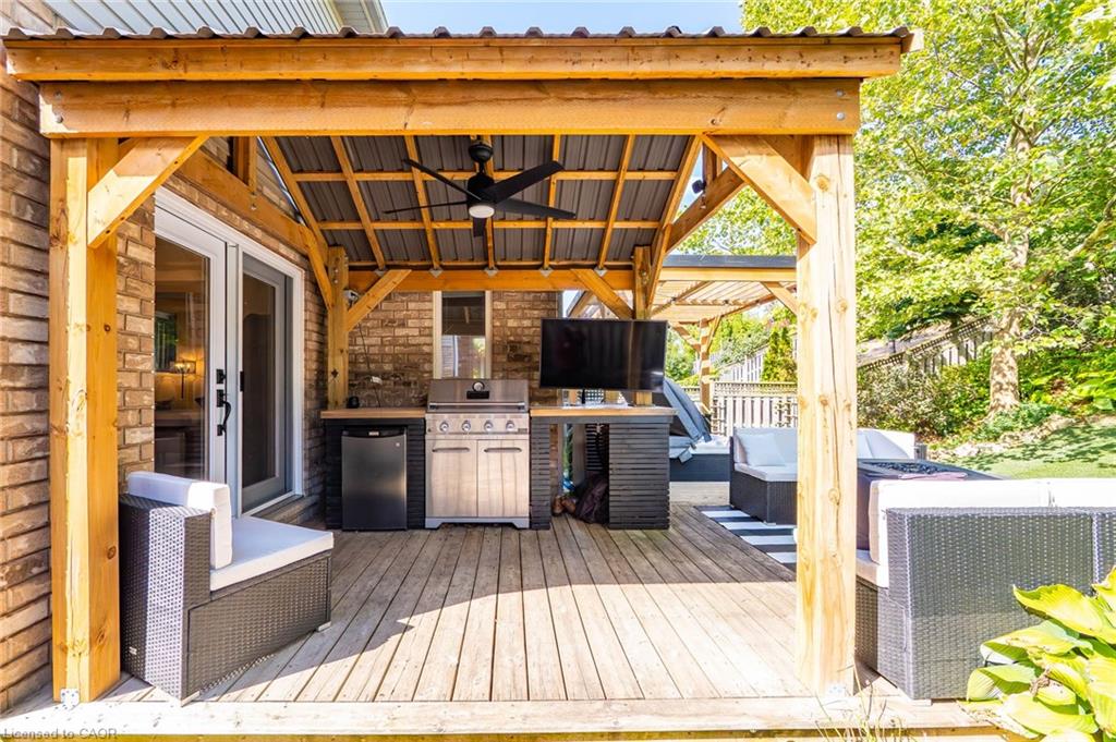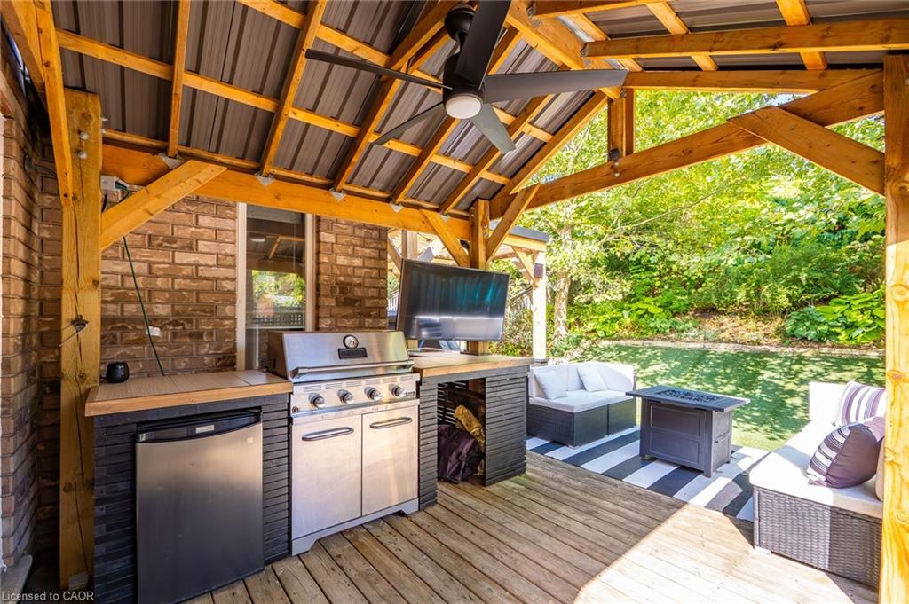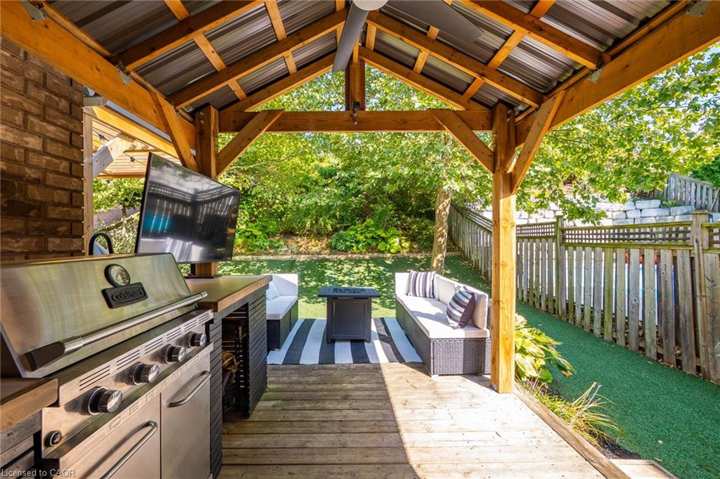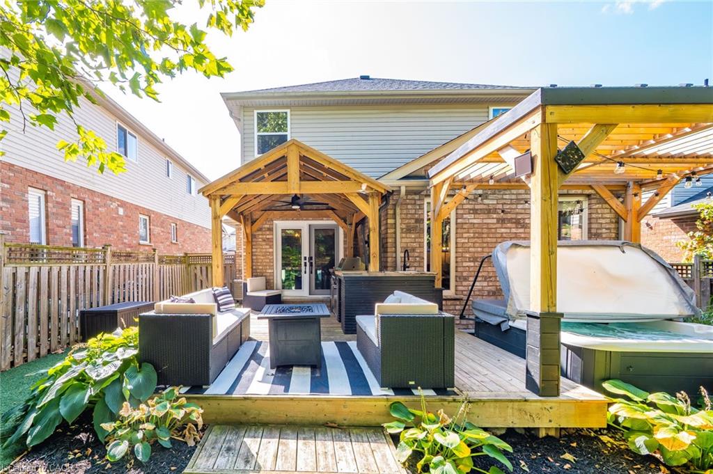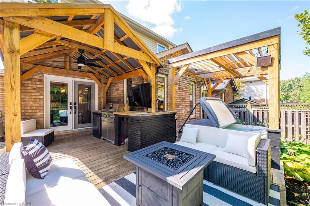 A rare find of a truly move-in-ready home with all the major updates done in the last few years! Move in with piece of mind and ready to enjoy this perfect family home conveniently located in desireable Hespeler- just moments away from HWY 401, amenities and top rated schools in Cambridge . The home is situated on a quiet crescent and greets you with an inviting open concept layout on the main floor with a very generously sized great room featuring a cathedral ceiling and electric fireplace. The updated kitchen comes fully equipped and ready for fixing supper or entertaining friends and family- white quartz countertops, stainless steel appliances including a gas range, tile backsplash and an island with breakfast bar. Upstairs, you will find three generously sized bedrooms and two full bathrooms. The primary suite has french doors, large windows, a walk-in closet and full ensuite bathroom. All the fun can be found in the basement of the home- especially for “Kopites” (Liverpool fans)! This is the perfect space for families to spend time together as well as offers flexible space for a home office or gym as well as potentially a bedroom. The cherry on top? The backyard oasis is equally appealing to both those who enjoy entertaining as well as those who just prefer to retreat from the hustle bustle of everyday life in the privacy of their own yard. The private backyard – with no rear neighbours – features a pergola, low maintenance synthetic grass, deck, an outdoor kitchen with built-in BBQ, fridge and TV under a gazebo, a relaxing hot tub to help melt the day away. Roof (2018), Kitchen (2020), Furnace & A/C (2019), Carpet (2021), Most windows have been updated. Come see why families LOVE calling Skipton Crescent HOME.