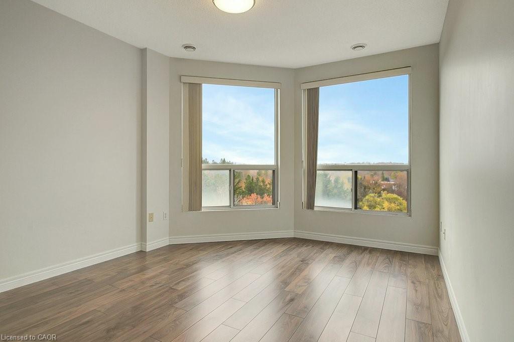 Three FREE months of CONDO FEES! Looking for a spacious condo conveniently located in the Beechwood–University area of Waterloo with underground parking? Set your sights on this charming and well-kept 1,800 sq. ft. 2 bed + den, 2 full bath unit on the 8th floor with private northwesterly views. With its location within minutes away to both universities, Waterloo Park, and Laurel Creek Conservation Area, this condo strikes the perfect balance: close to all the action yet tucked away enough to feel like your own sanctuary. Step inside and you’ll notice the open-concept layout that allows flexibility in how you design your space. There’s a dinette just off the kitchen plus a separate dining area if you’d like two eating areas. The bedrooms are thoughtfully placed on opposite sides of the living room for added privacy, with the primary featuring a walk-in closet and 3-pc ensuite. You’ll also find another full bathroom, a separate laundry area, and convenient in-suite storage. The condo is carpet-free, filled with natural light, and features a cozy gas fireplace in the living area. The balcony is a highlight, overlooking a serene creek and offering a real sense of privacy and retreat. Residents enjoy a warm community atmosphere, with controlled entry, underground parking (space #25), a spacious storage locker, and access to excellent amenities including a lounge, library, mailroom, exercise area, and a furnished guest suite with a full bathroom available for rent. Please take a moment to review the marketing video, 360-degree photography and other marketing content. Some photos are virtually staged. Seller will pay the buyer’s first three months of condo fees upon a successful closing. Flexible possession available.