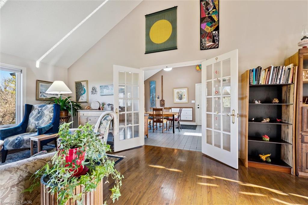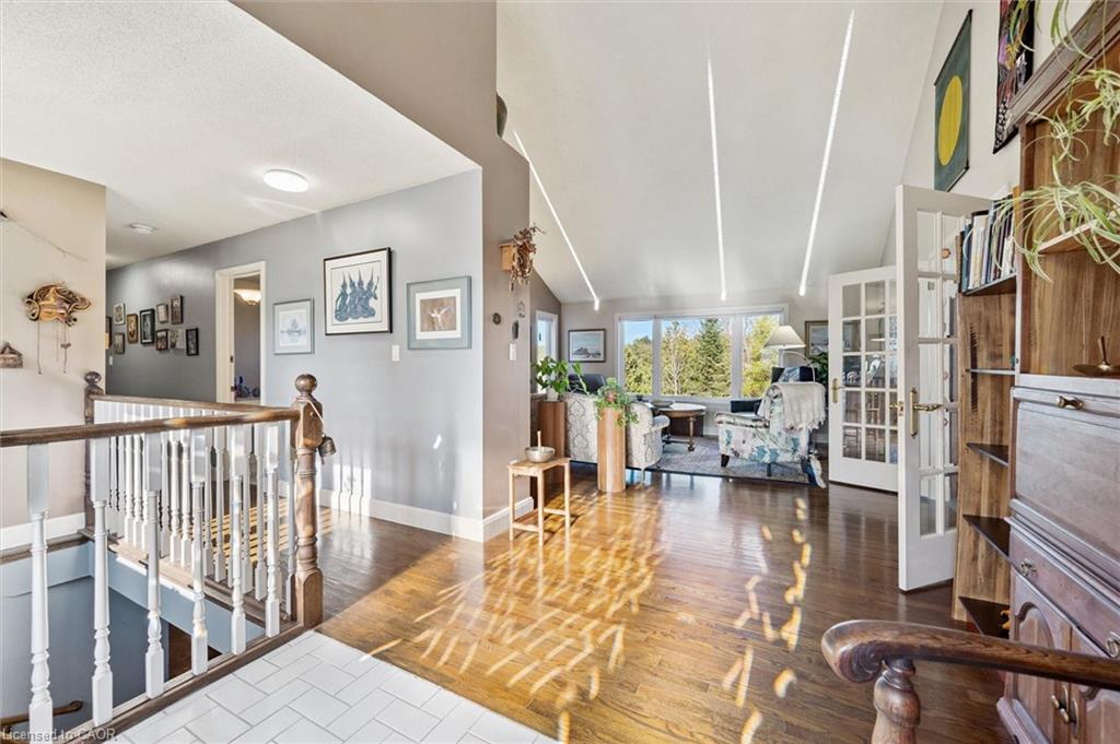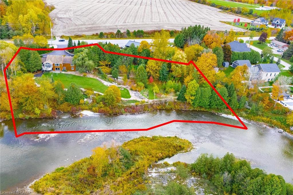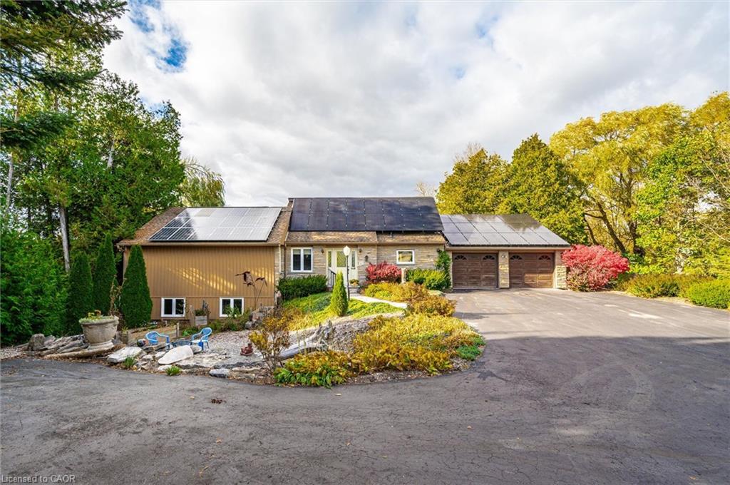 Grand River Paradise! Over 400 feet of arguably the nicest river frontage on the Grand. Your very own 2.2+ acre riverside park. This spectacular property has been enjoyed and loved for decades by the current owners. A family sanctuary where the kids (and grandkids) have enjoyed many nature, art and music lessons. Such a beautiful and creative setting. Now comes the bittersweet time for their next chapter – and the home is ready for a new family and new memories. The home itself offers over 2,750 square feet of living space including lower walk out level. (There is a separate 500 square foot workshop on lower level as well.) A total of 5 bedrooms and 3 bathrooms. A very unique layout that is perfect for family gatherings. (I should note this property would also be great for MULTI-GENERATIONAL living.) Far too many features to list here – but we have to mention all the large windows to enjoy the river and outside nature show. The vaulted ceiling makes the home feel even more spacious. Sunroom off the kitchen. Natural gas fireplace on lower level. Geothermal heating/cooling. Rooftop solar panels. Two car garage plus lots of extra parking space outside should you have an RV. There is a convenient large storage area at the rear of the home too. You will certainly fall in love with this place as you walk the property. Several species of trees (including fruit trees), riverside sitting area to watch (and hear) the river flow by – and hidden trails. Fly fishing and kayaking at your back door. This is one that needs to be seen in person to really appreciate how special it is!