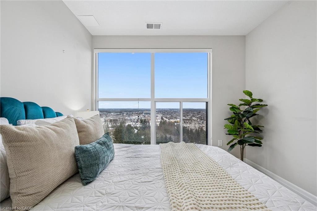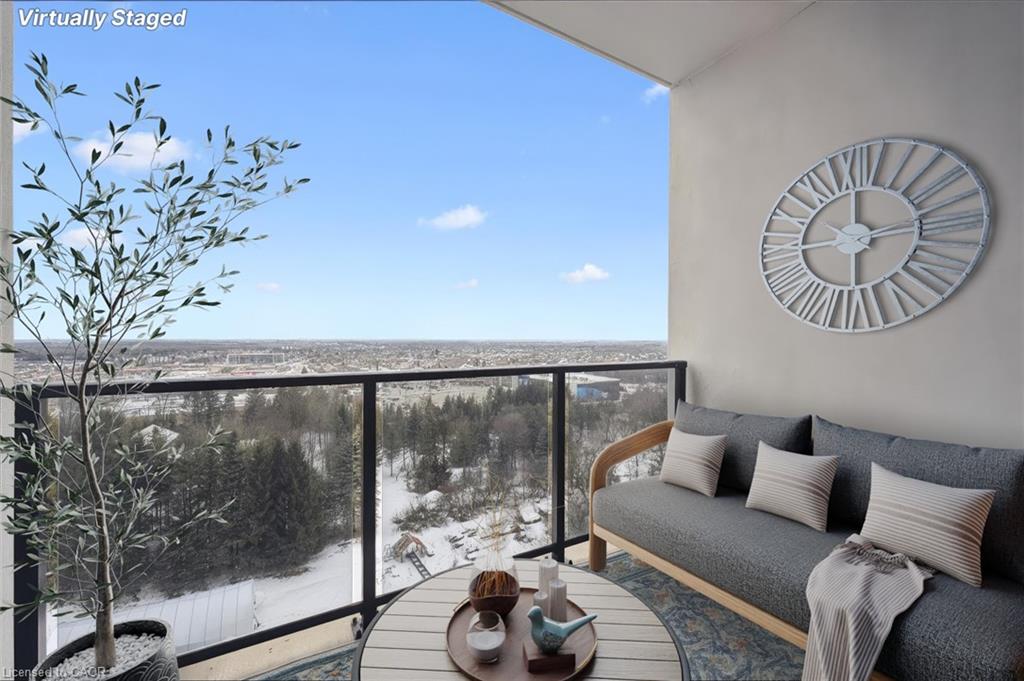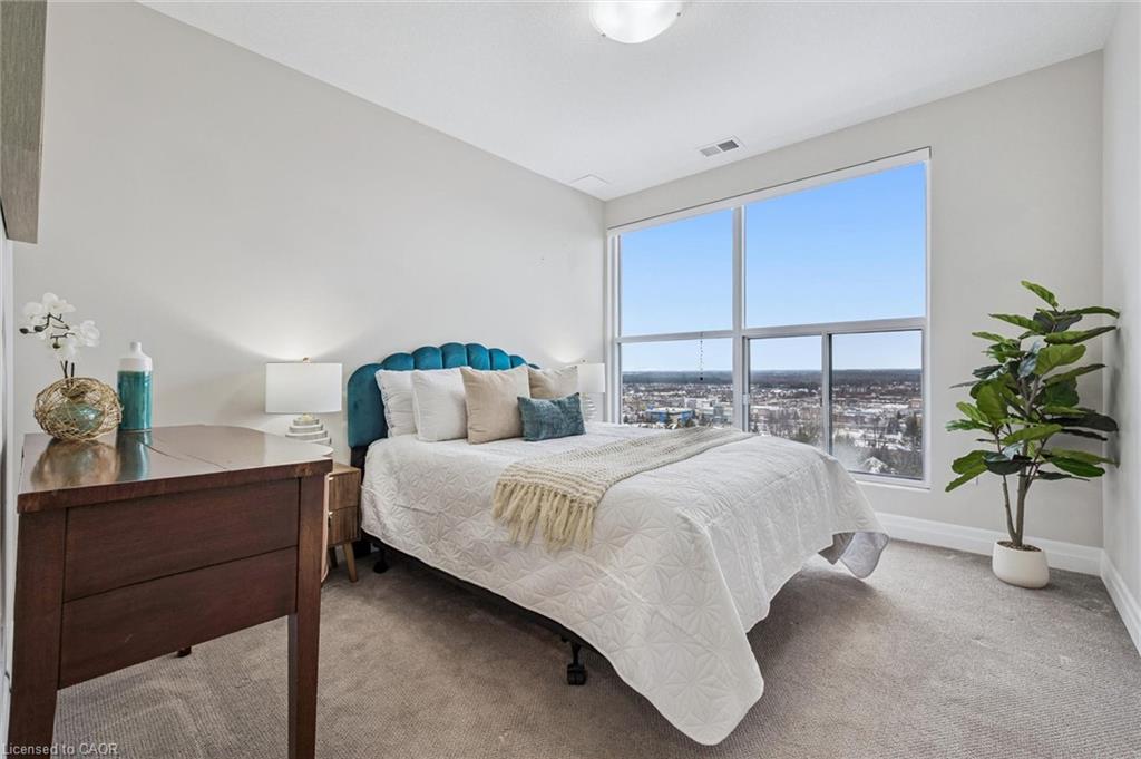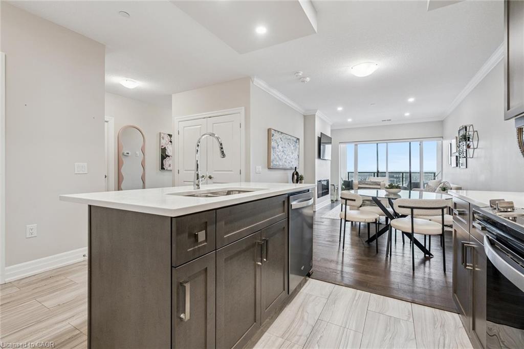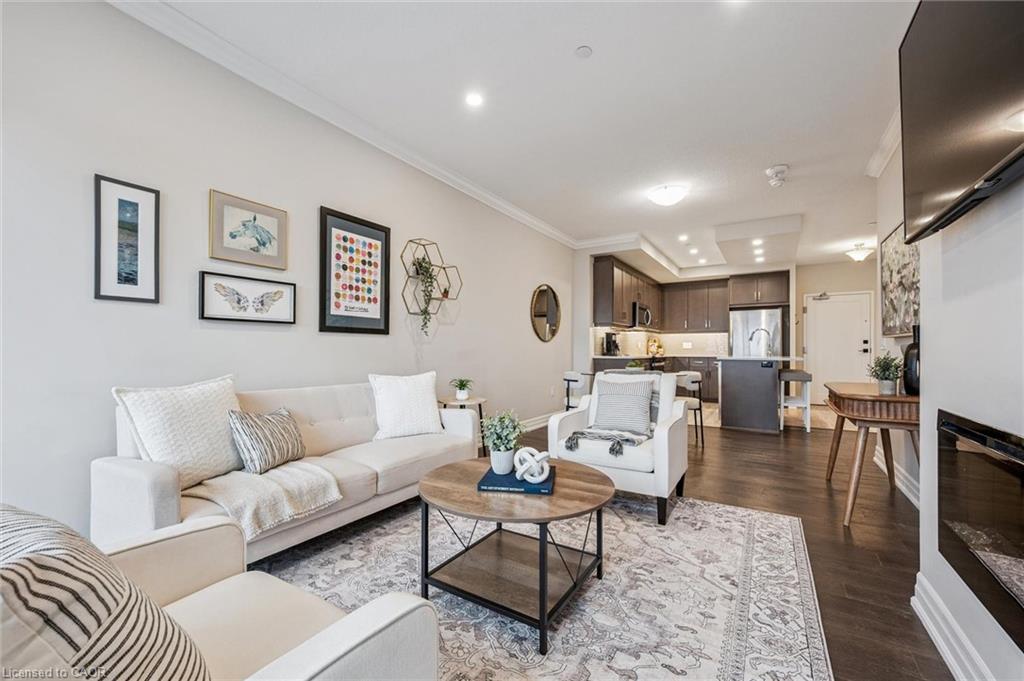 Welcome to this stunning 2 Bedroom + Den, 2-bathroom condo at 1880 Gordon Street, a bright and beautifully designed suite in Guelph’s sought-after Gordon Square community. This sophisticated unit features an open-concept layout with a generous living and dining area, a modern kitchen with quartz countertops, a large island and stylish cabinetry, and floor-to-ceiling windows that flood the space with natural light while showcasing tranquil views of green space and the city. The primary bedroom retreat offers a walk-in closet and private 3-piece ensuite, while the second bedroom, versatile den and additional 4-piece bathroom provide flexibility for family or guests. The den is ideal for added living space, storage or a home office. Enjoy a spacious in-suite laundry room with ample storage, along with a private balcony perfect for morning coffee or evening sunsets. Residents have access to premium amenities including a fitness centre, golf simulator, games and party room, guest suite, and more. This unit also includes one underground parking space and an owned locker. Perfectly located in Guelph’s vibrant south end close to shopping, restaurants, entertainment and commuter routes, Unit 809 delivers comfort, style and convenience. Book your private showing today!