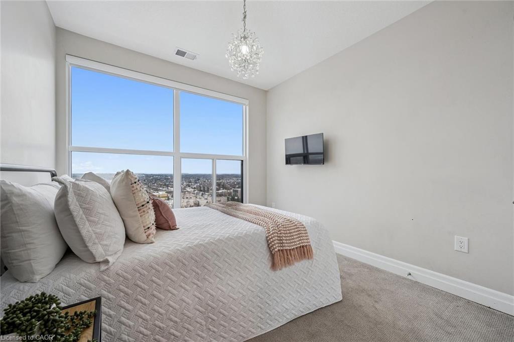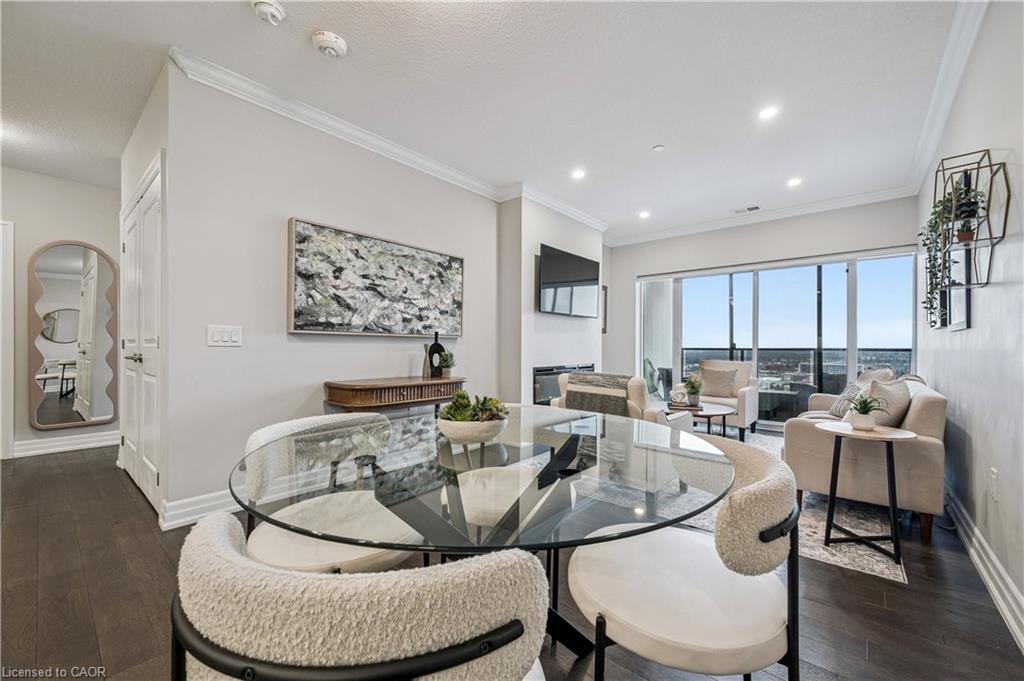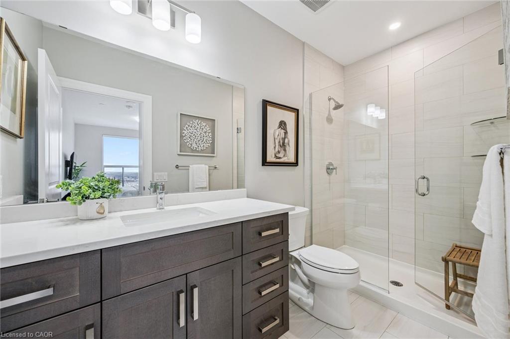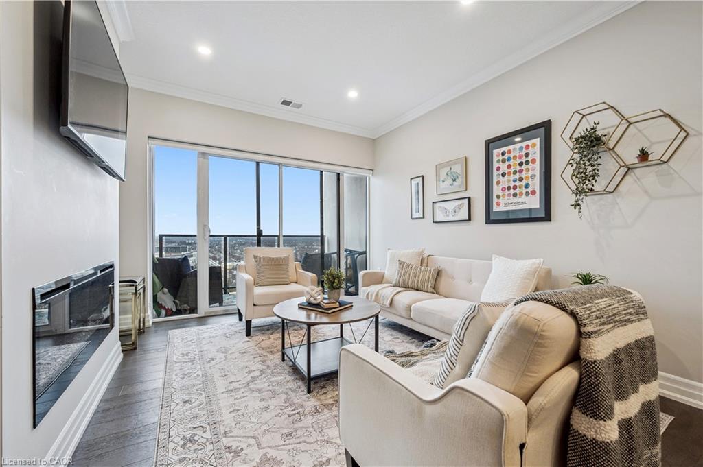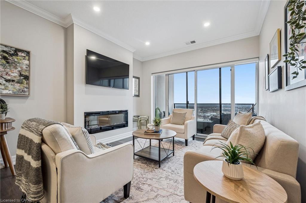Welcome to this stunning 2 Bedroom + Den, 2-bathroom condo at 1880 Gordon Street, a bright and beautifully designed suite in Guelph’s sought-after Gordon Square community. This sophisticated unit features an open-concept layout with a generous living and dining area, a modern kitchen with quartz countertops, a large island and stylish cabinetry, and floor-to-ceiling windows that flood the space with natural light while showcasing tranquil views of green space and the city. The primary bedroom retreat offers a walk-in closet and private 3-piece ensuite, while the second bedroom, versatile den and additional 4-piece bathroom provide flexibility for family or guests. The den is ideal for added living space, storage or a home office. Enjoy a spacious in-suite laundry room with ample storage, along with a private balcony perfect for morning coffee or evening sunsets. Residents have access to premium amenities including a fitness centre, golf simulator, games and party room, guest suite, and more. This unit also includes one underground parking space and an owned locker. Perfectly located in Guelph’s vibrant south end close to shopping, restaurants, entertainment and commuter routes, Unit 809 delivers comfort, style and convenience. Book your private showing today!