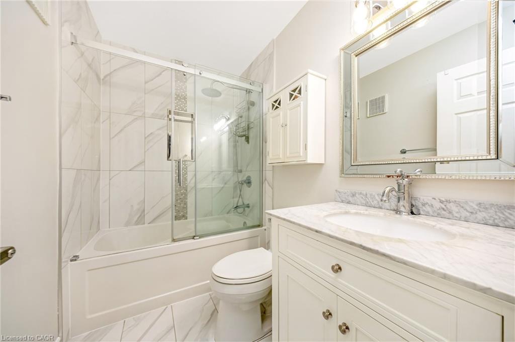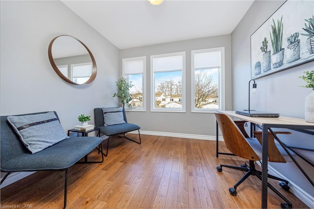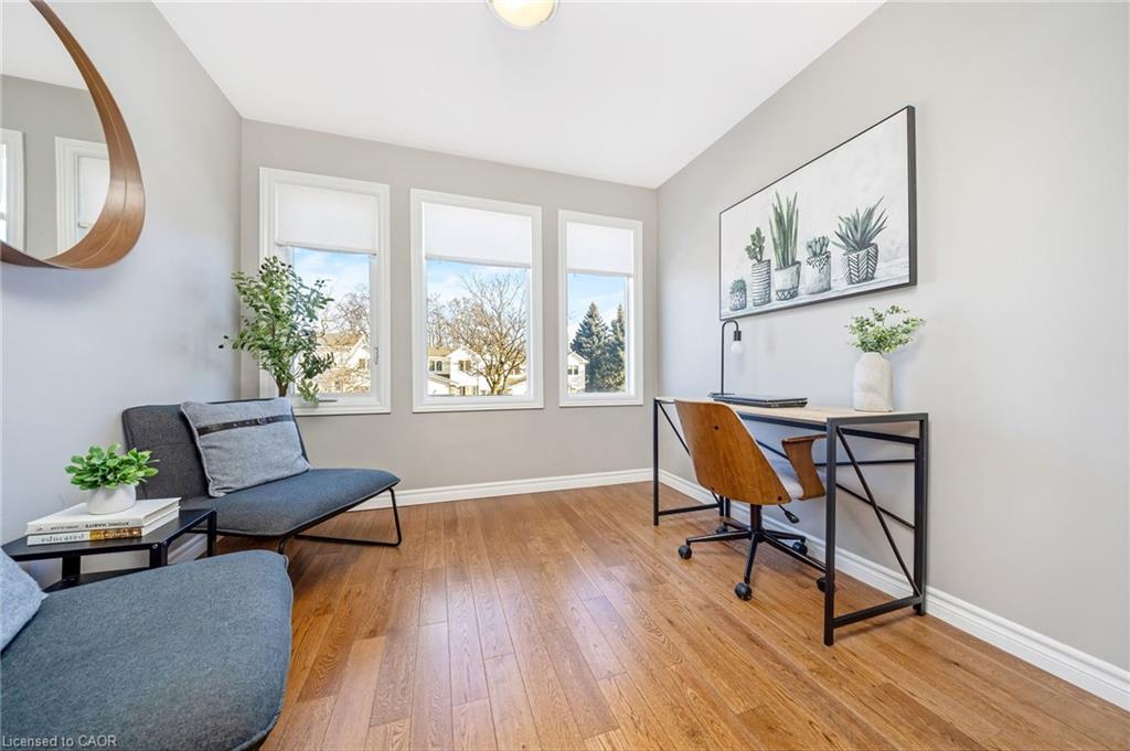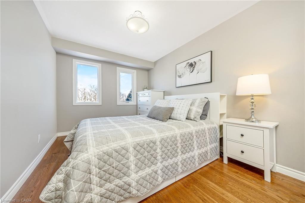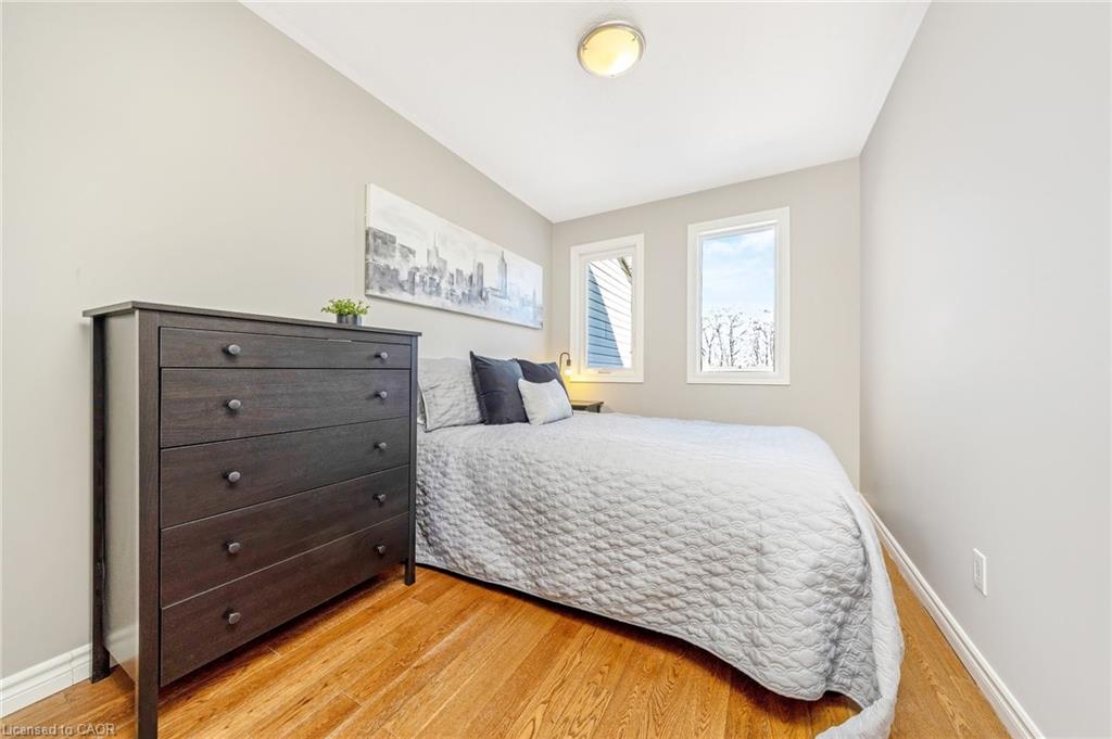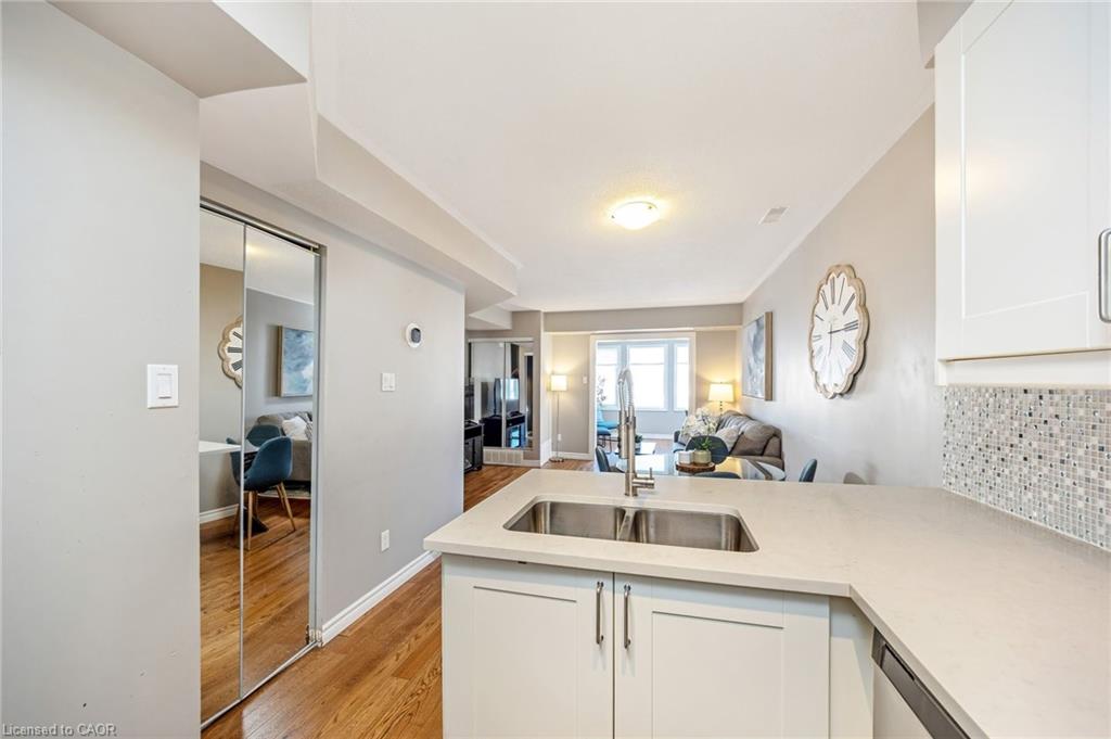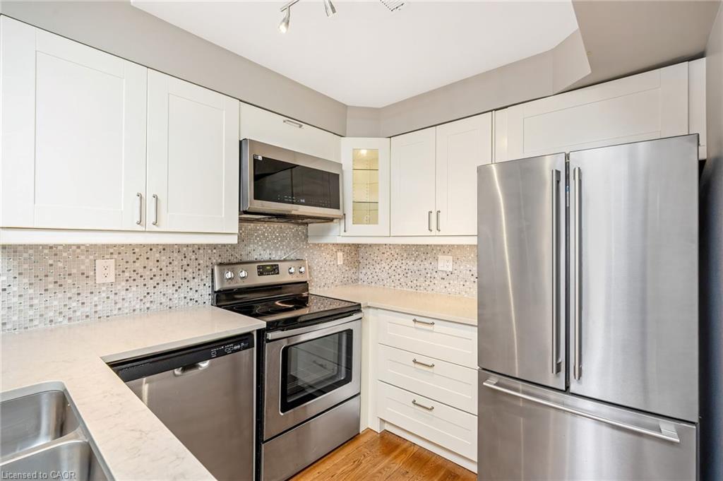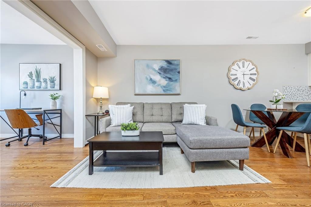 This 2 bedroom condo townhome is the perfect starter home! It is fully renovated and has hardwood floors throughout the entire home. On the main level, there is an open concept living/dining room plus a bonus den space perfect for a home office or a playroom. The kitchen has been fully renovated and offers quartz countertops, stainless steel appliances, pot drawers, under-cabinet lighting and a custom backsplash! Upstairs has a large primary bedroom with a large double closet, a second good-sized bedroom and a gorgeously renovated 4-pc bathroom! The 2-underground parking spaces are steps from the unit! The central location can’t be beat and is walking distance to the GO, shopping and parks!