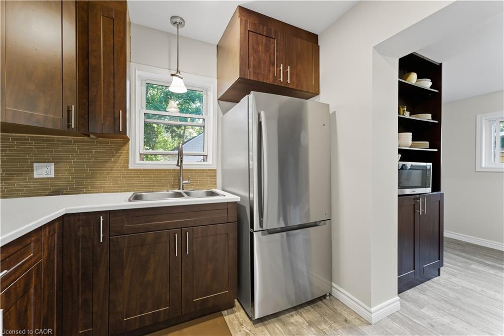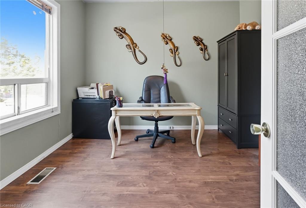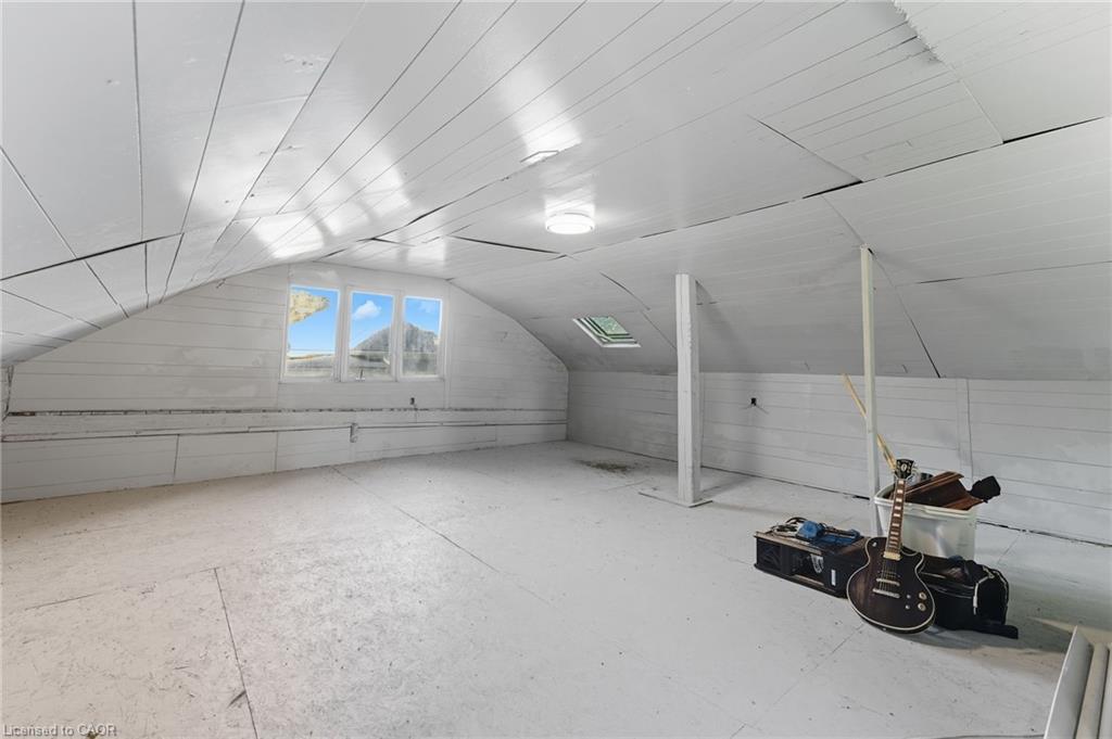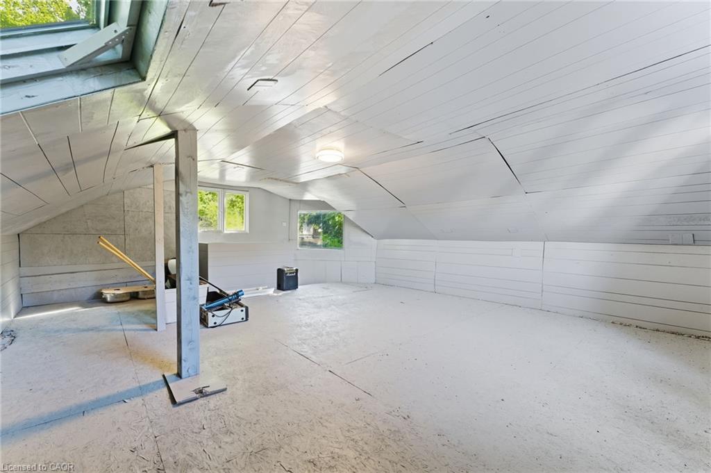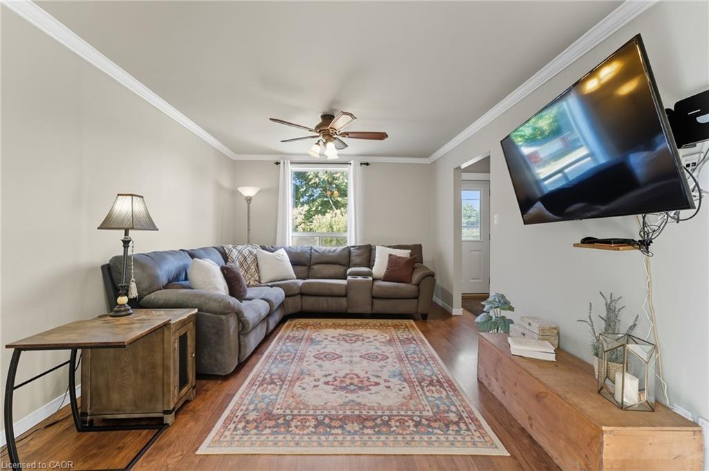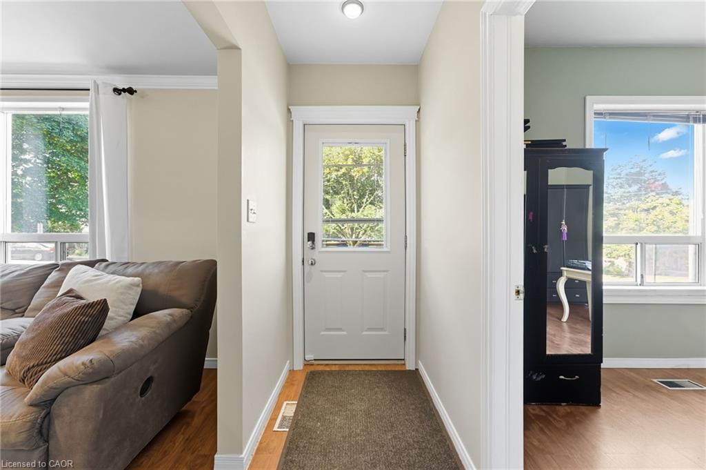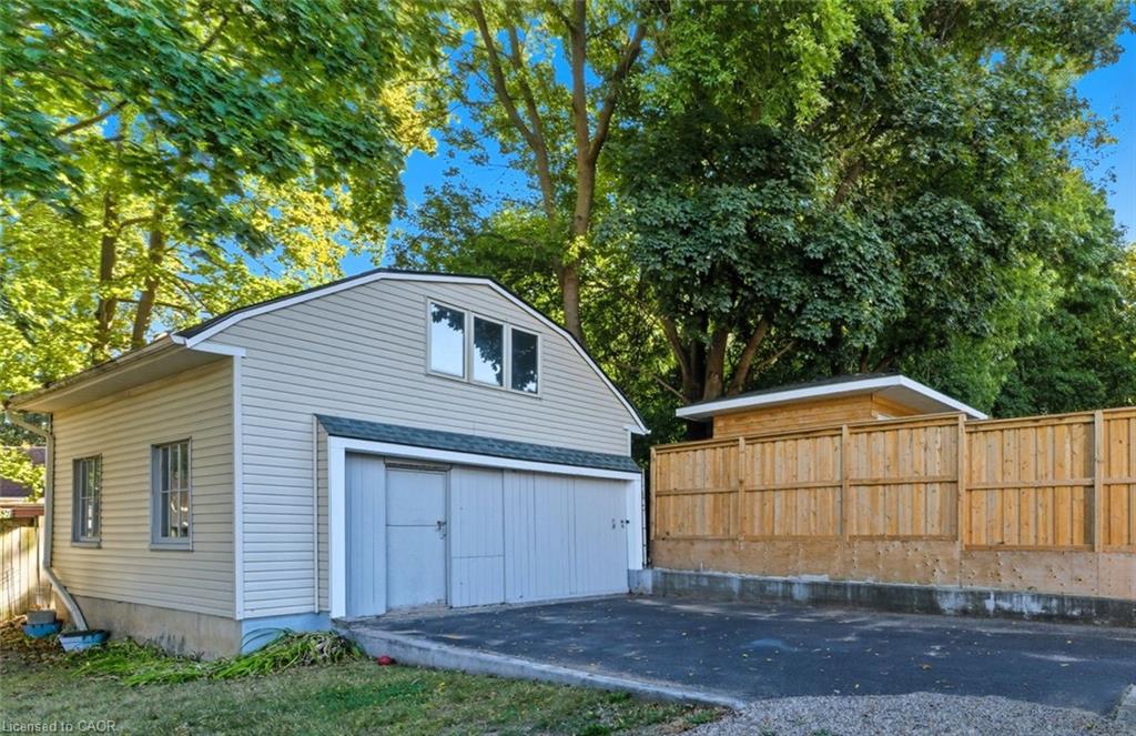 and 401 access. This home features two bedrooms on the main floor plus an additional bedroom upstairs. The family and dining rooms flow seamlessly into the renovated kitchen, creating a great space for everyday living. Downstairs, you’ll find a rec room, bathroom, and a bonus room that’s perfect for a home office, playroom, or studio. A mudroom off the kitchen leads to the private, fenced backyard—ideal for entertaining. The detached garage includes a bonus second level with hydro, offering endless possibilities for a workshop, yoga studio, or hobby room. The driveway has ample parking with a gate towards the back for extra security . Notable upgrade include kitchen renovation 2022, new windows in the back of the house, roof 2010 (30yr shingles), Furnace and A/C 2016, Front porch 2024, Fridge/Stove 2022, Electrical panel with Energy rating of 57 and hard wired smoke detectors.