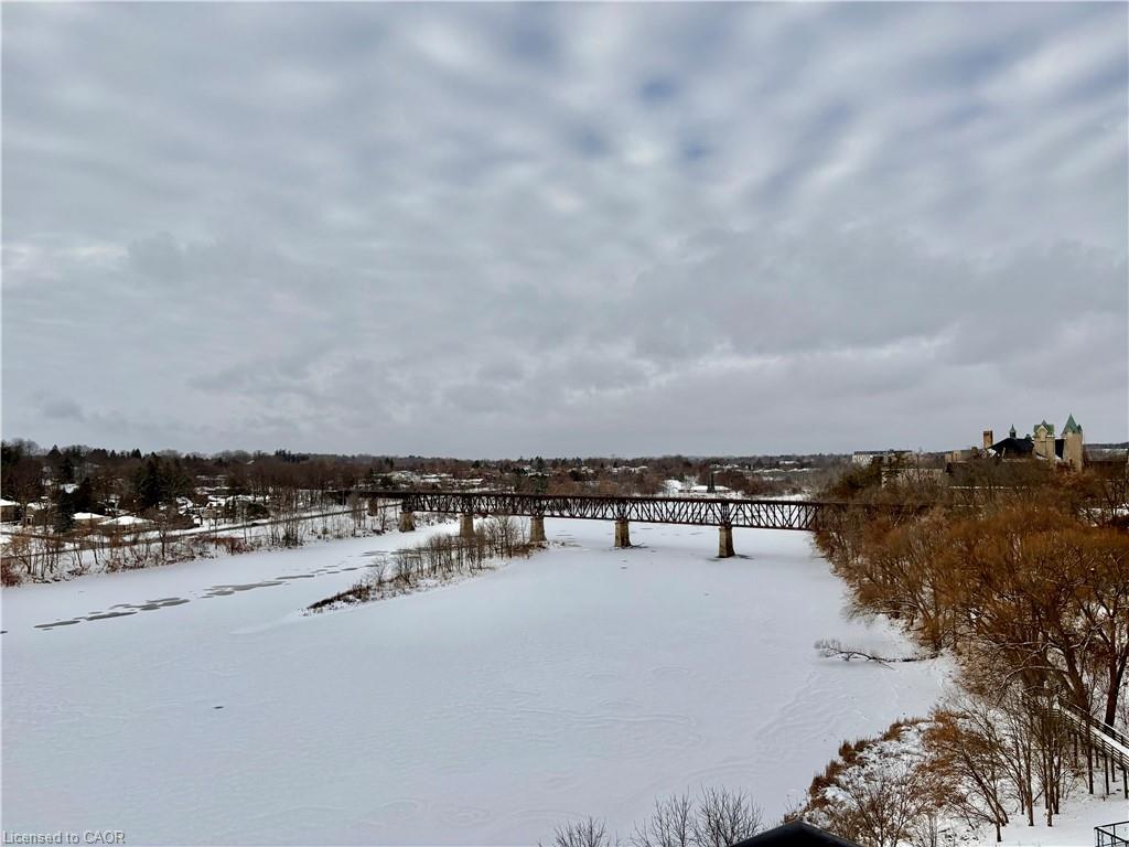 This beautifully updated one-bedroom condo overlooks the Grand River and features an open-concept living/dining area with a breakfast-bar kitchen and stainless steel appliances and granite counters, it’s truly move-in ready. Enjoy river views from your private balcony or the large riverside terrace with gardens, seating, gas fire pits, and BBQs. Amenities include a fitness center, guest suite, party room, storage, and underground parking. All just steps from live theatre, river trails, the farmers’ market, shops, and restaurants.