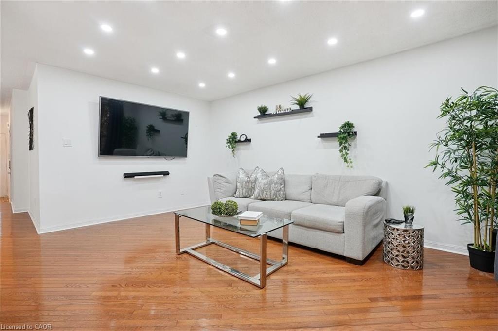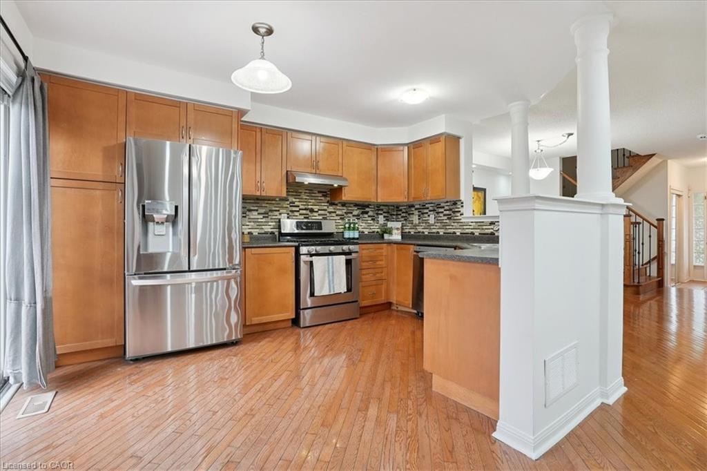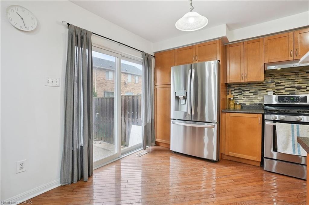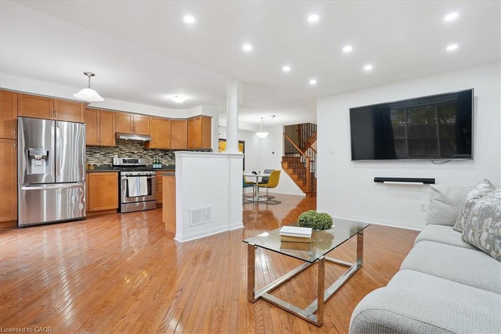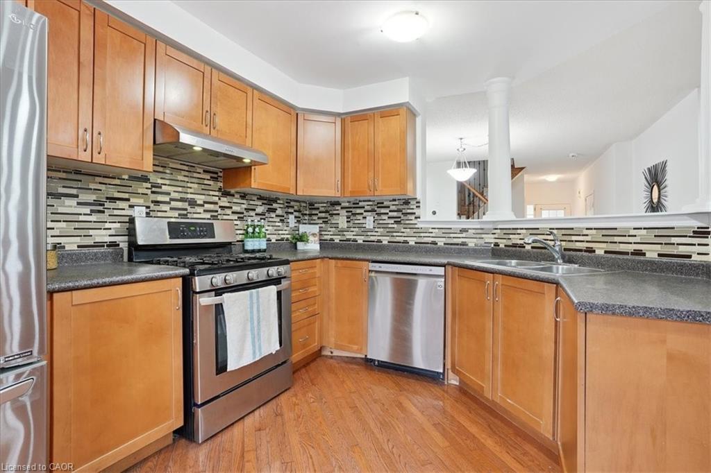 Enjoy the freedom of a freehold townhome in Milton with lots of utility and finished top to bottom. The open concept main floor features oak hardwood flooring, kitchen patio doors leading to an exposed aggregate large patio, stainless steel appliances, tons of pot lights, separate dining area, and oaks stairs leading to the bedroom level. There you will find 3 bedrooms, 2 full baths, including a primary bedroom ensuite, and more hardwood floors. The basement is easily an in-law suite or teen suite with kitchenette, bedroom, rec-room and full bath. Outside there is a fully fenced yard, landscaping and a double-depth driveway. Great value!