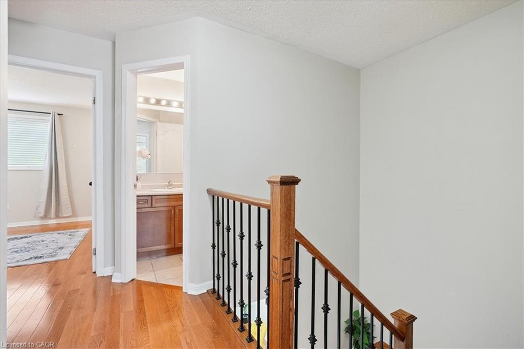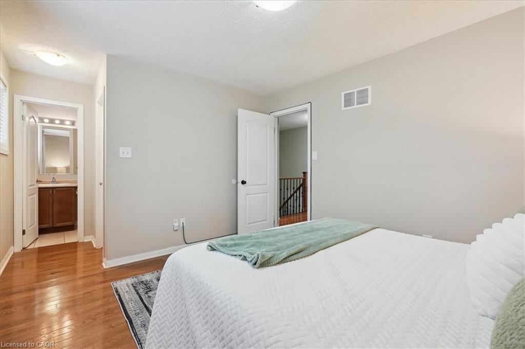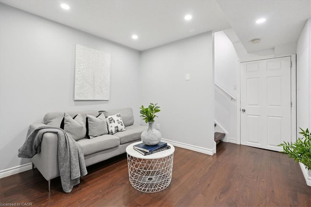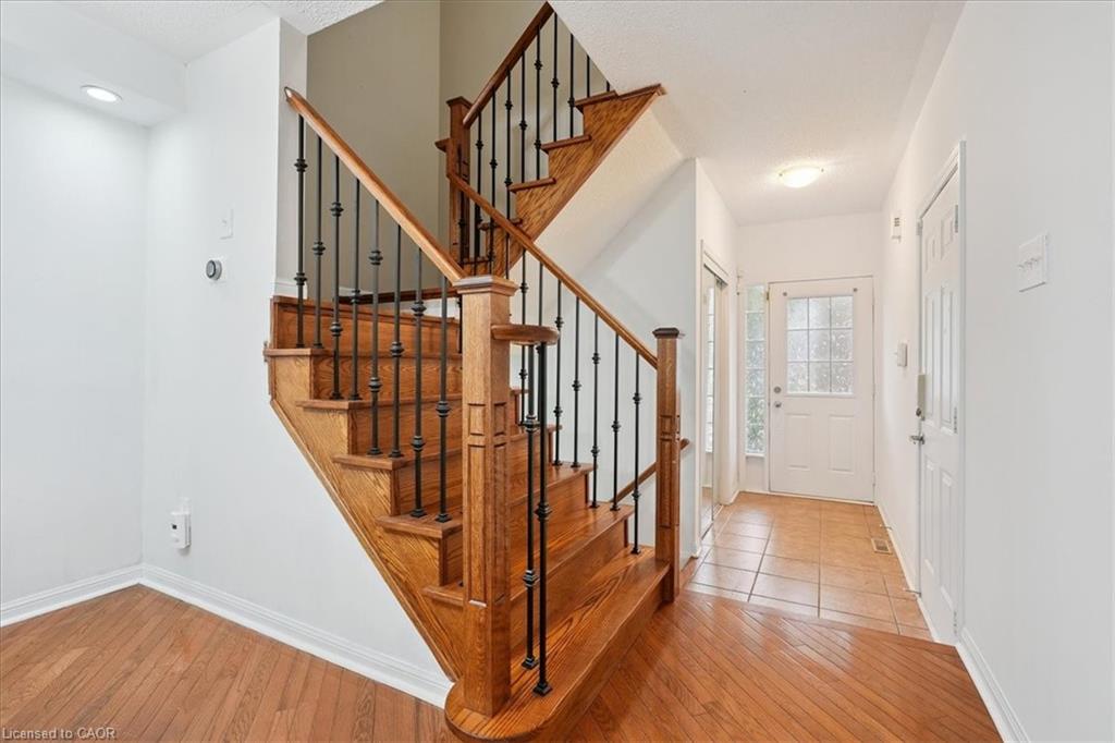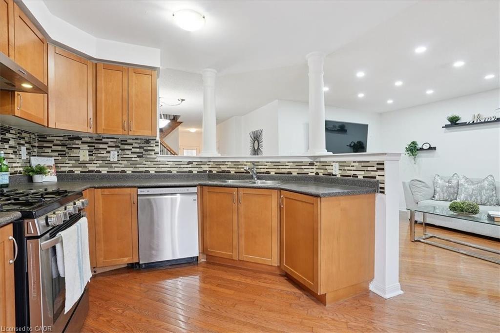 Enjoy the freedom of a freehold townhome in Milton with lots of utility and finished top to bottom. The open concept main floor features oak hardwood flooring, kitchen patio doors leading to an exposed aggregate large patio, stainless steel appliances, tons of pot lights, separate dining area, and oaks stairs leading to the bedroom level. There you will find 3 bedrooms, 2 full baths, including a primary bedroom ensuite, and more hardwood floors. The basement is easily an in-law suite or teen suite with kitchenette, bedroom, rec-room and full bath. Outside there is a fully fenced yard, landscaping and a double-depth driveway. Great value!