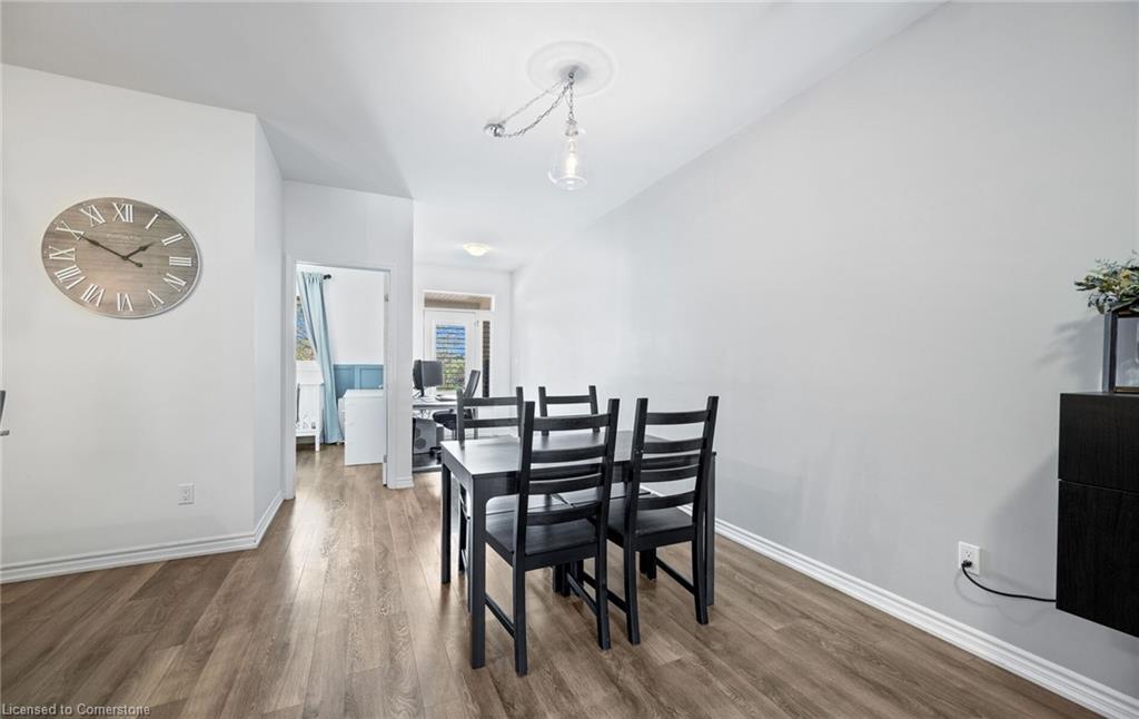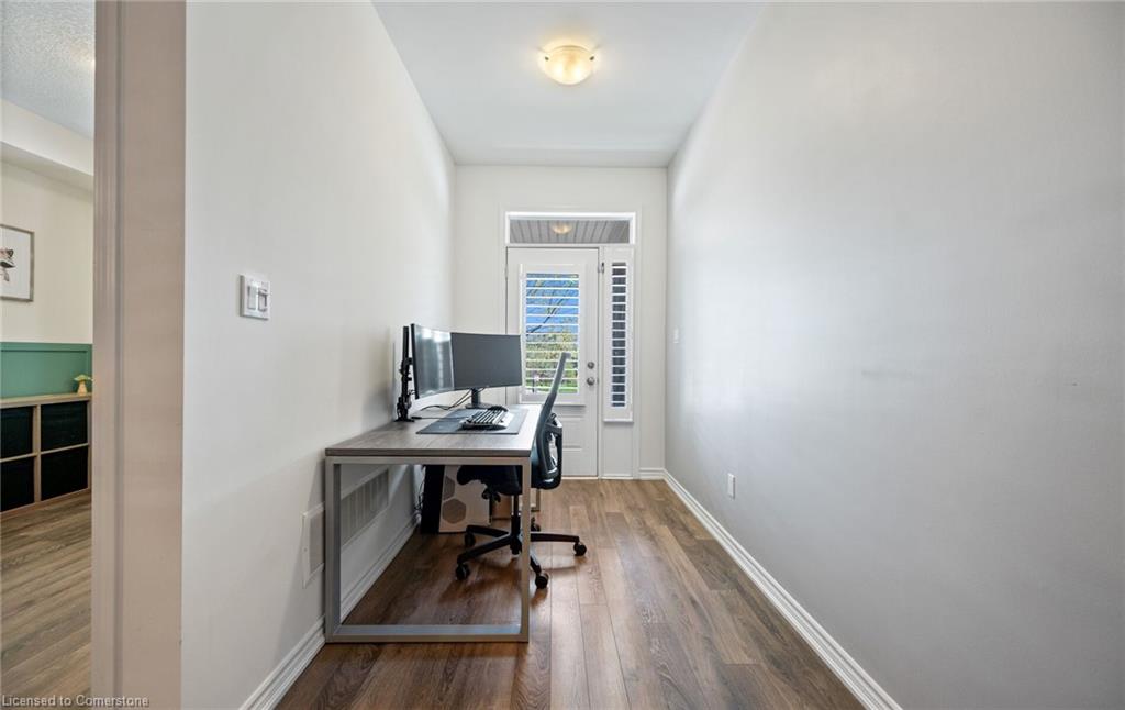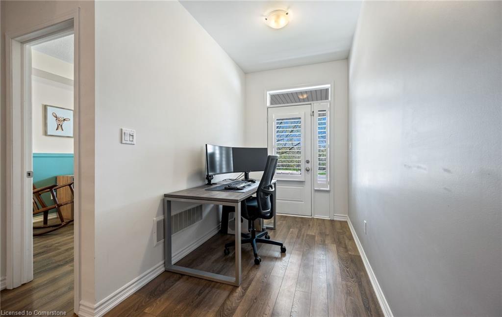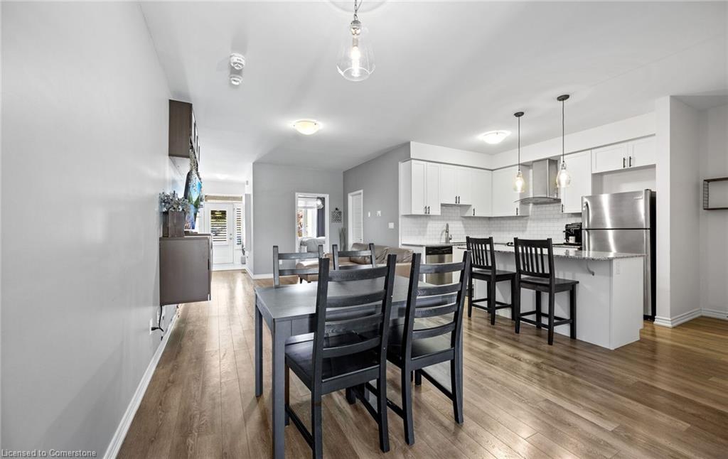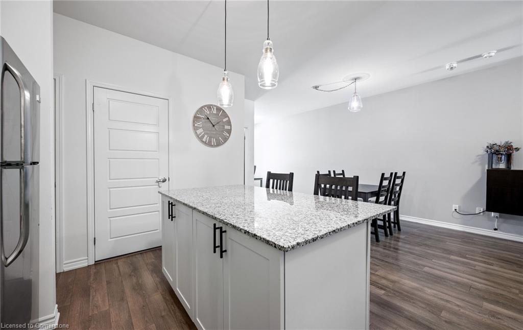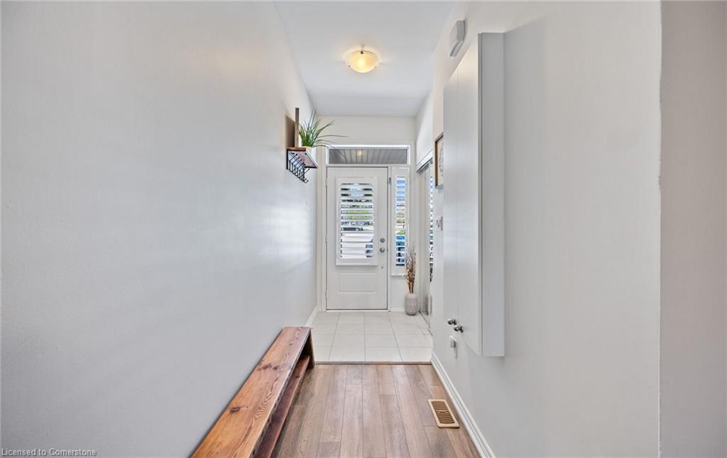 Step into this thoughtfully designed main-floor stacked townhome offering the ease of single-level living with the bonus of private basement access- combining convenience of a condo with the feel of bungalow living. This open-concept layout is highlighted by 9-foot ceilings, creating a bright and airy atmosphere that feels both spacious and welcoming. At the heart of the home is a spacious, contemporary kitchen, ideal for entertaining or family meals, with ample cabinetry and prep space. The seamless flow into the living and dining area is complemented by two covered patios – perfect for enjoying fresh air year-round, rain or shine. Every detail has been thoughtfully considered, from same-floor laundry to two private parking spots and a generously sized crawl space for all your storage needs – a true bonus in condo living. Located in a vibrant, family-friendly neighborhood, you’re just steps away from RBJ Schlegel Park, featuring a brand-new multi-million-dollar sportsplex with an indoor soccer field and aquatic centre. Within walking distance, you’ll find Longos Plaza, the new South Kitchener Library, and four public schools with childcare centres, all within 20 minutes. Commuters will appreciate the easy access to Highway 401 and Highway 7, making travel around the region effortless. Whether you’re a first-time buyer, downsizer, or investor, this home offers the ideal mix of lifestyle, location, and low-maintenance living. Don’t miss this opportunity to own a beautifully designed stacked townhome in one of Kitchener’s most desirable communities!