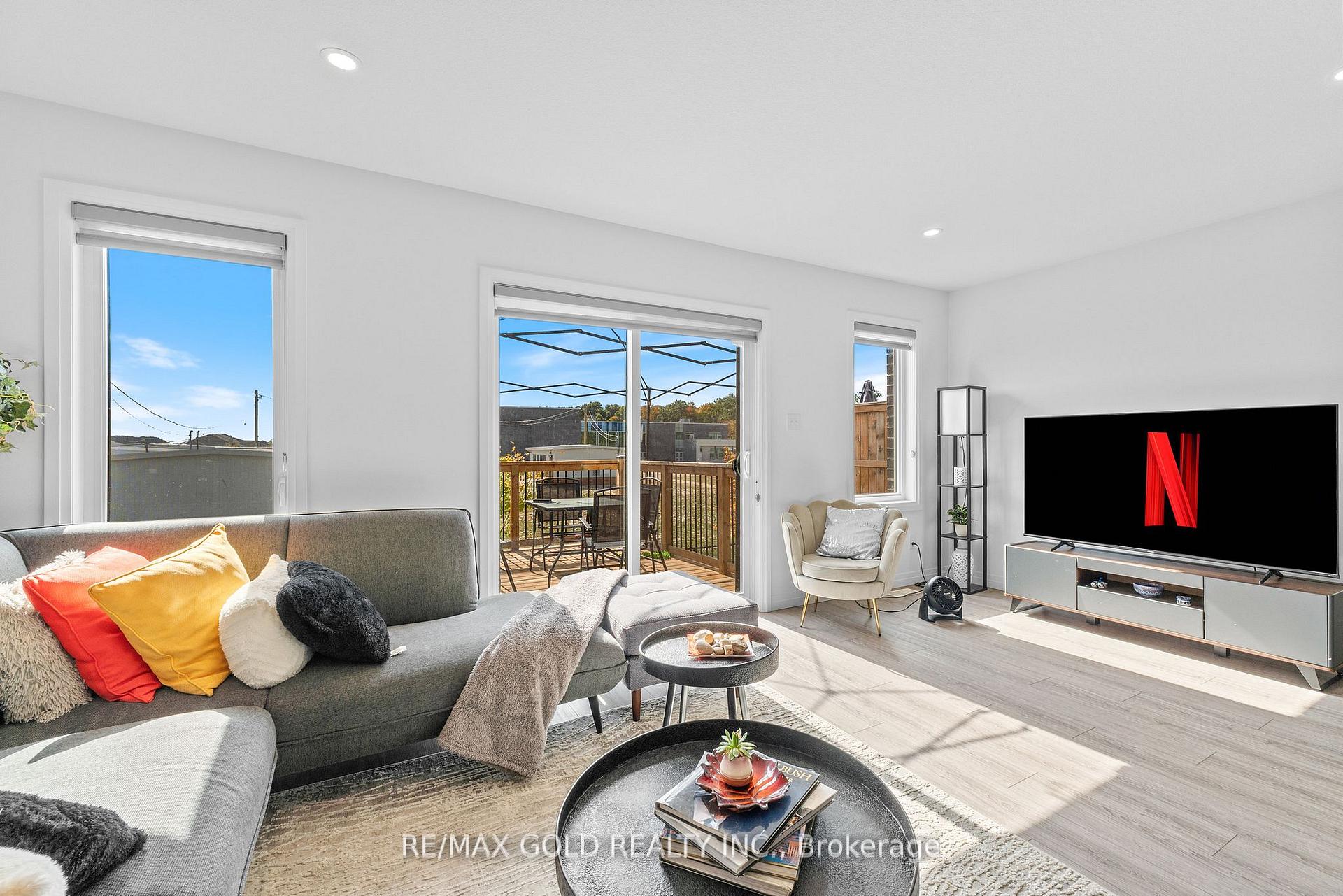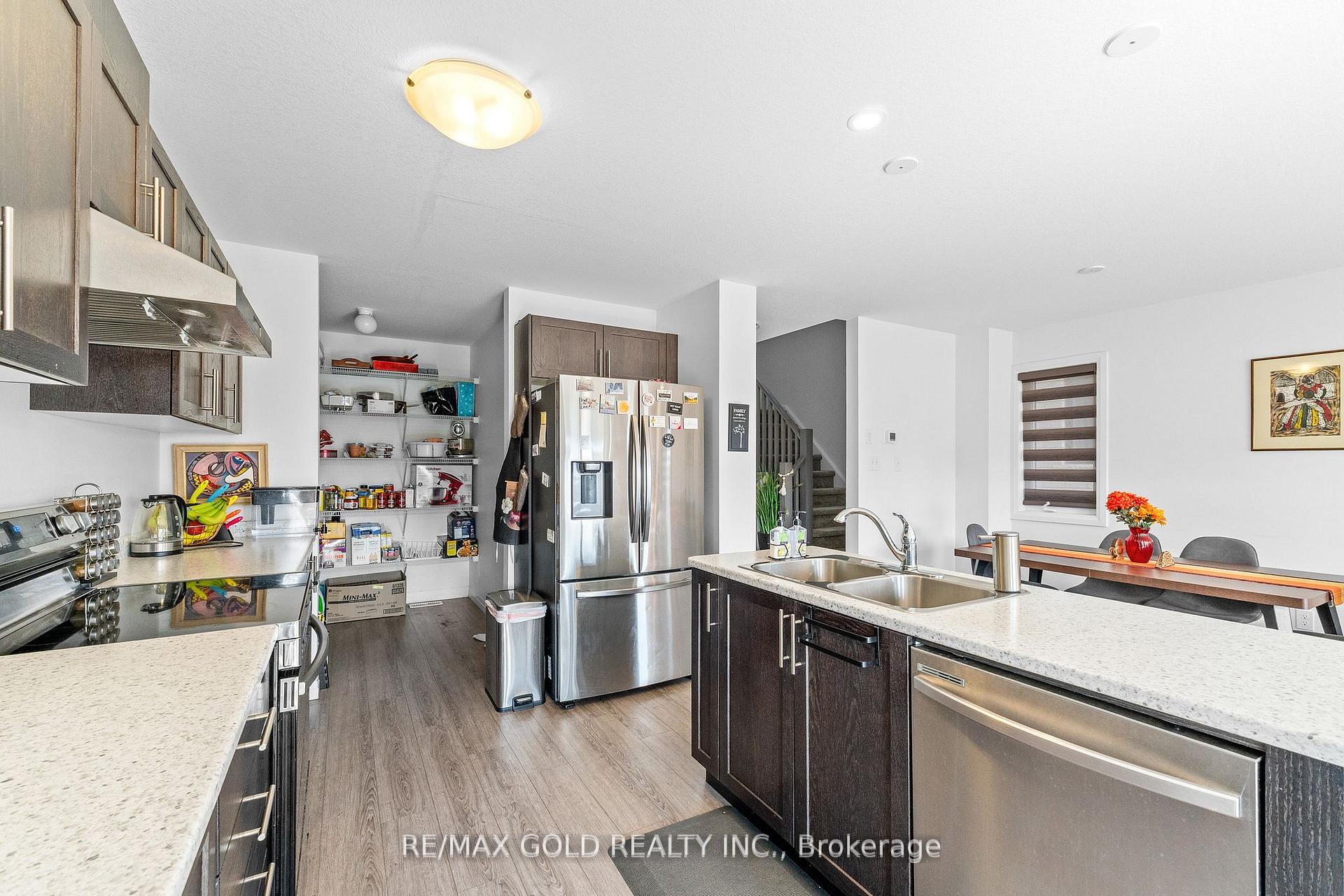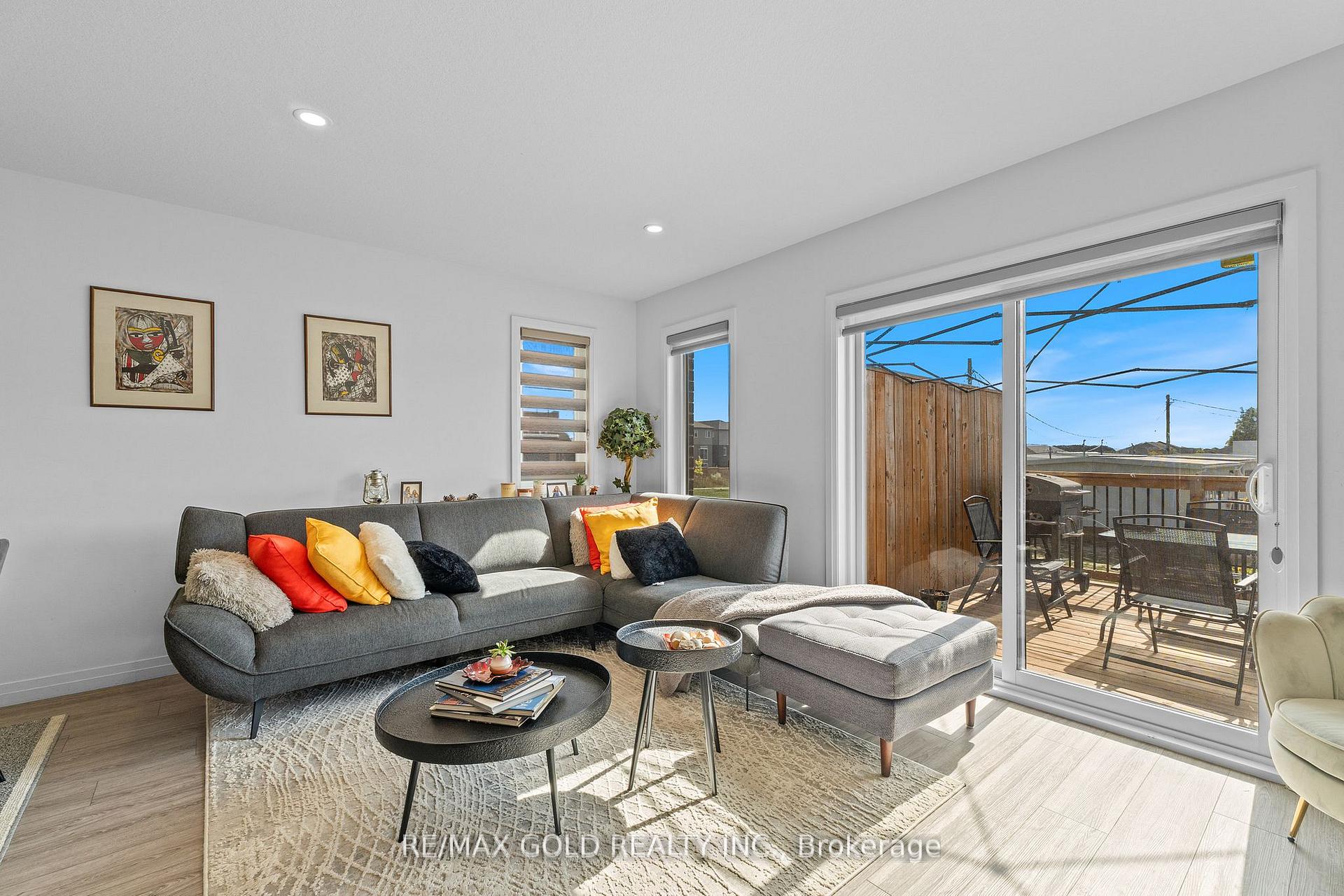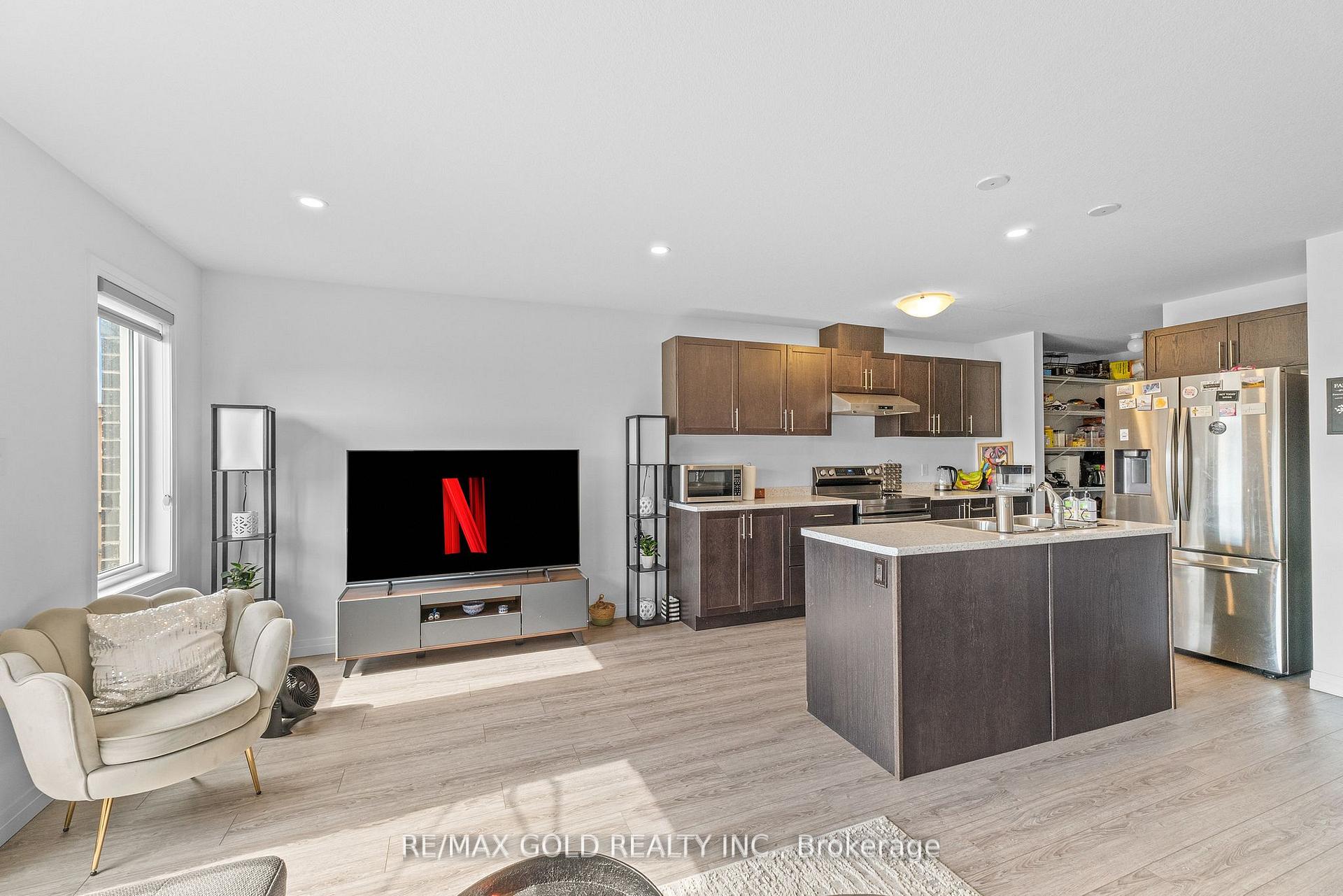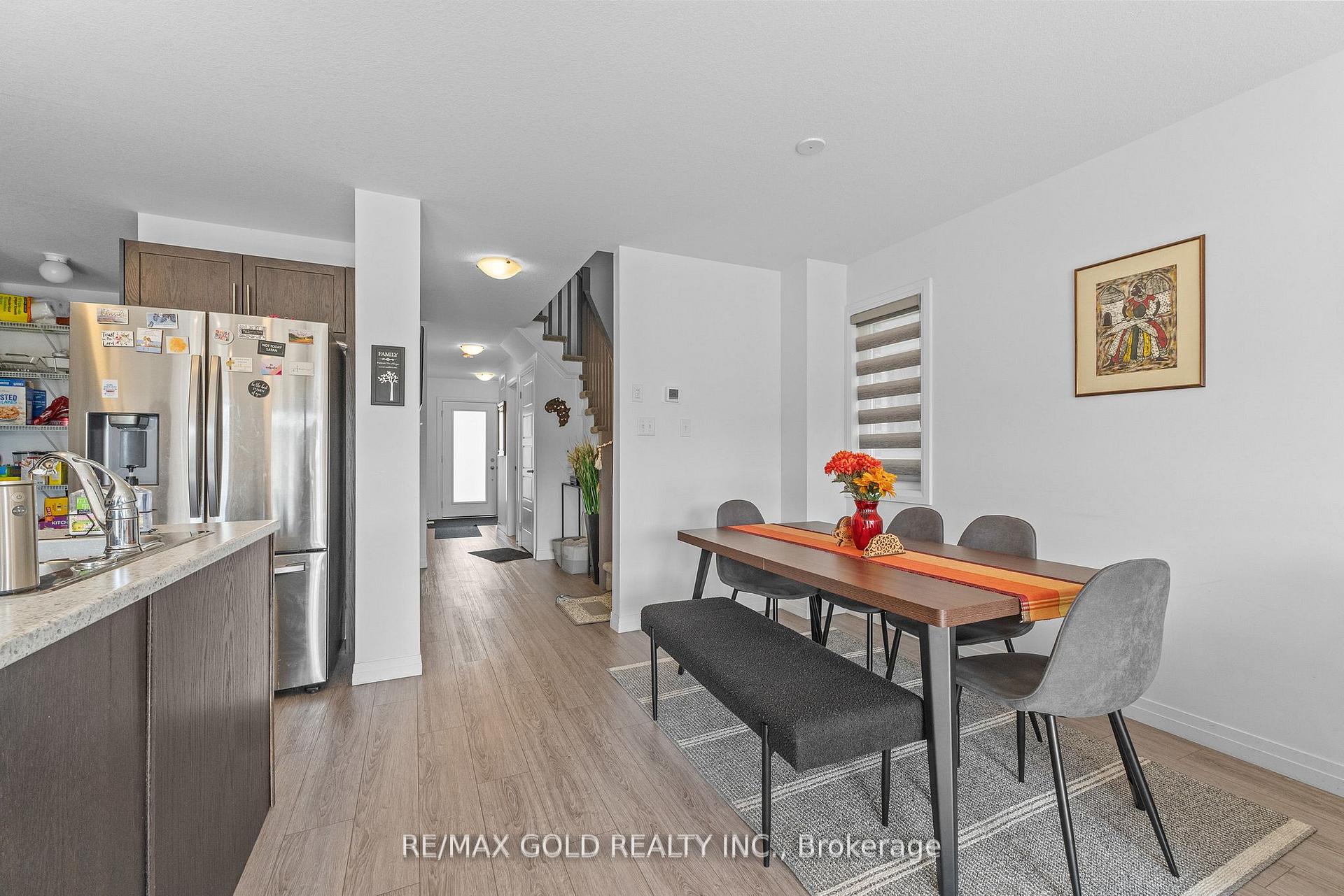Stunning end-unit townhouse offering over 1,700 sq ft of beautifully designed living space that perfectly blends comfort, style, and functionality. The main floor features an open-concept layout with a spacious living and dining area adorned with zebra curtains, creating a warm and inviting atmosphere for both everyday living and entertaining guests. The upgraded kitchen showcases high-end stainless steel appliances, elegant cabinetry, a large pantry for extra storage, and a modern layout ideal for any home chef. Upstairs, you’ll find three generous bedrooms, including two with walk-in closets and a luxurious master suite with a private3-piece ensuite. The large windows throughout the home allow plenty of natural light, enhancing the bright and airy feel. The unfinished walkout basement provides ample storage space and opens directly to school grounds, offering a peaceful and scenic view with no rear neighbors. Located in a highly desirable area, this home is within walking distance to schools, plazas, and a community center, while being just minutes from parks, trails, and St. Marys General Hospital. With excellent transit access only an 8-minute walk to the nearest bus stop and situated in a rapidly growing community, this property offers the perfect combination of modern living, convenience, and future value.