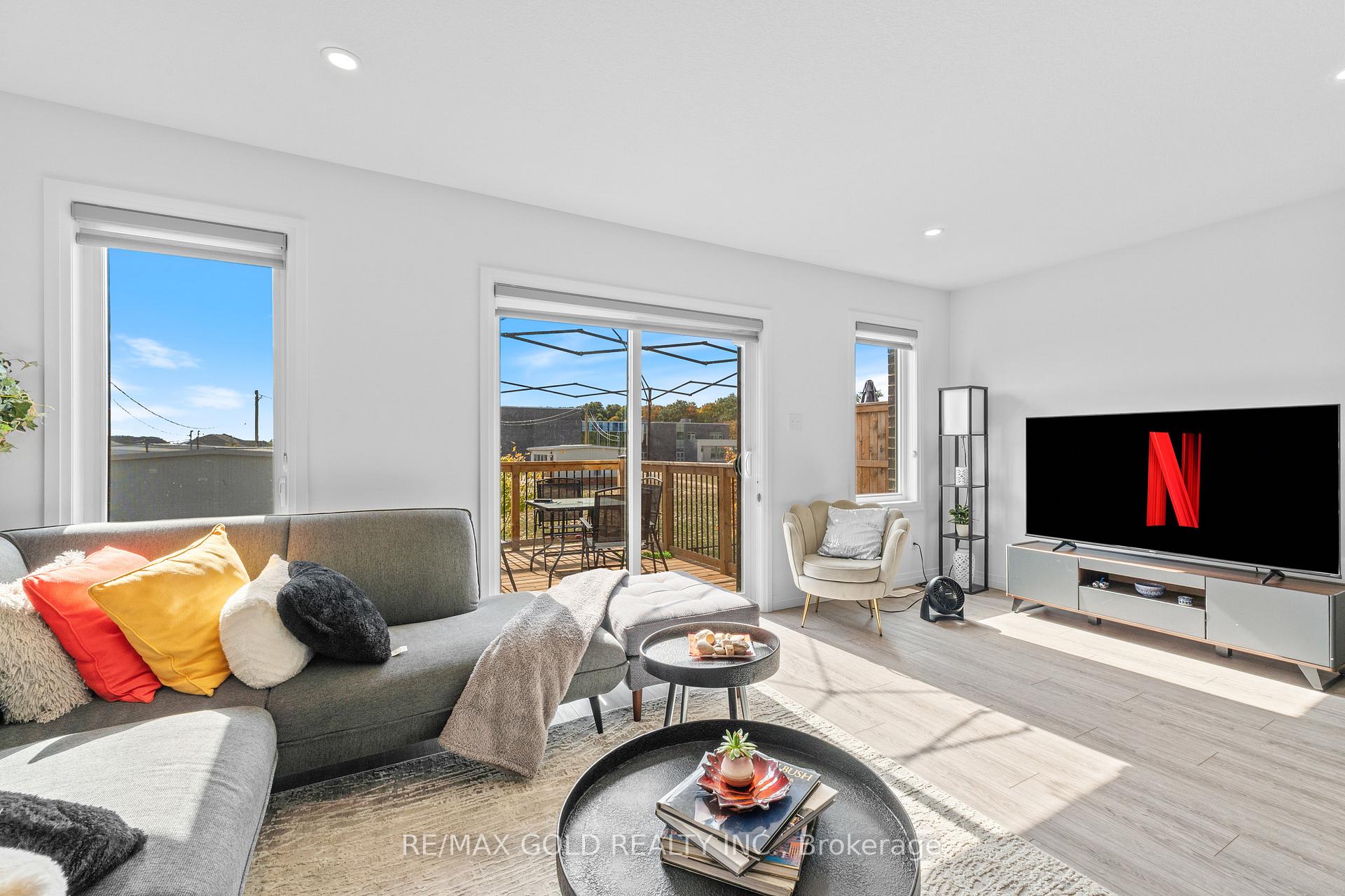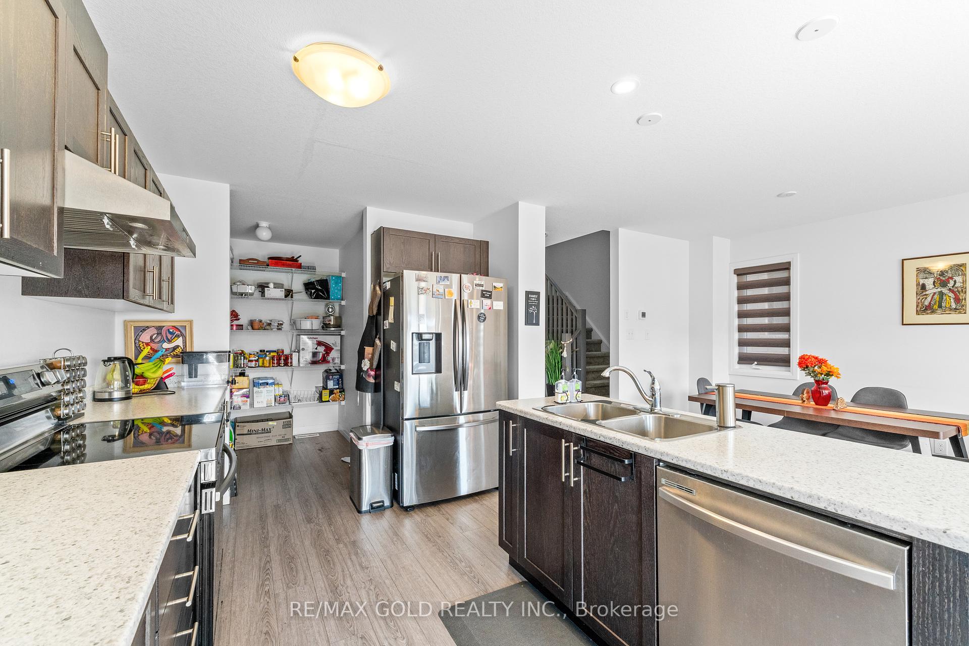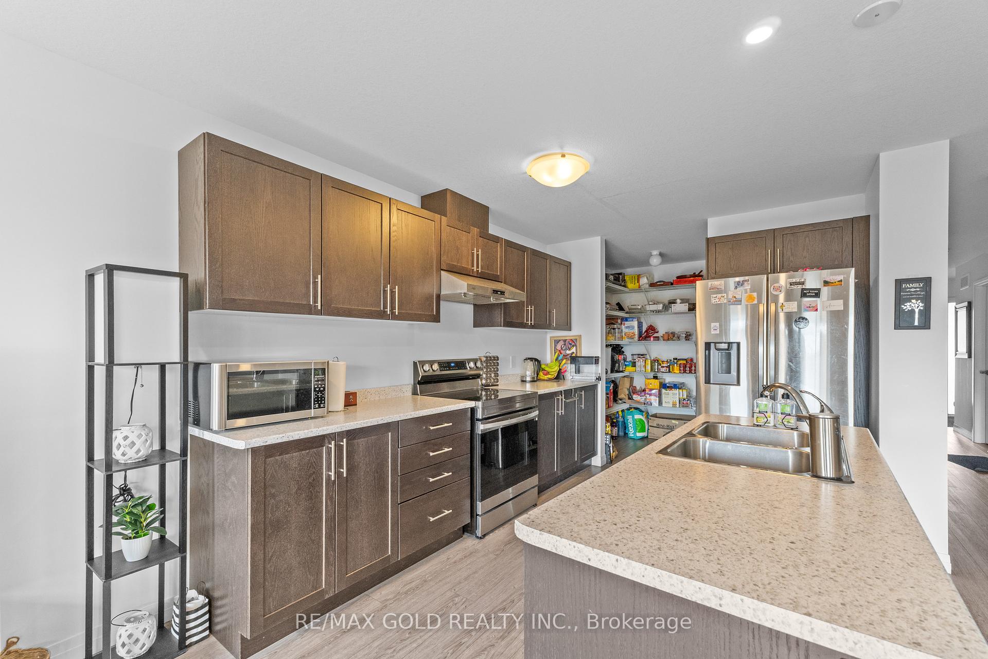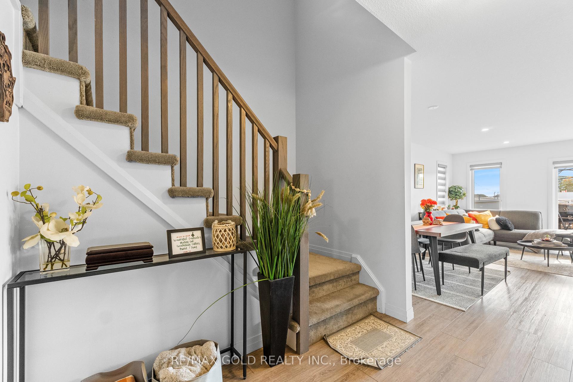 Stunning end-unit townhouse offering over 1,700 sq ft of beautifully designed living space that perfectly blends comfort, style, and functionality. The main floor features an open-concept layout with a spacious living and dining area adorned with zebra curtains, creating a warm and inviting atmosphere for both everyday living and entertaining guests. The upgraded kitchen showcases high-end stainless steel appliances, elegant cabinetry, a large pantry for extra storage, and a modern layout ideal for any home chef. Upstairs, you’ll find three generous bedrooms, including two with walk-in closets and a luxurious master suite with a private 3-piece ensuite. The large windows throughout the home allow plenty of natural light, enhancing the bright and airy feel. The unfinished walkout basement provides ample storage space and opens directly to school grounds, offering a peaceful and scenic view with no rear neighbors. Located in a highly desirable area, this home is within walking distance to schools, plazas, and a community center, while being just minutes from parks, trails, and St. Marys General Hospital. With excellent transit access only an 8-minute walk to the nearest bus stop and situated in a rapidly growing community, this property offers the perfect combination of modern living, convenience, and future value.