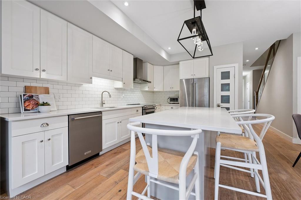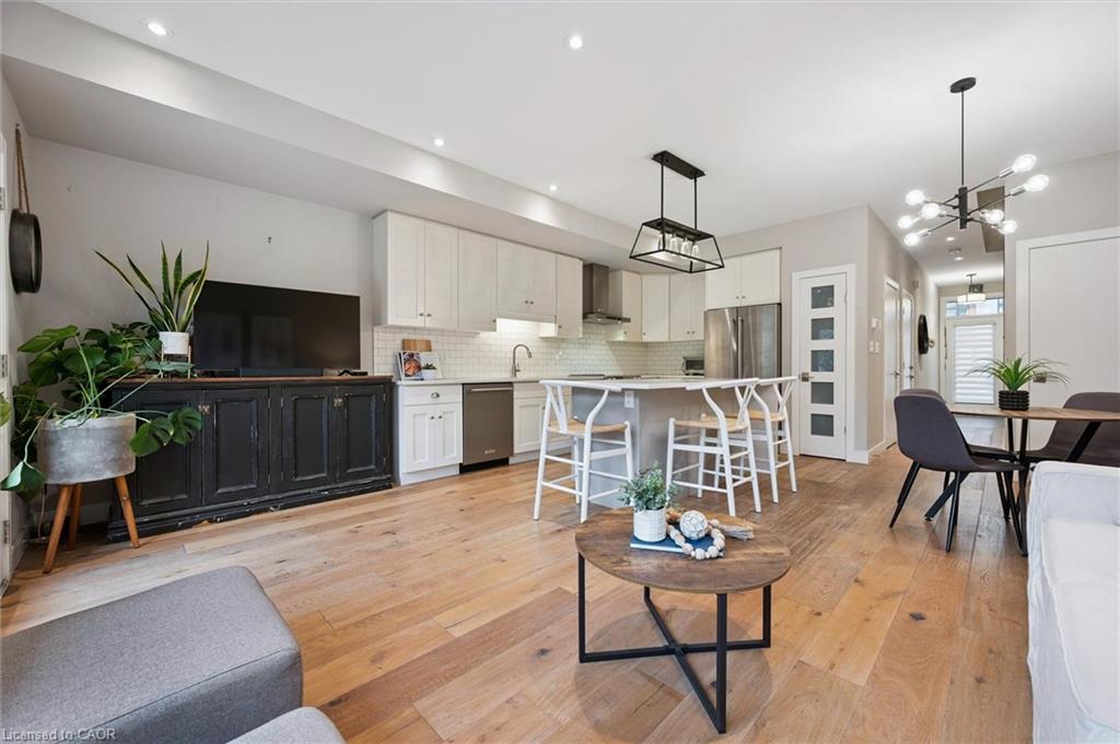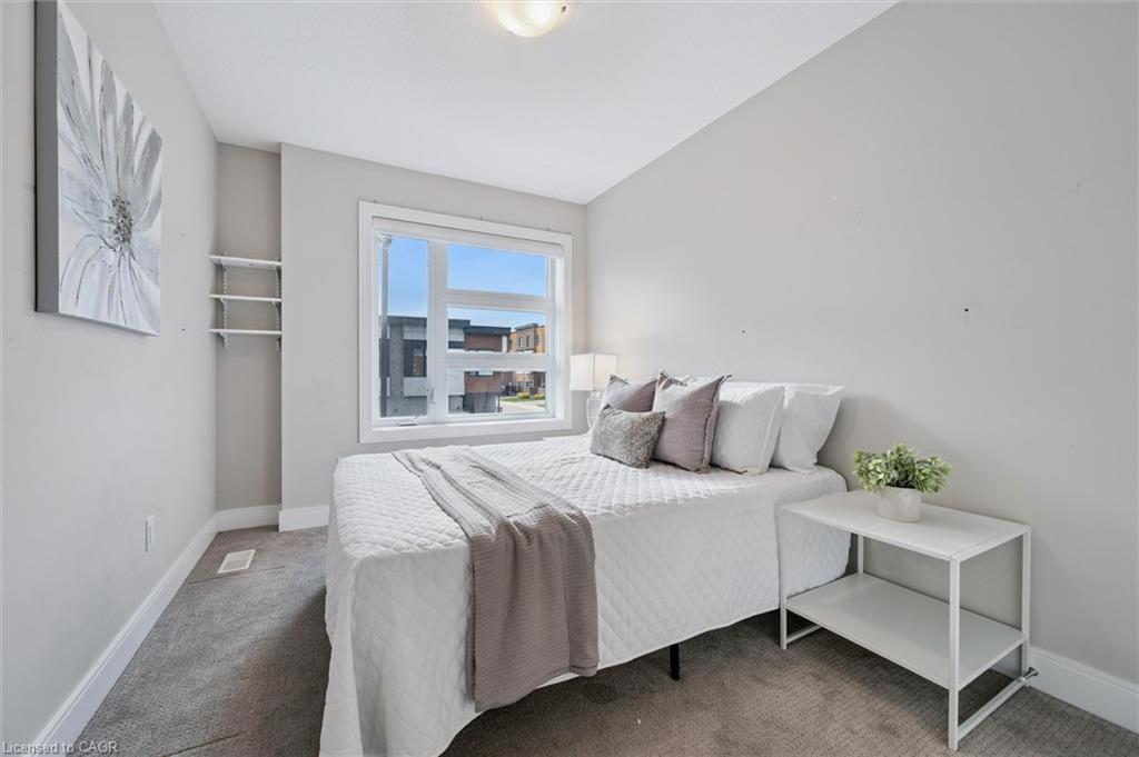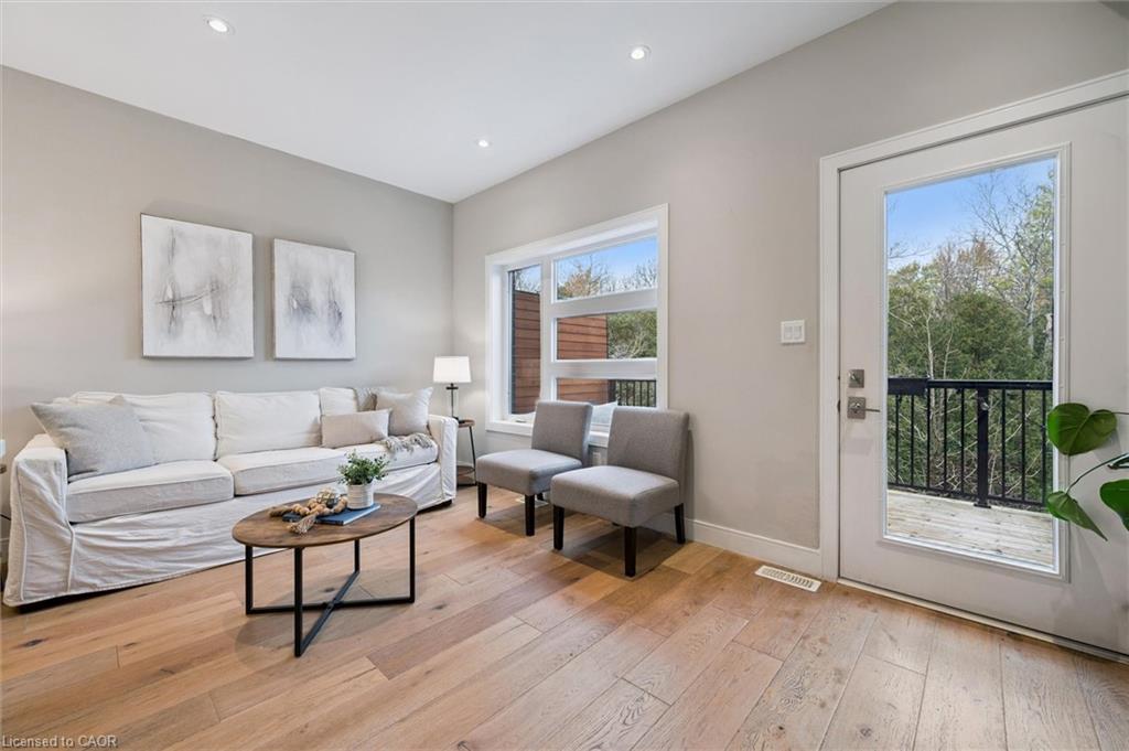 Welcome to #83-60 Arkell Road, an exceptional modern townhome tucked within an exclusive, private enclave of just a handful of homes. Backing onto a dense forest, this home offers rare privacy and a natural backdrop that feels miles away from city life-yet it’s ideally located in Guelph’s desirable South End, close to top-rated schools, public transit, and every amenity imaginable. With over 2,400 sq ft of living space, including a walk-out lower level, this home features 3 bedrooms and 3.5 bathrooms, plus a den/home office on the second floor. This unit is highly upgraded, with luxury vinyl plank flooring, LED pot lights, and stone surfaces throughout. The open-concept main floor is perfect for entertaining, with a spacious dining and living area that walks out to a private deck overlooking the forest. The chef-inspired kitchen features full-height cabinetry, high-end stainless steel appliances, and a quartz waterfall island that anchors the space. The upper landing includes a convenient laundry closet and a flex space that’s ideal for an office, workout area, or reading nook. The primary suite enjoys a dedicated ensuite with a glass-enclosed shower and rain shower head, while two additional bedrooms share a stylish 4-piece bathroom. The finished walk-out basement provides even more living space with a full bathroom and a large recreation room that opens to a covered patio surrounded by nature. The cherry on top? This unit comes with a rare third parking space! This is the ideal home for a stylish couple, modern family, or investor who is looking to attract a high quality tenant.