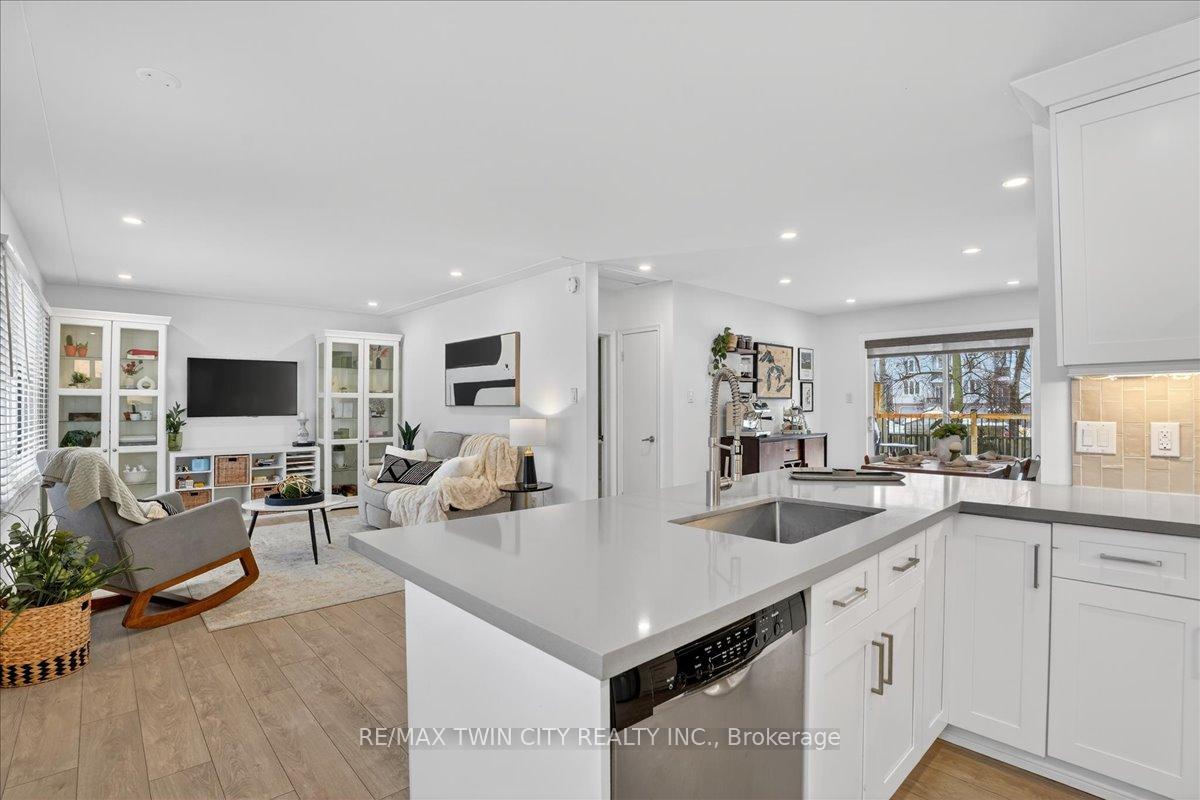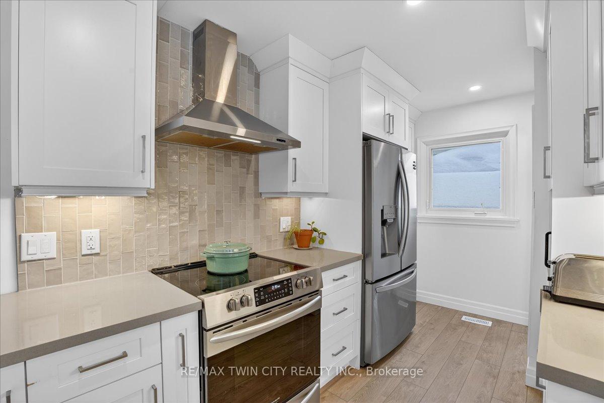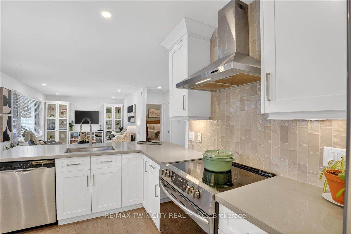Check out this beautifully renovated bungalow in Waterloo’s Uptown neighbourhood. You can walk to the universities, shopping and Uptown Waterloo, plus it has easy access to the expressway. All renovations have been completed in the past 4 years. The elegant kitchen (design/install by Choice Cabinets) is super functional with tons of cabinets, quartz countertops and stainless steel appliances. The peninsula doubles as a breakfast bar for people on the go. The open concept layout has abundant natural light and easy access to the backyard. The primary bedroom is spacious with a double closet. The updated 4 pc bath is tucked away by the nursery room. The décor is modern yet comfortable. The laundry room is amazing with built in cabinets, a laundry sink and well designed storage. The 3 pc bath features a floating vanity and glass shower. The storage room was previously a bedroom, please note the exit window. The lower spare bedroom could be used as a home office or child’s playroom. The mechanical room has the gas furnace (2015), rental water tank, water softener (rebuilt 2021) and more storage. There is a 100 amp breaker panel. The City of Waterloo has installed new sewer and 2 inch water lines in 2023. The seller installed a new sump pit/pump which is tied into the original weeper tile. There is a cold room great for storing perishables. Outside you will find a new 18 x 15 deck, a large fully fenced backyard lined with mature trees. There is ample room for a larger shed/outdoor kitchen or potential detached garage. The driveway is new and can park 5 cars. This home has been renovated with care and attention to detail, you will enjoy it for many years to come.