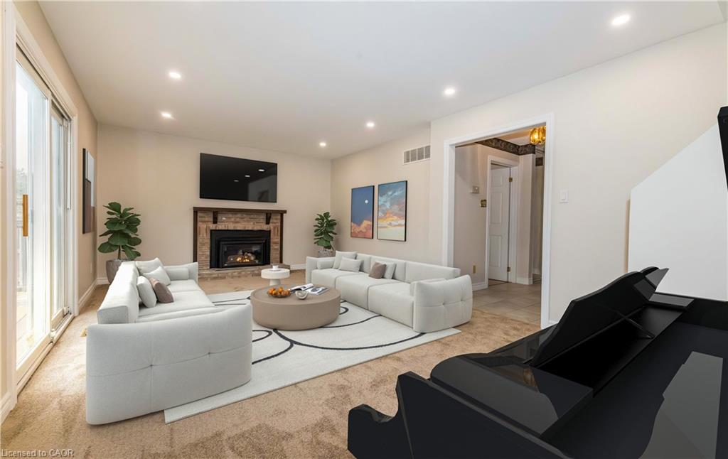 Welcome to 830 Syer Drive, a wonderful family home offering 2,092 sq ft (as per MPAC) on a generous 55 ft x 121 ft lot, located in one of Milton’s high-demand neighbourhoods. Step inside through the vestibule into a large, welcoming foyer that opens directly to the spacious living and dining room combination, a layout that feels open and connected, perfect for everyday living and entertaining. Freshly painted in select areas and featuring newer broadloom in portions of the home, this property offers a bright, well-cared-for feel. Quality Laminate Floors in living and dining area provides plenty of room to host and gather. The kitchen features durable Corian countertops, offering a clean look and ample prep space. A few steps down, the cozy family room is enhanced with pot lights, a gas fireplace, and a walkout to the large backyard, ideal for kids, pets, summer barbecues, or simply relaxing outdoors. You’ll also appreciate the main-floor laundry, with convenient access to the backyard. Upstairs, you’ll find four well-sized bedrooms, including a large primary retreat with a walk-in closet and a 4-piece ensuite. Three additional bedrooms share a second 4-piece bathroom, making the layout practical for families of all sizes. The lower level features a large recreation room ready for your finishing touch; just add flooring and make it your own. A double-car garage and a wide driveway with parking for up to four vehicles complete the package. Close to schools, transit, parks, and everyday amenities, this home delivers space, functionality, and a sought-after Milton location.