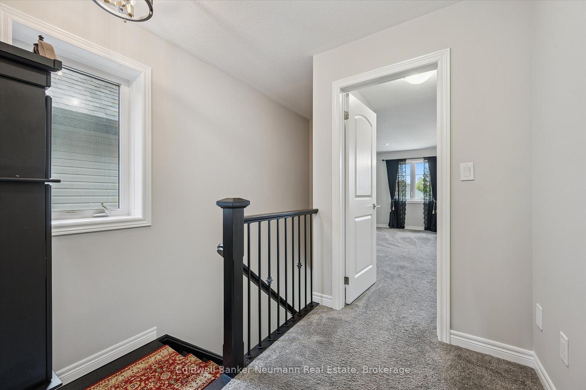 Welcome to 84 Cutting Drive: an upgraded FREEHOLD semi-detached home just steps from the Cataract Trail and walking distance to downtown Elora’s historic shops and restaurants. Built by award-winning Finoro Homes, this property’s main floor features 9ft+ crown-moulding ceilings, carpet-free flooring, upgraded lighting, granite countertops, and a custom-built-in fireplace. Additional features include upgraded exterior lighting, hardwired security cameras, upgraded checkered garage flooring, a reverse osmosis system, and direct garage access from the main floor. Sliding doors lead to a spacious walkout deck overlooking a fully-fenced, landscaped backyard with low-maintenance turf. Upstairs offers an impressive primary suite with a cathedral ceiling, walk-in closet and ensuite, plus two additional bedrooms, a guest bath, and upper-level laundry. The open unfinished lower level offers great potential, featuring an existing rough-in ready for a future basement apartment or simply additional finished space. Only minutes to downtown Elora and a 7-minute drive from Fergus, this home is an excellent turn-key opportunity for first-time buyers or families seeking a newer build in a beautiful neighbourhood.
