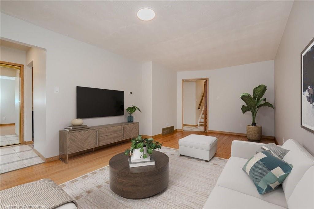 Spacious backsplit located in the sought-after Galt West area of Cambridge. This home features 3 bedrooms on the upper level, a bright dinette, and a large living room with a big bay window offering plenty of natural light. The spacious lower level includes a second kitchen, a 3-piece bathroom, and a side entrance, making it an excellent option for a potential in-law suite. The large private backyard with a shed provides ample outdoor space. A large crawl space offers plenty of storage options.Conveniently located just minutes from the Grand River, parks, trails, schools, and shopping, this home offers the perfect blend of comfort and convenience. Property is virtually staged.
